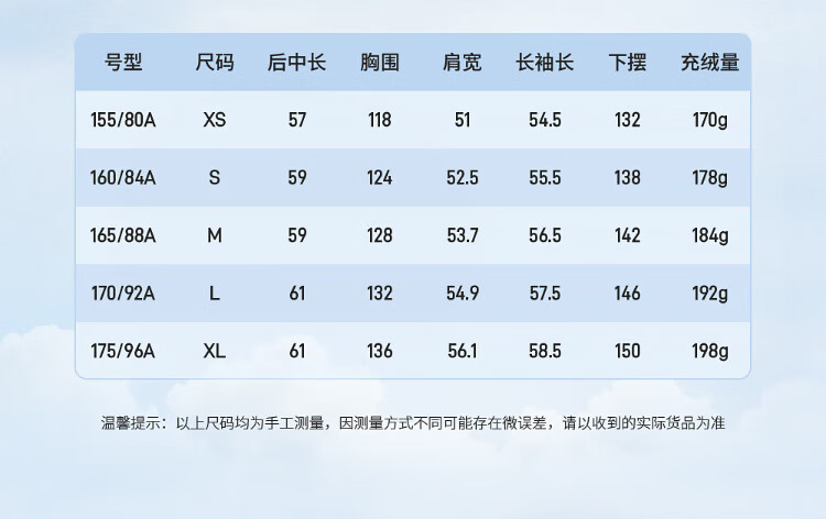 China (cm) 165 / 88-90 170 / 96-98 175 / 108-110 180 / 118-122 185 / 126-130