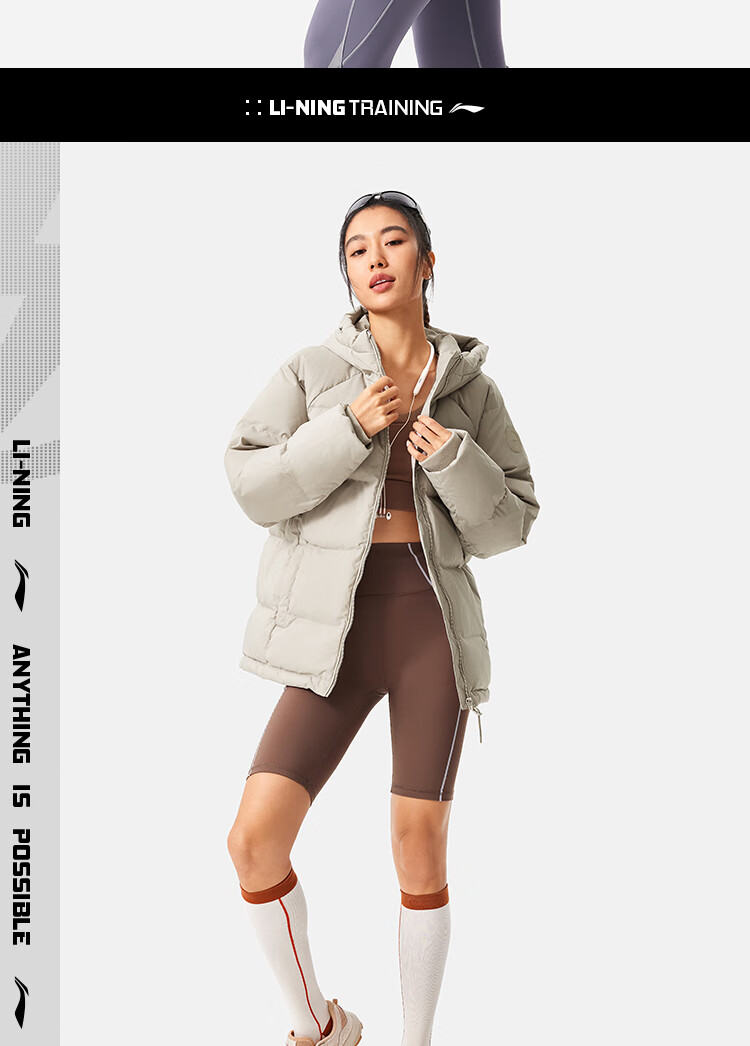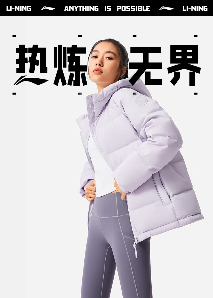 Li Ning Short Down Jacket Women's 2025 Autumn and Winter New Fashion Casual Hooded Warm Sports Jacket AYMV776