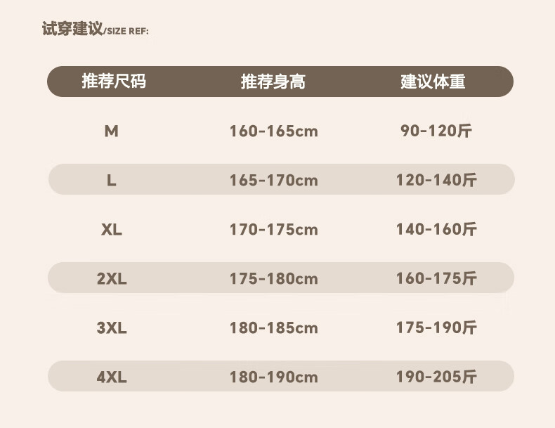 China (cm) 160-165/84-86 165-170 / 88-90 167-172 / 92-96 168-173 / 98-102 170-176 / 106-110