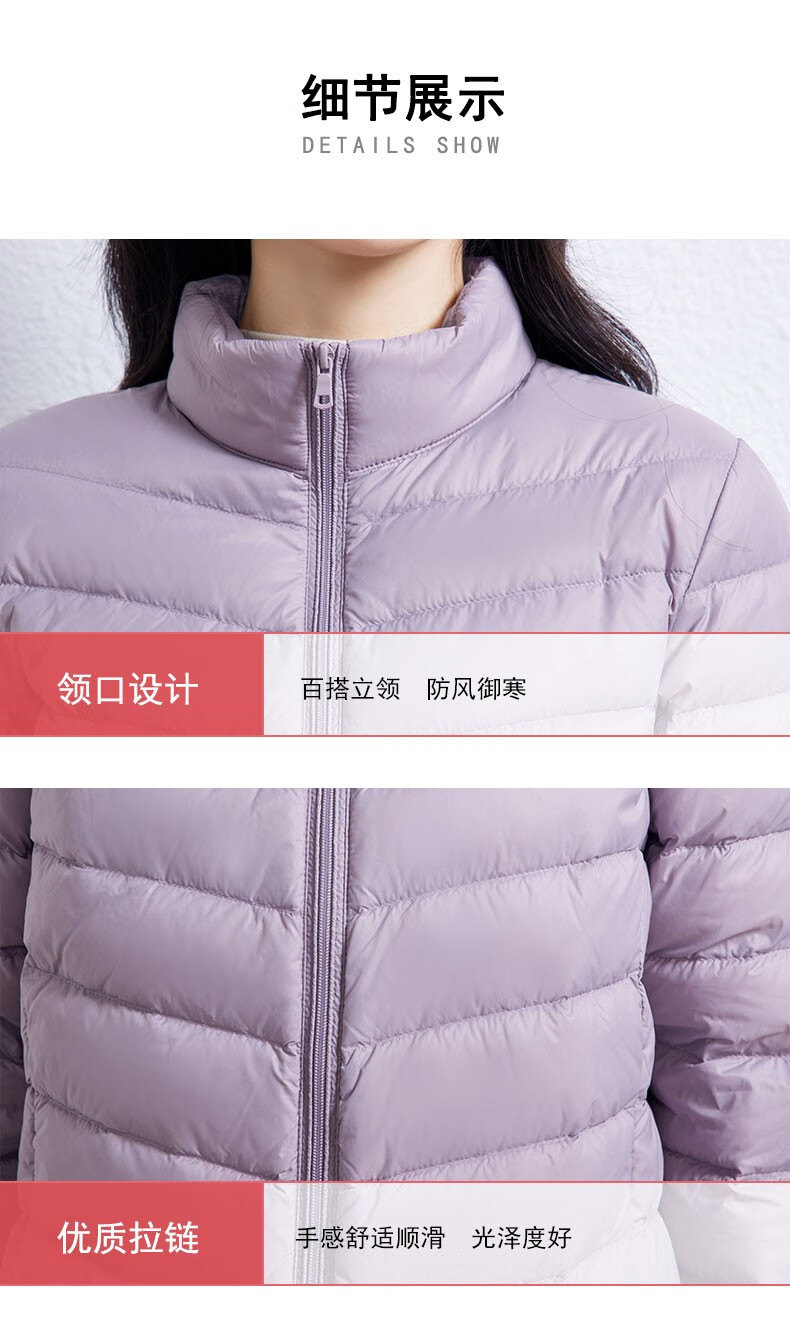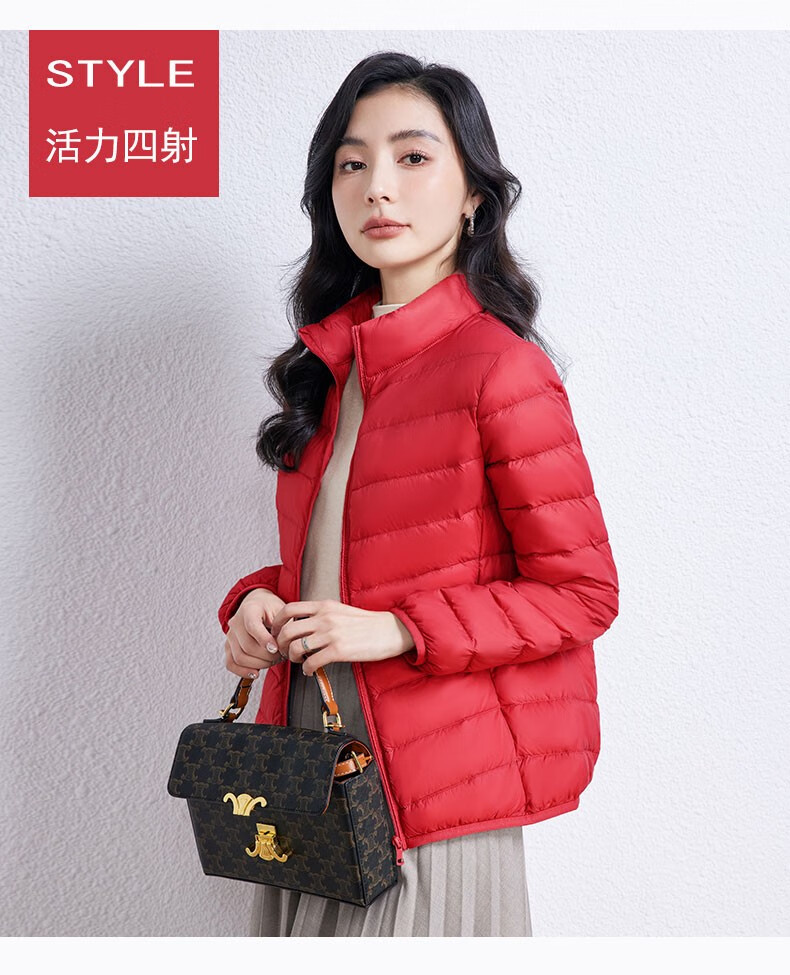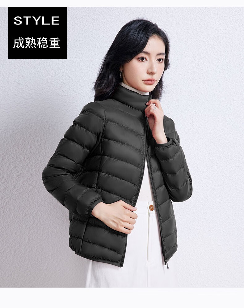YAYA Light Thin Down Jacket Women's Short Stand Collar Thin Autumn and Winter Warm Fashion Casual Stand Collar Jacket K Off-White XL 170