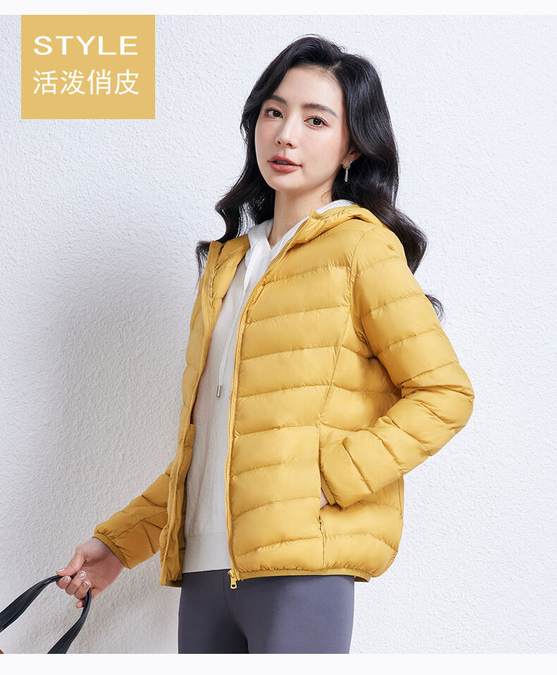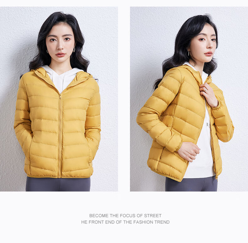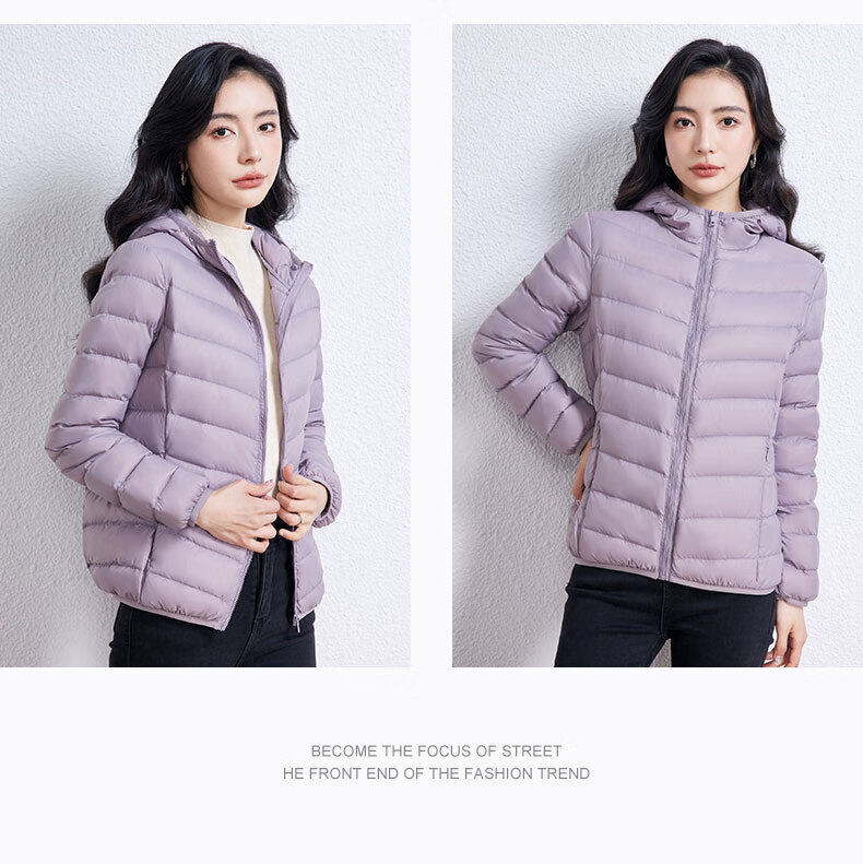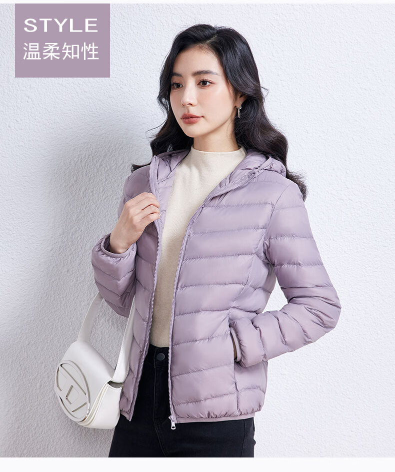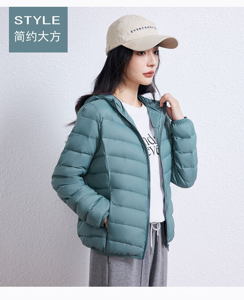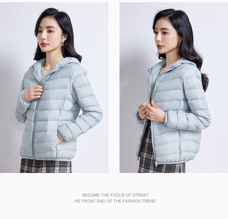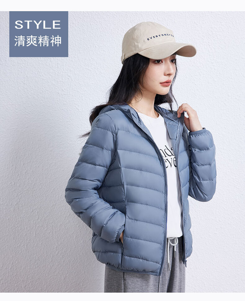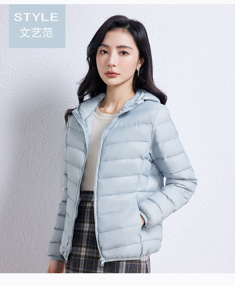 Yaya (YAYA) Tong Liya's same style thin down jacket for women new autumn and winter casual short hooded warm lightweight Korean style jacket haze blue XL