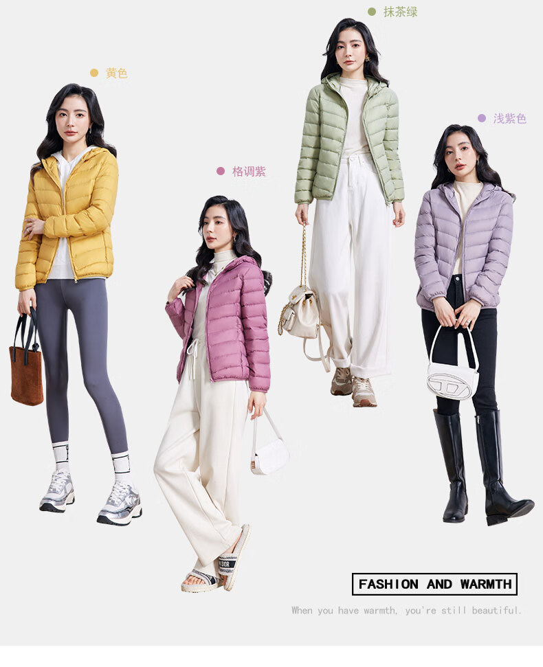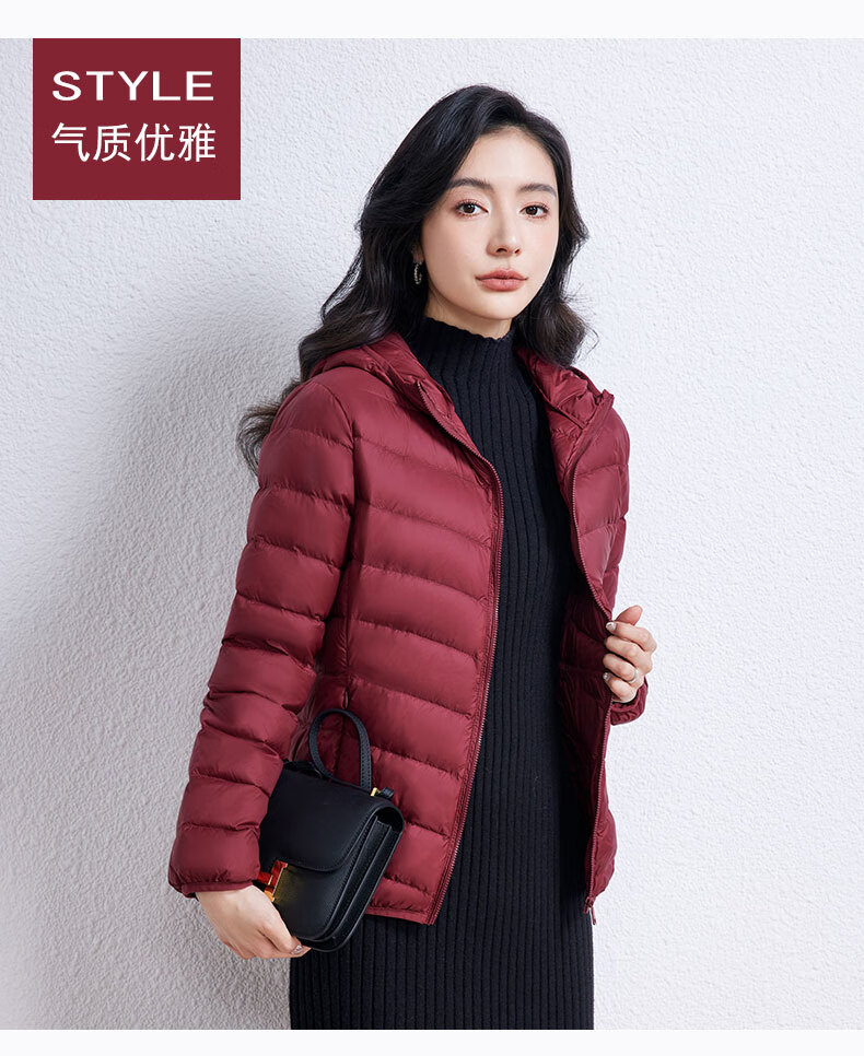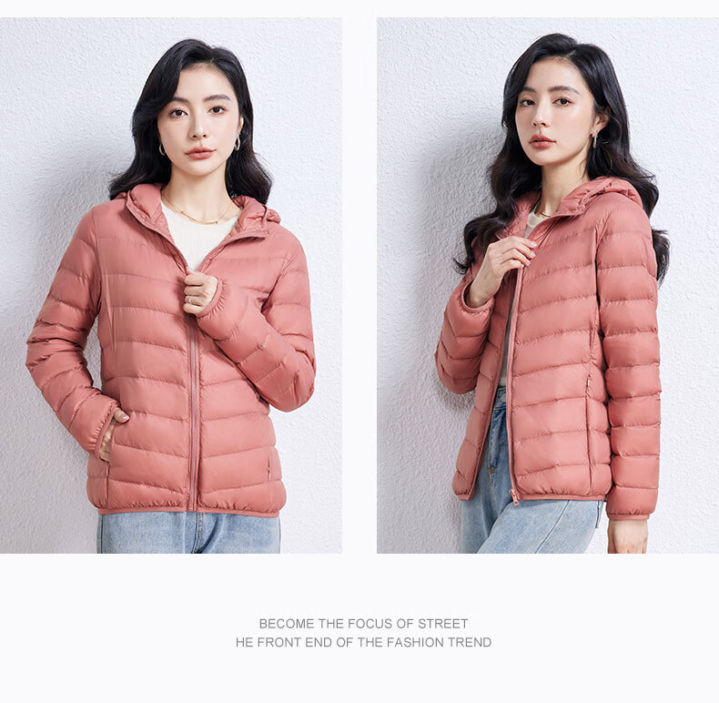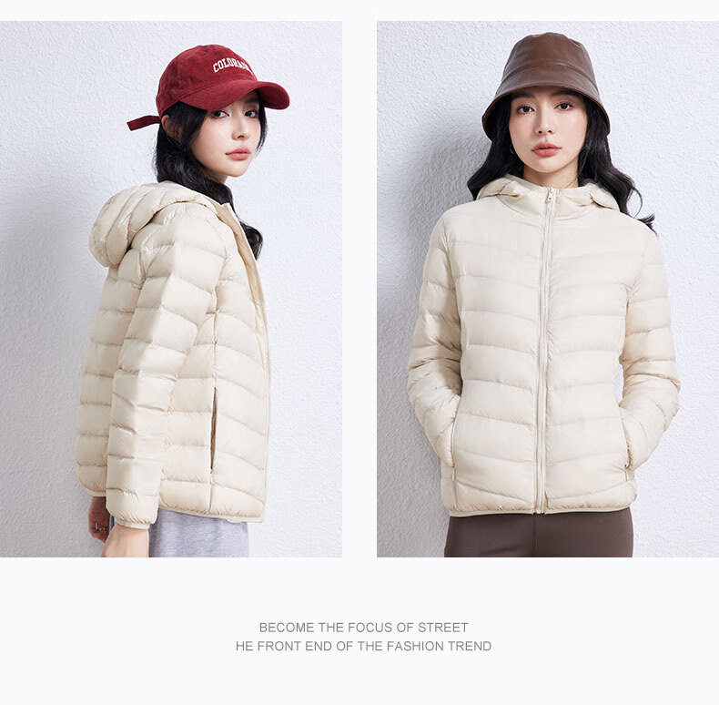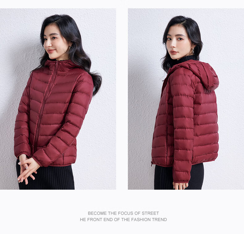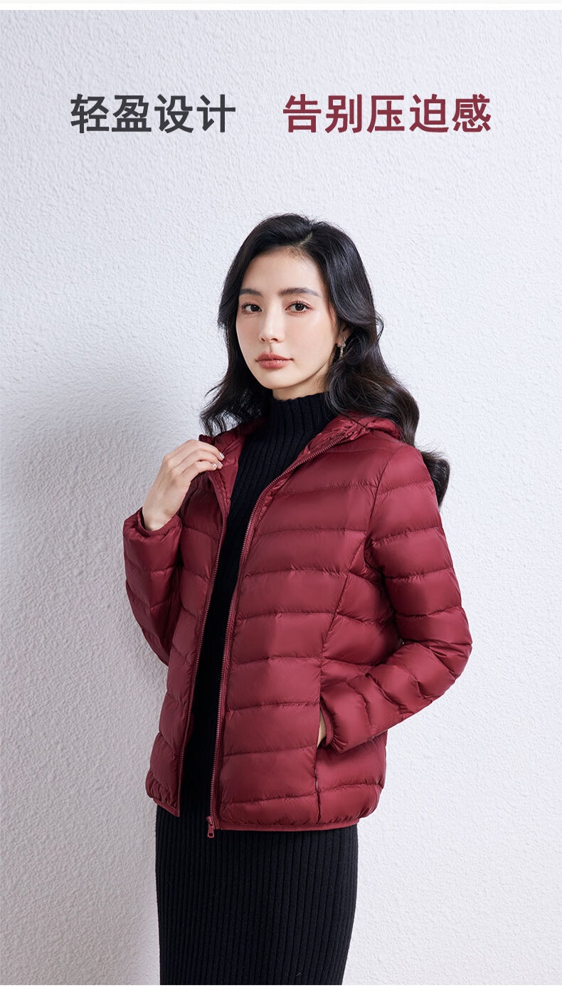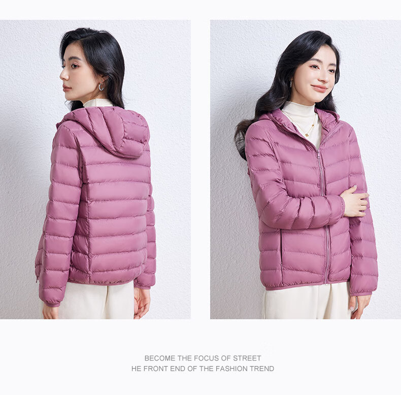 Yaya (YAYA) Tong Liya's same style thin down jacket for women new autumn and winter casual short hooded warm lightweight Korean style jacket haze blue XL