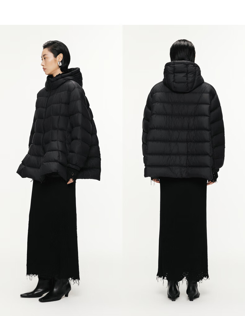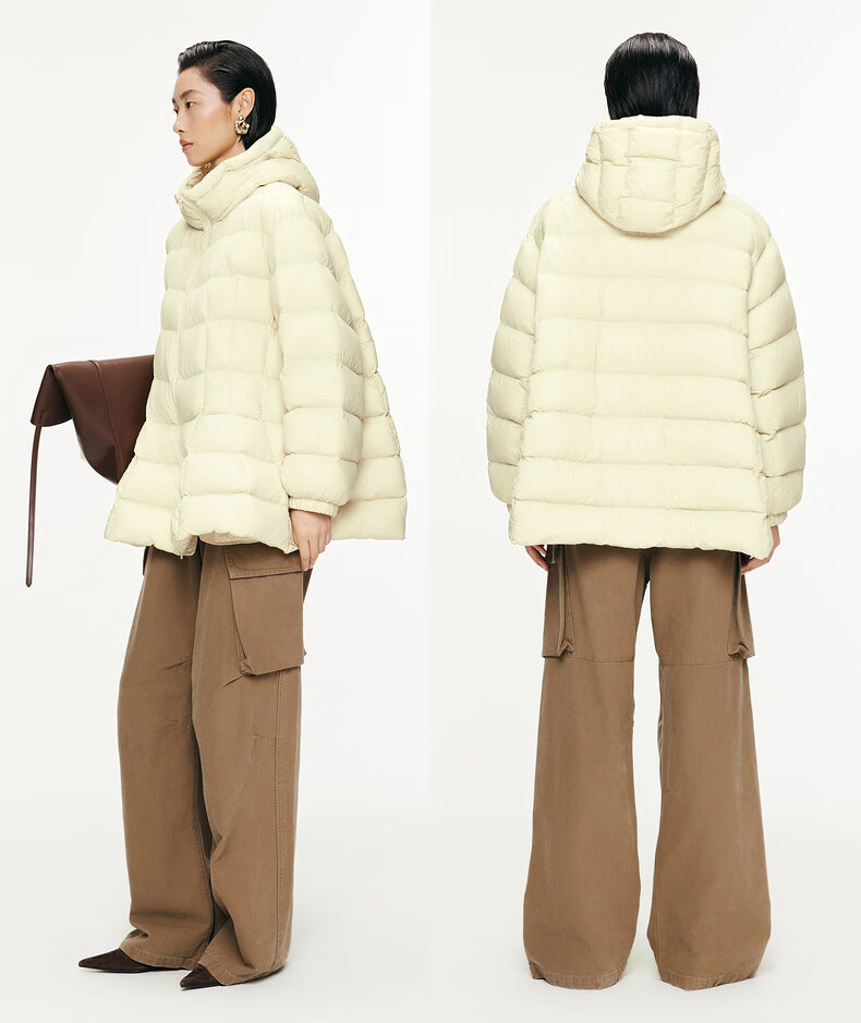 JNBY/Jiangnan Buyi Winter Down Jacket Women's Loose White Duck Down Hooded Lightweight Jacket Mid-Length 5O0C12160 748/Light Bean Yellow XS