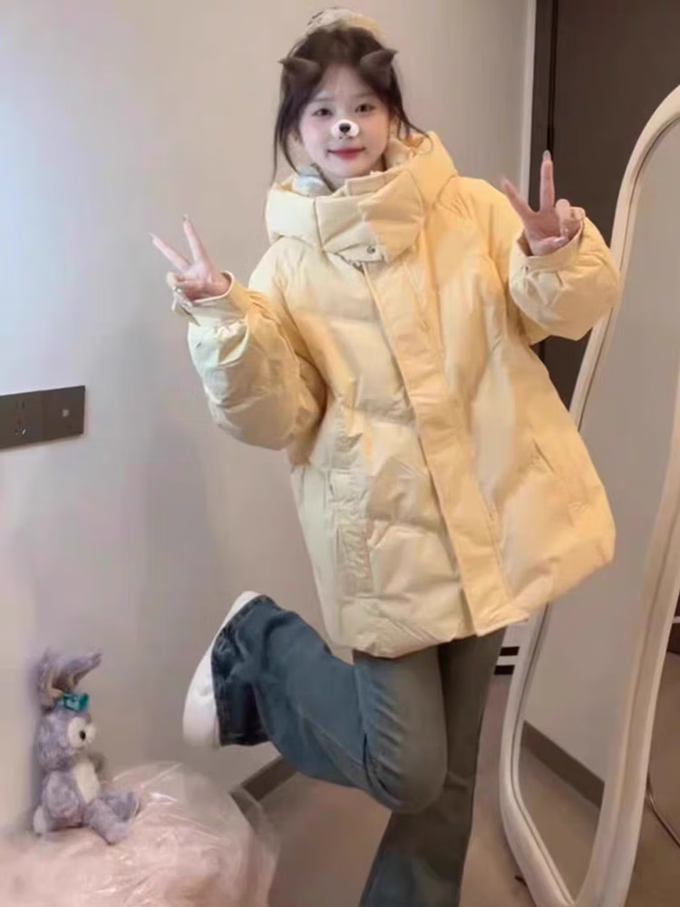 Purple Meng Down Jacket Women 2024 New Short Style Student Small Clothes Cotton Jacket Winter Down Jacket Women Korean Version Thickened Yellow One Size (Can Remark Number)