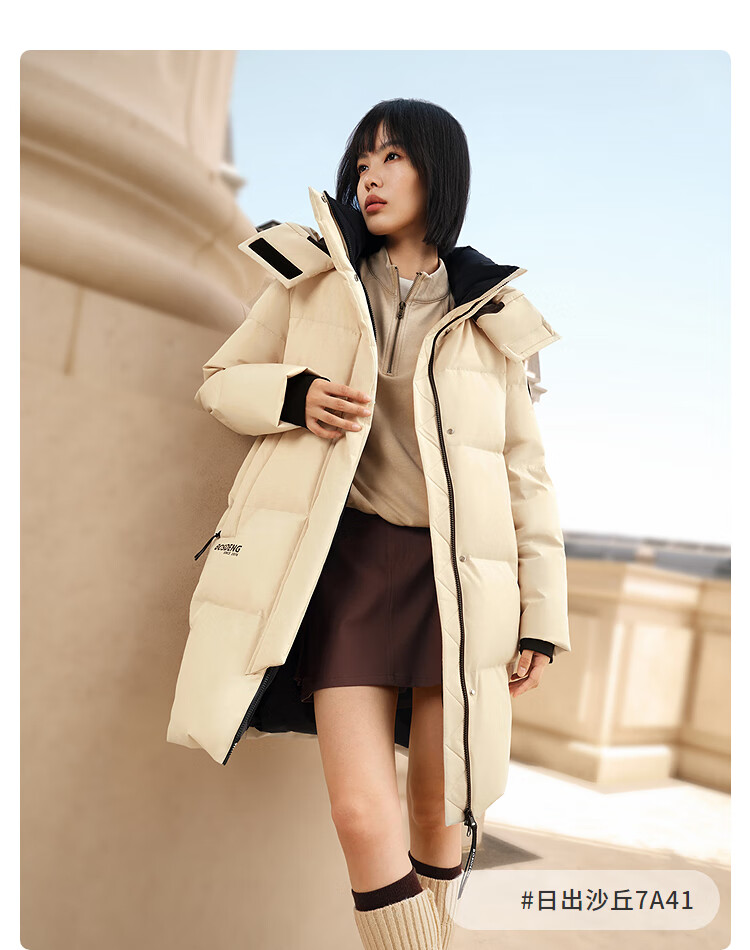 Bosideng (BOSIDENG) 25 new down jacket women's mid-length 90 velvet shopping mall same style removable hood jacket B250246064DS store manager recommended Sunrise Dune 7A41 card size large M 165/88A weight about 110-120Jin Jin equals 0.5 kg