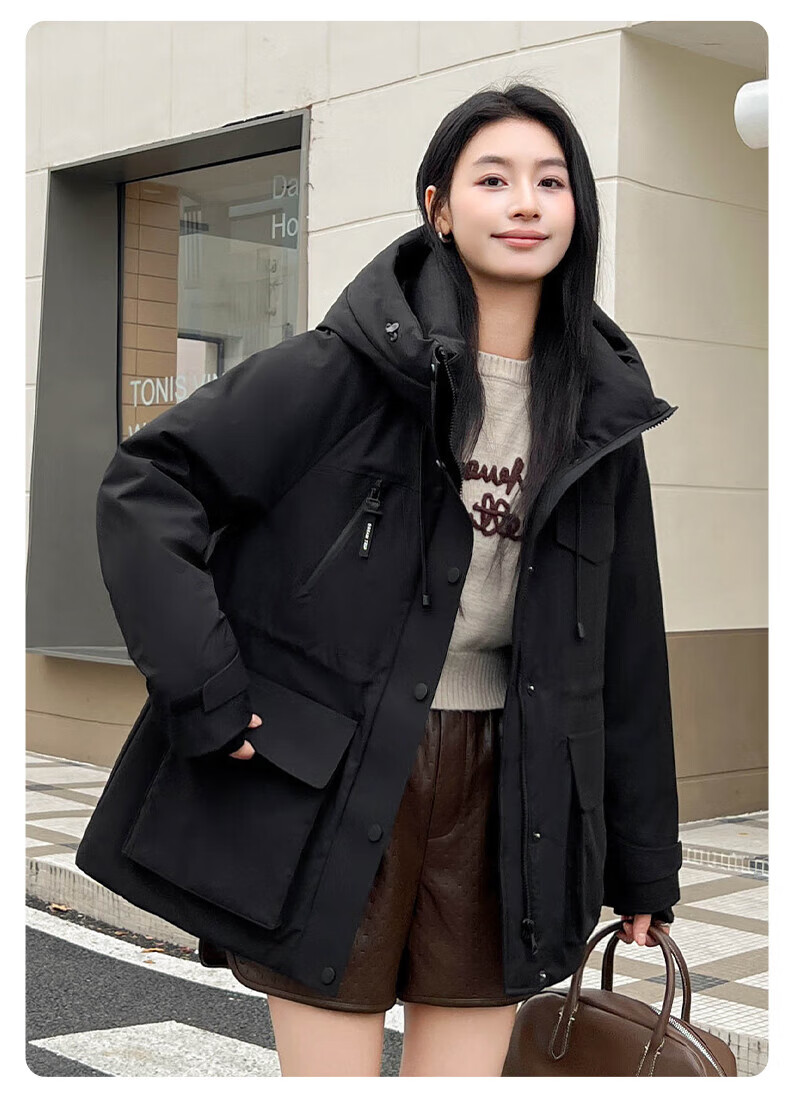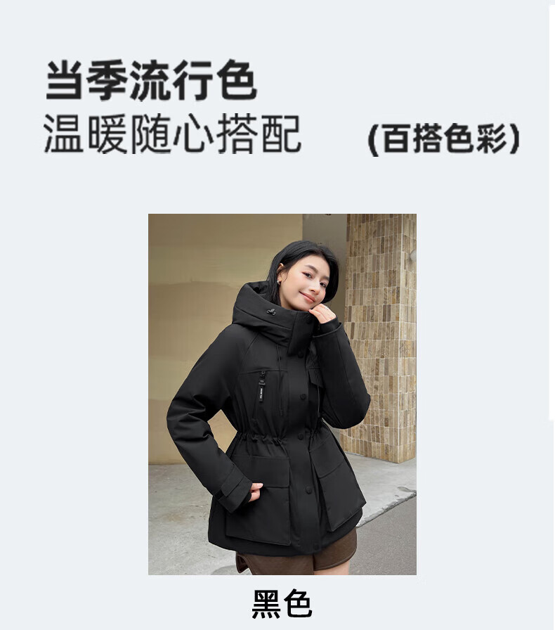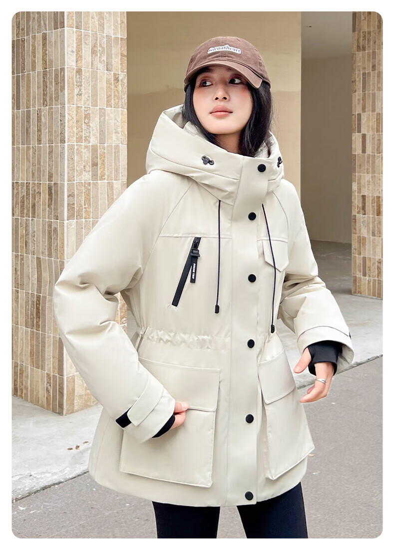 YAYA Down Jacket Women's Mid-Length 2025 Winter New Waist Slimming Outdoor Hooded Warm Parka Jacket HS Sunset Orange M 160/84A(M)