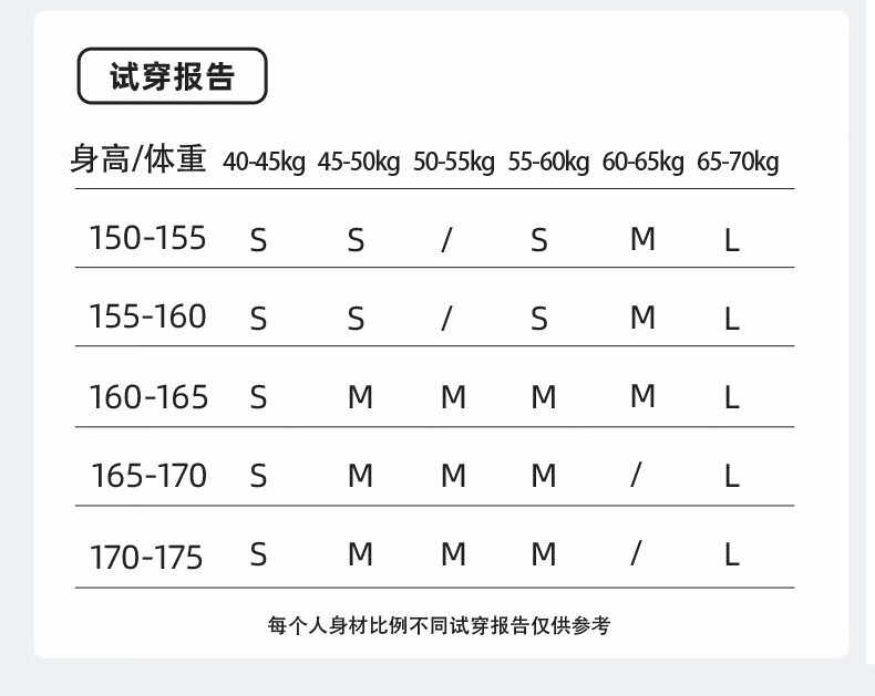 China (cm) 160-165/84-86 165-170 / 88-90 167-172 / 92-96 168-173 / 98-102 170-176 / 106-110