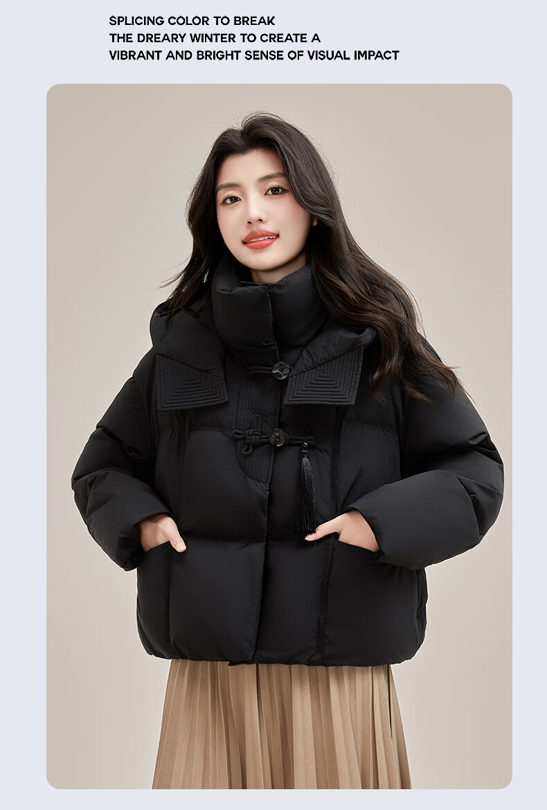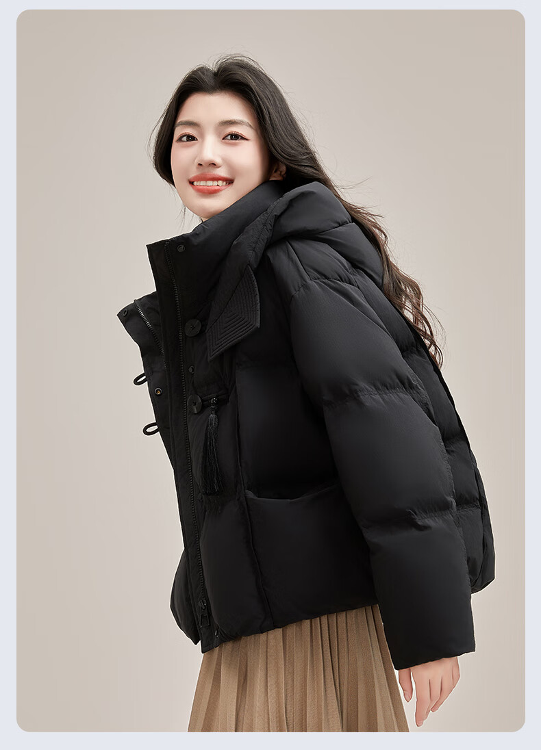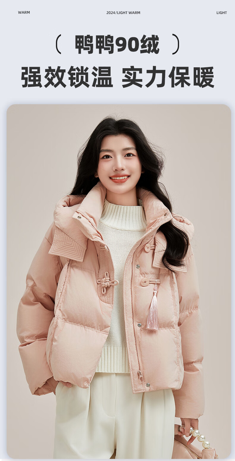 YAYA down jacket for women 2025 new style Chinese style buckle tassel clothes fashionable hooded warm short duck down jacket XH pink M /160