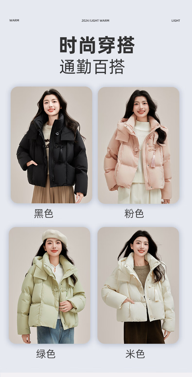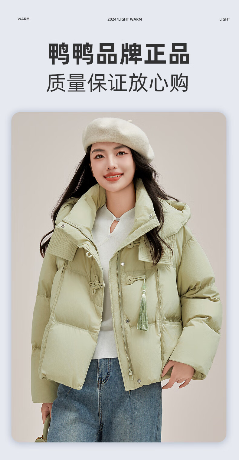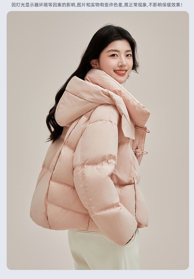 YAYA down jacket for women 2025 new style Chinese style buckle tassel clothes fashionable hooded warm short duck down jacket XH pink M /160