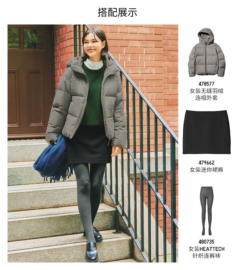 Uniqlo Women's Seamless Down Hooded Jacket/Coat Jacket 25 Autumn and Winter New Style 478577 09 Black XL/165/92A
