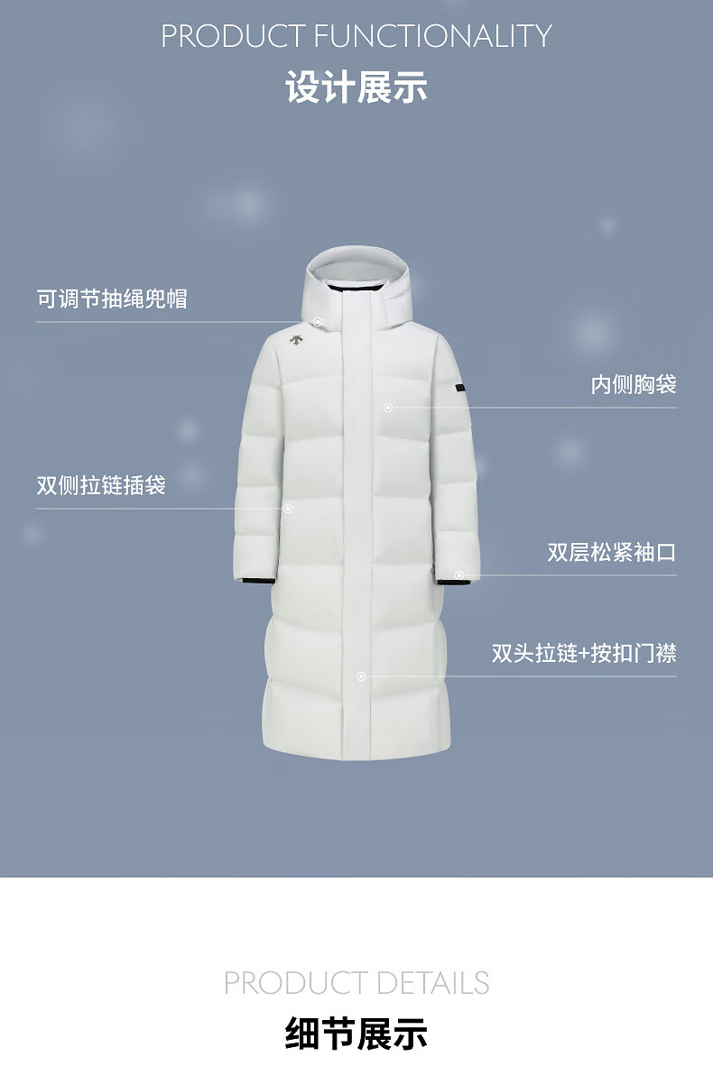 DESCENTE WOMEN S SKI STYLE series women's waterproof long goose down jacket BK-black M (165/84A)