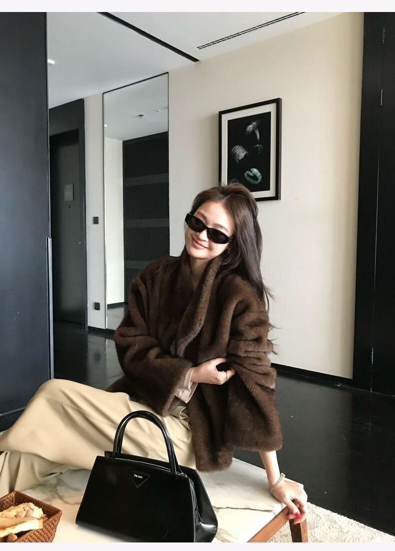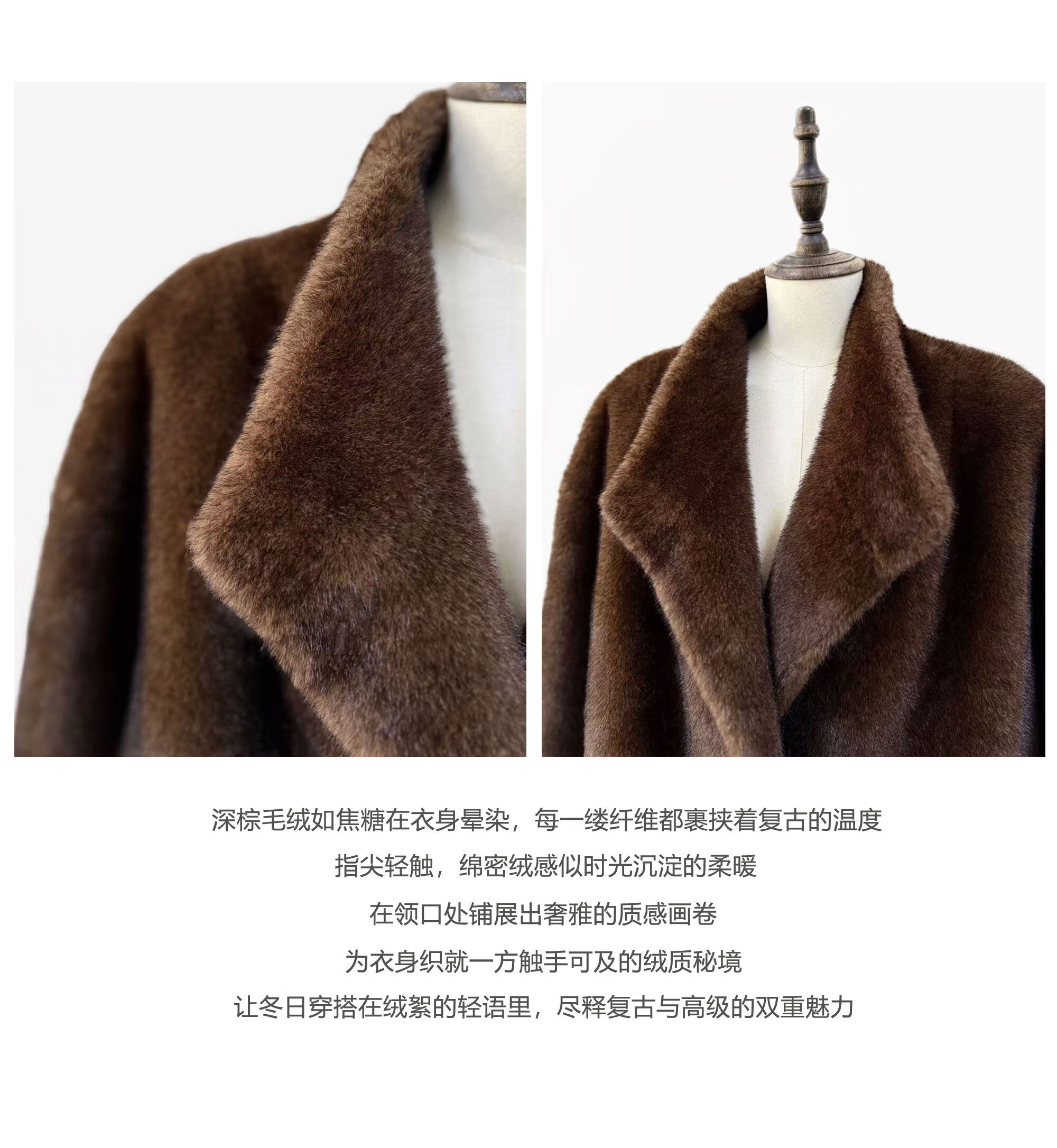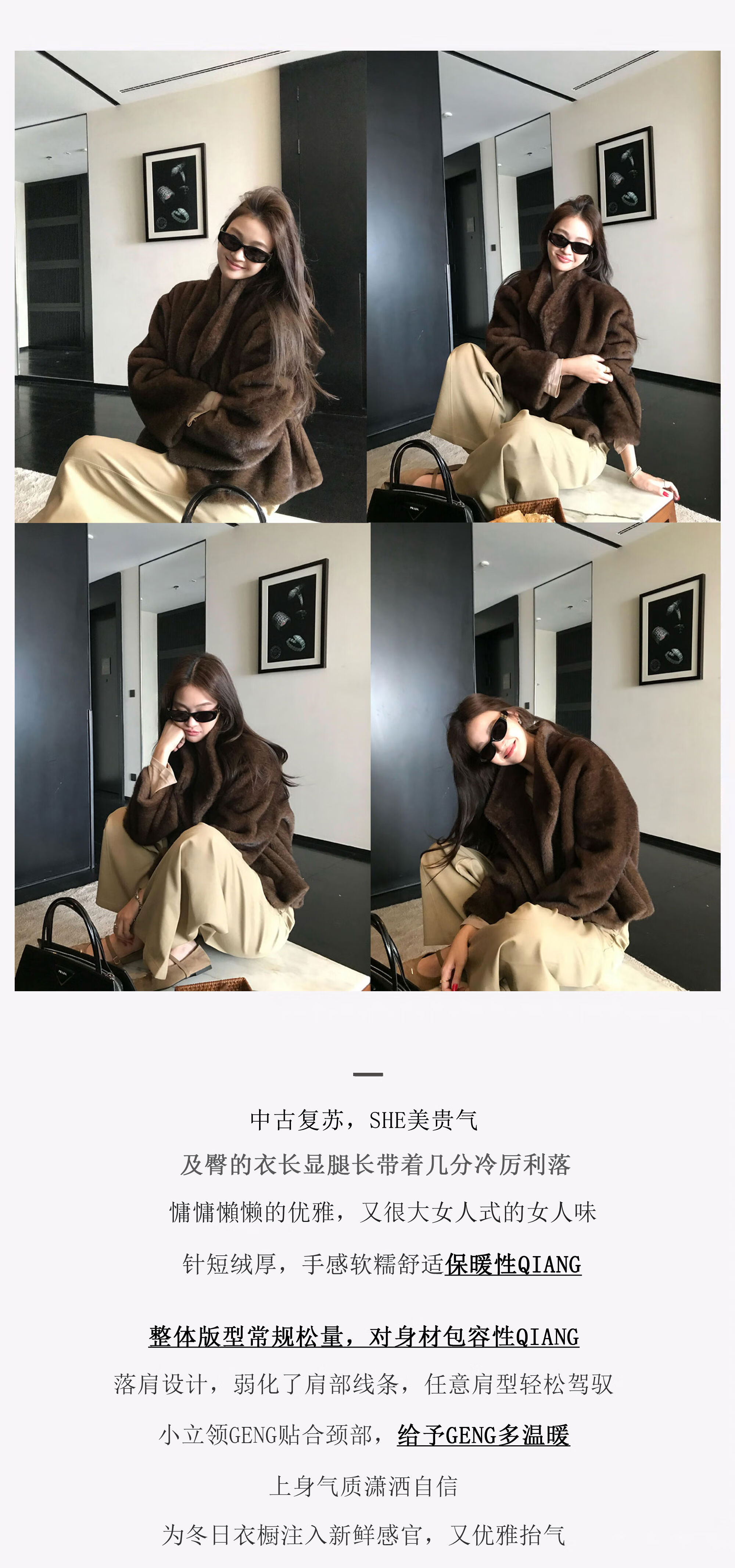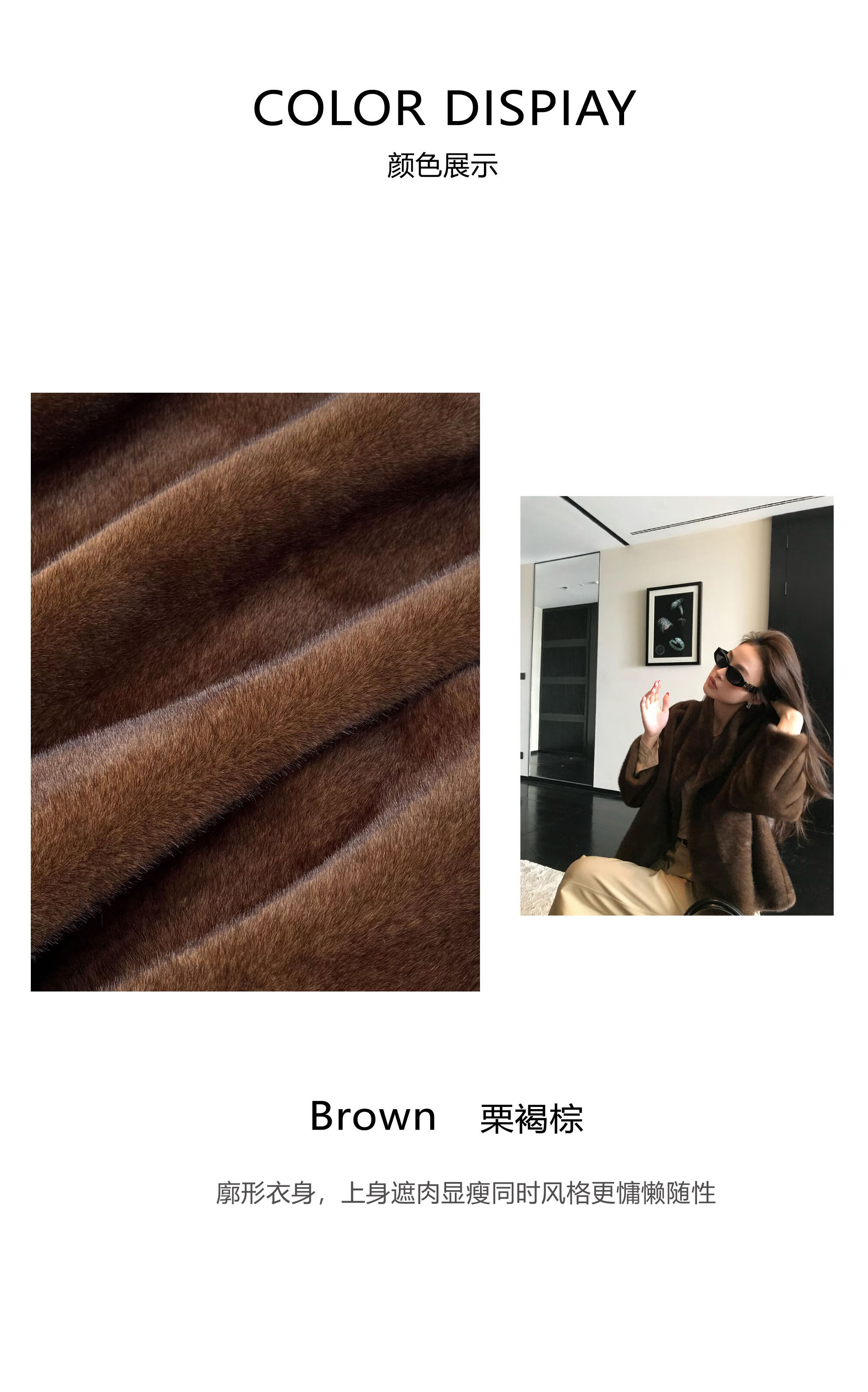 Coolnaro lazy imitation mink fur coat for women 2025 short mink coat autumn and winter young style fur integrated chestnut brown L