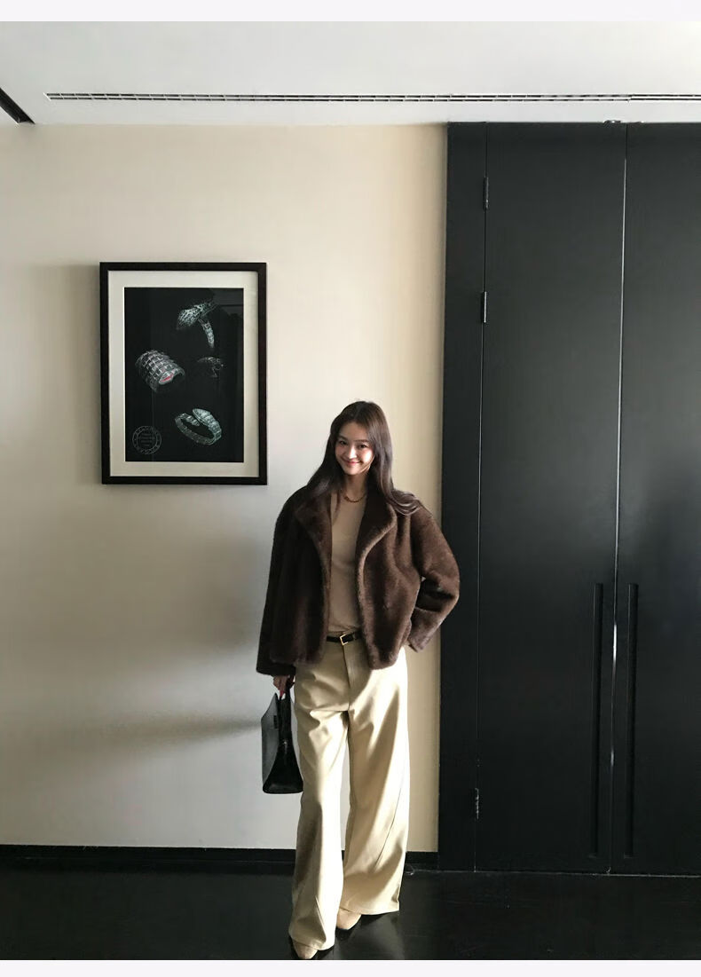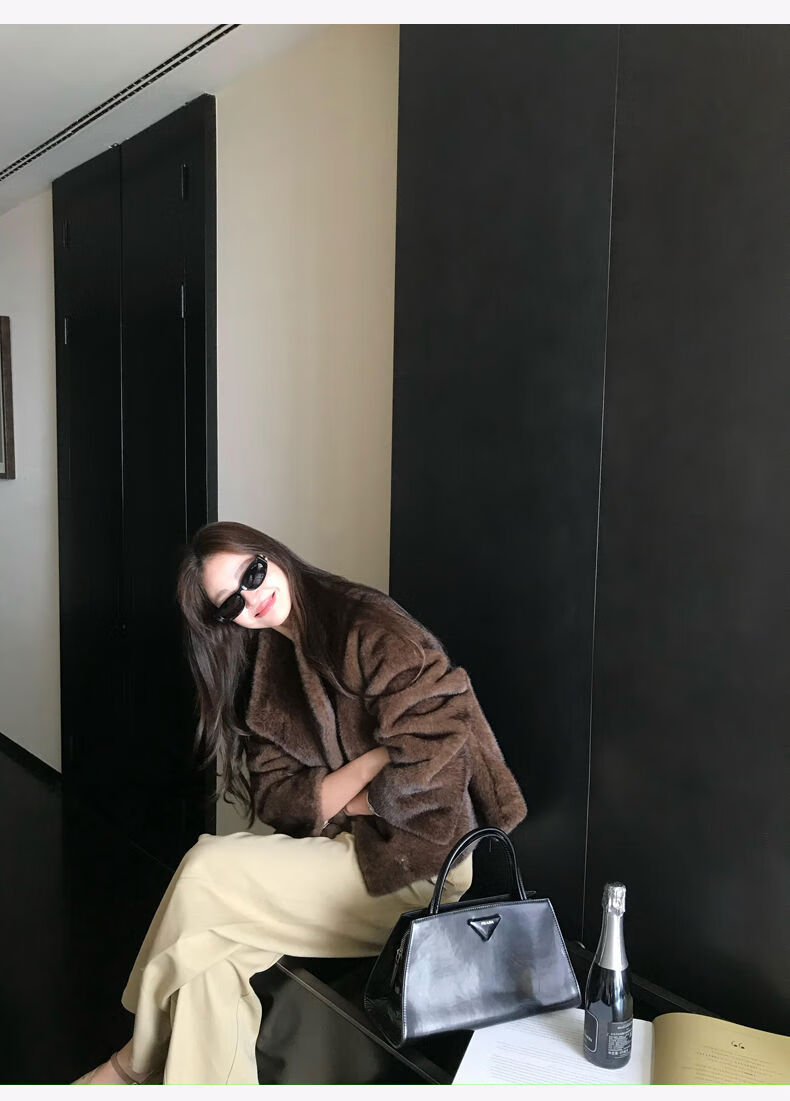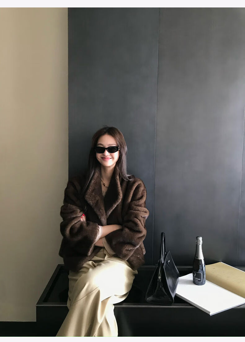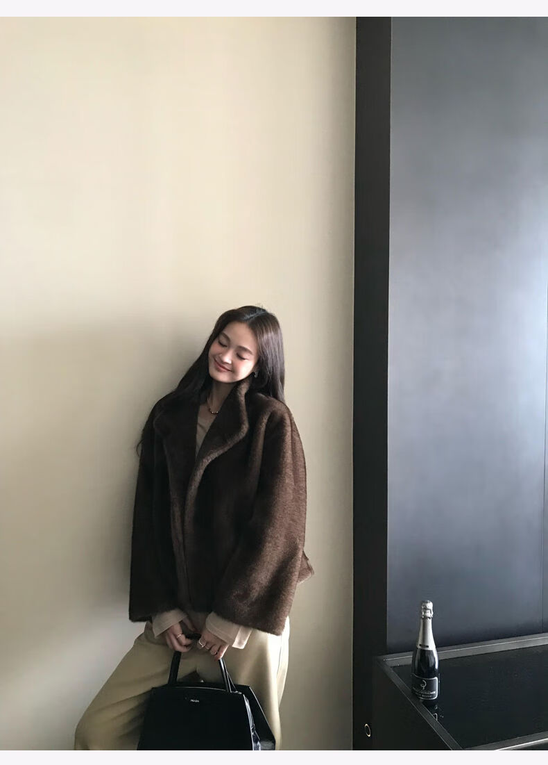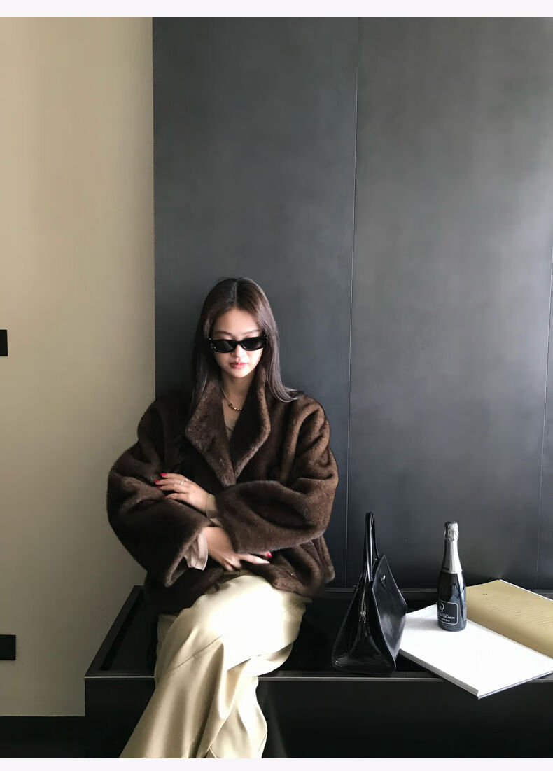 Coolnaro lazy imitation mink fur coat for women 2025 short mink coat autumn and winter young style fur integrated chestnut brown L