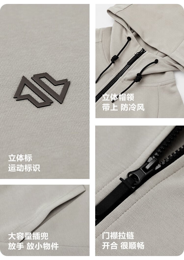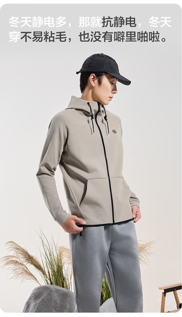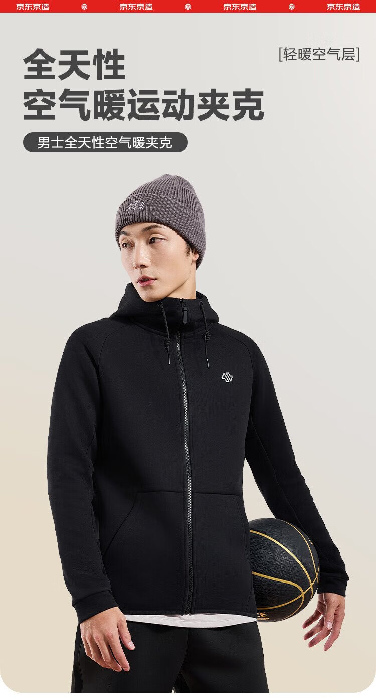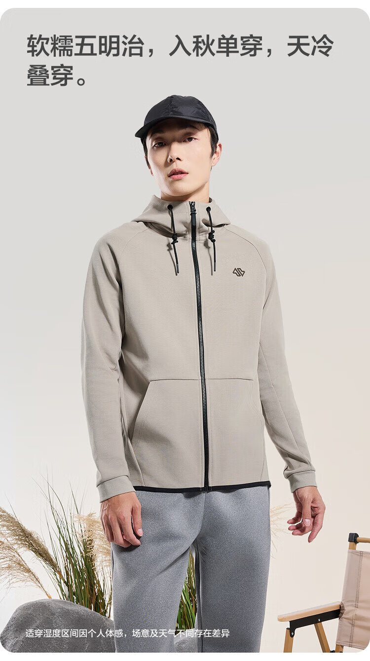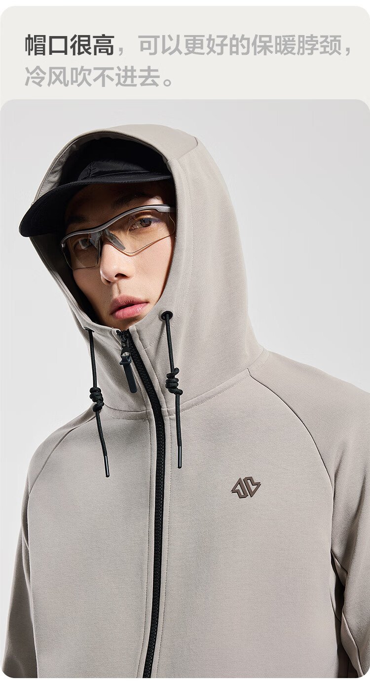 Jingjing Tokyo sports jacket men's autumn hooded outdoor windproof warm running casual khaki M