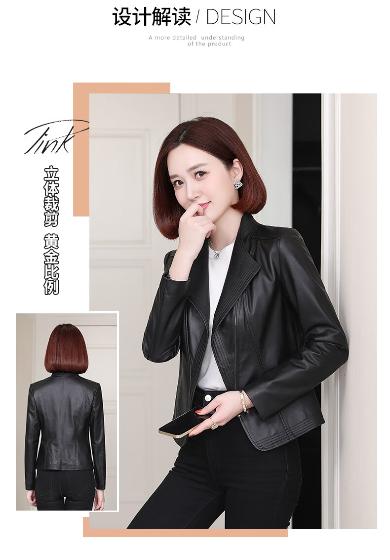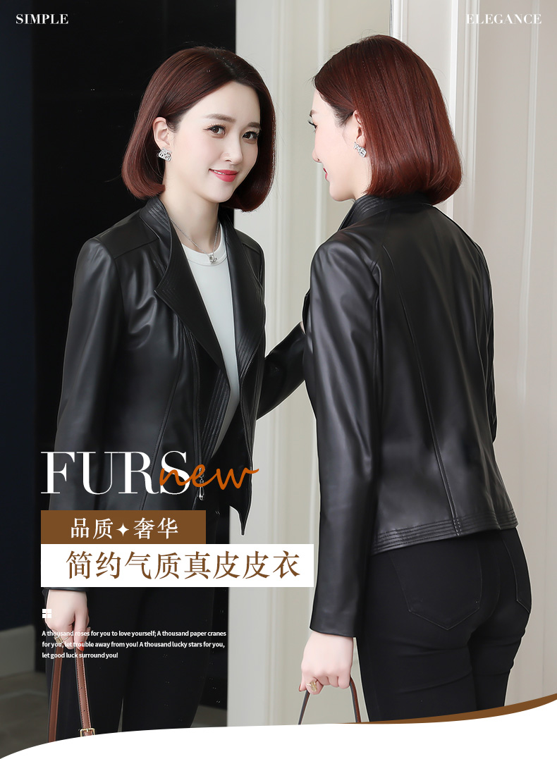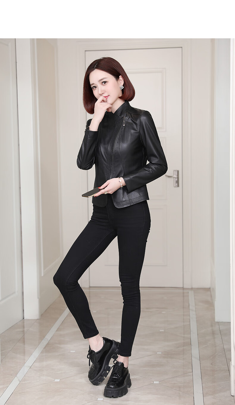 Lingfaner Haining genuine leather jacket for women spring new motorcycle slim sheepskin small jacket short style black 2XL