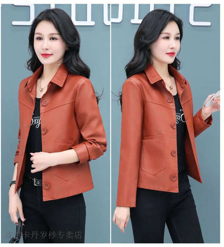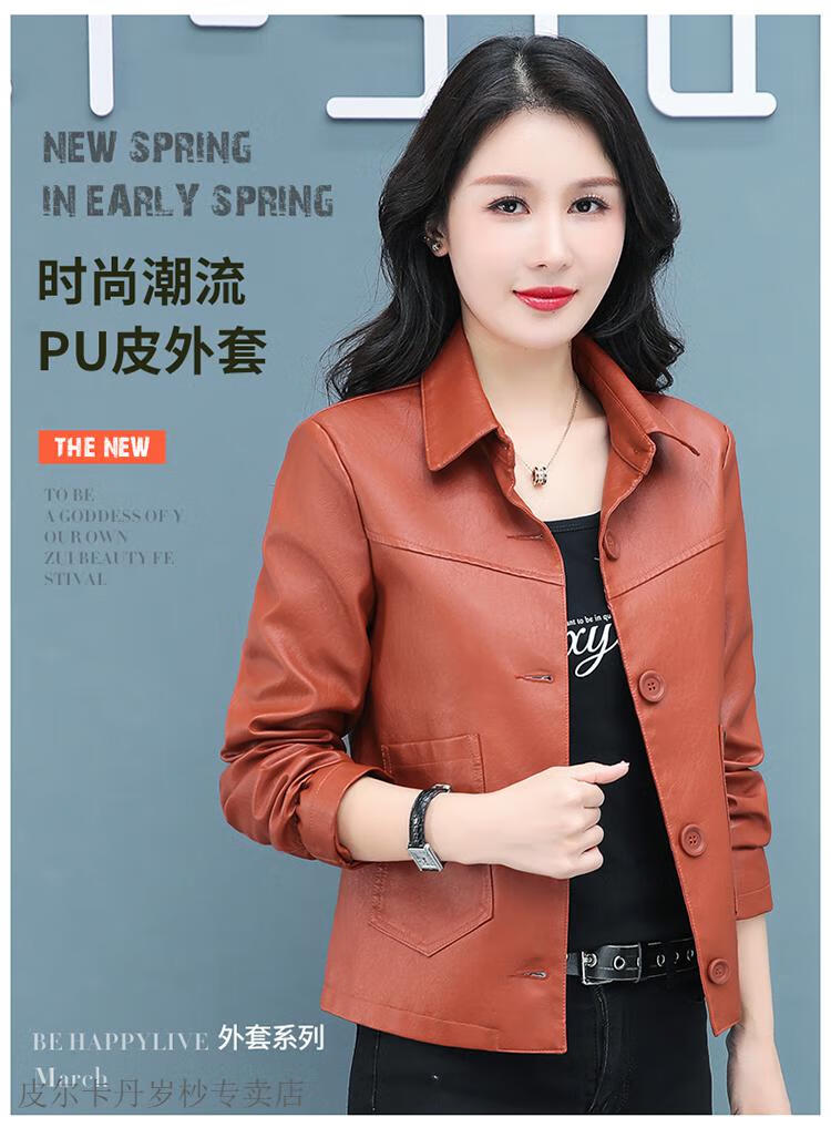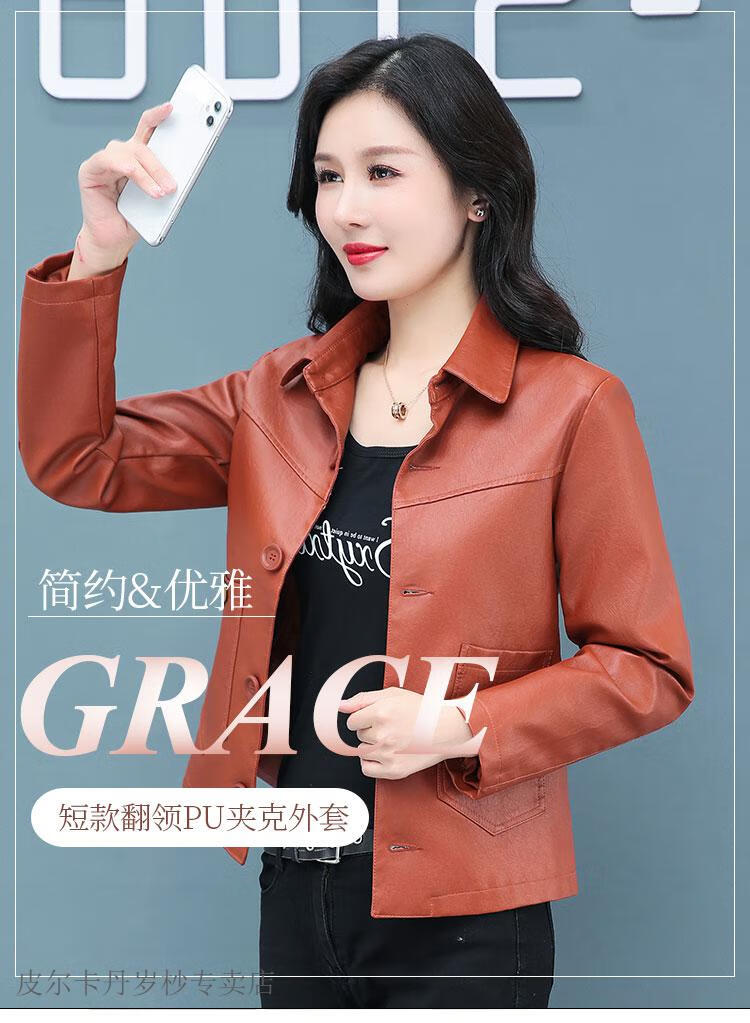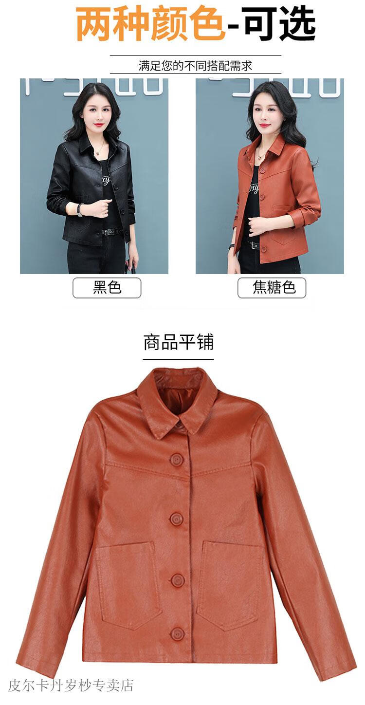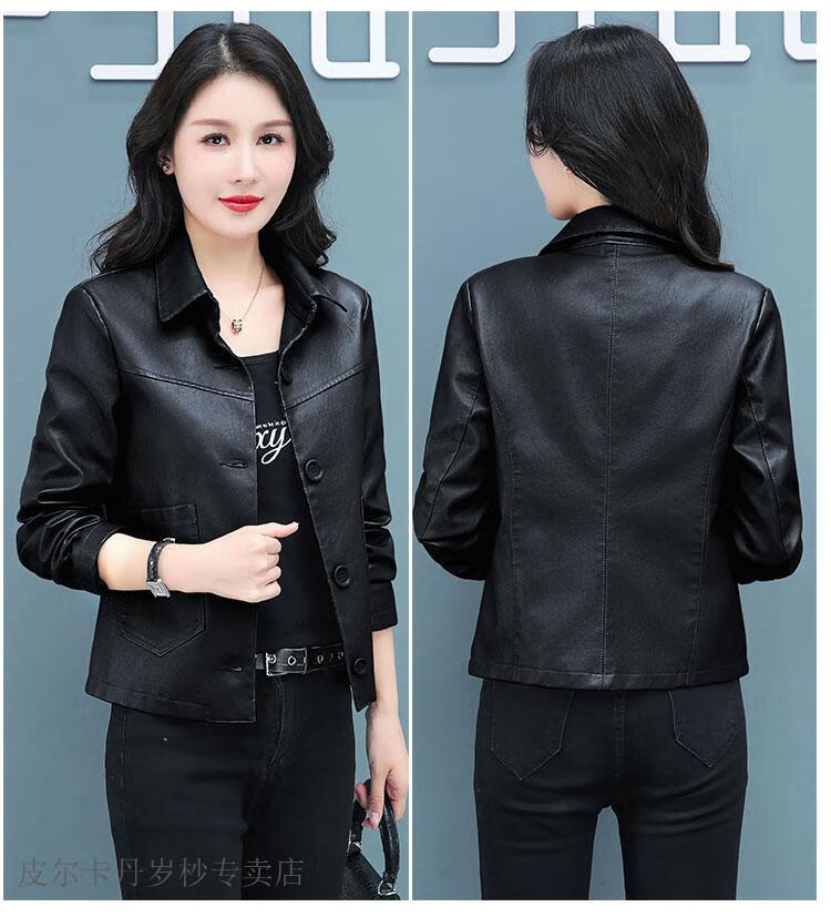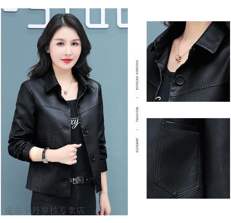 Pierre Cardin 2025 New Lapel Black Small Leather Coat Women's Short Motorcycle Versatile Slim High Waist Jacket Spring and Autumn Outfits Black XL Recommended 110-125 Jin Jin equals 0.5 kg