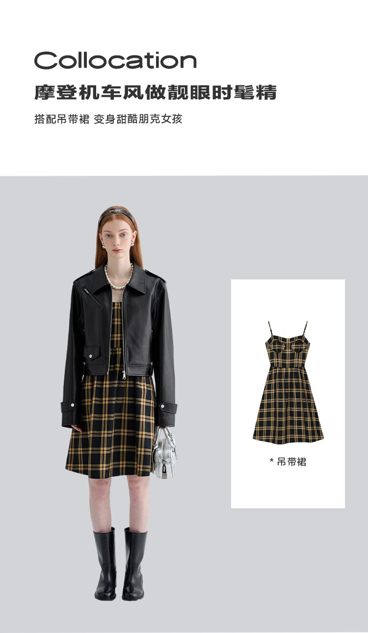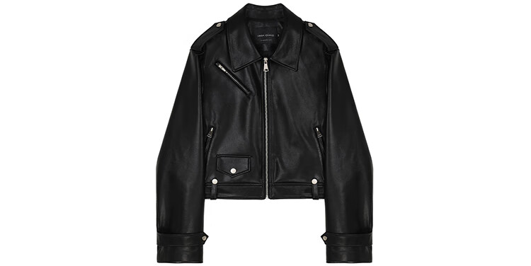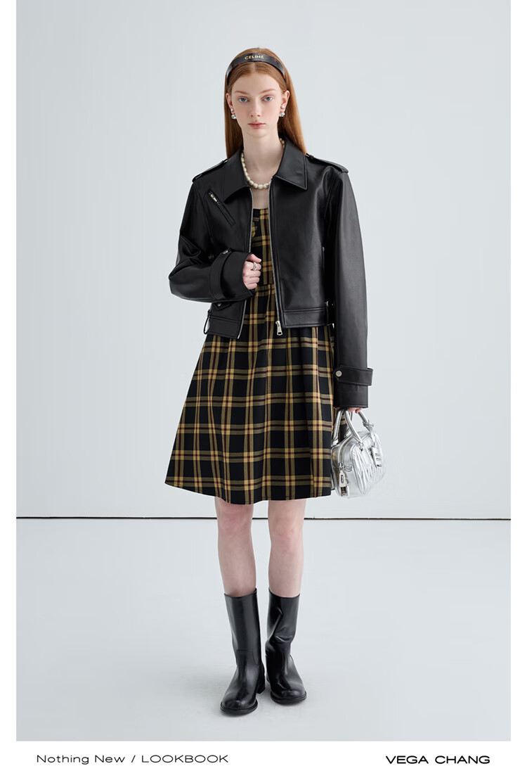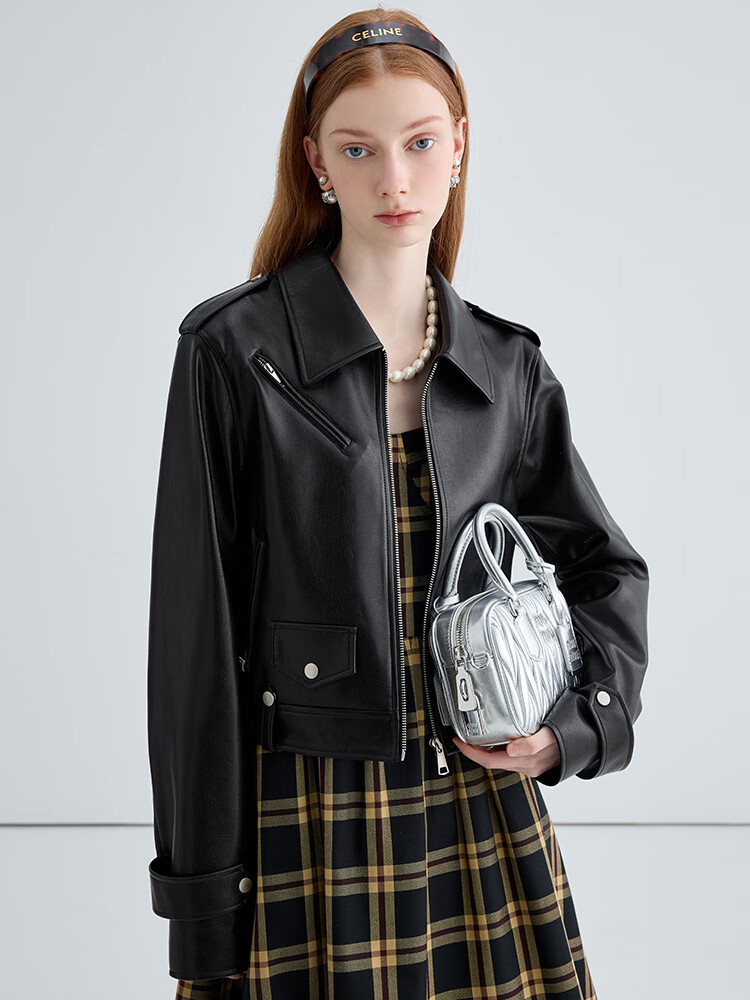 VEGA CHANG black leather jacket for women 2025 autumn new British style cool motorcycle leather jacket short coat Obsidian Black S
