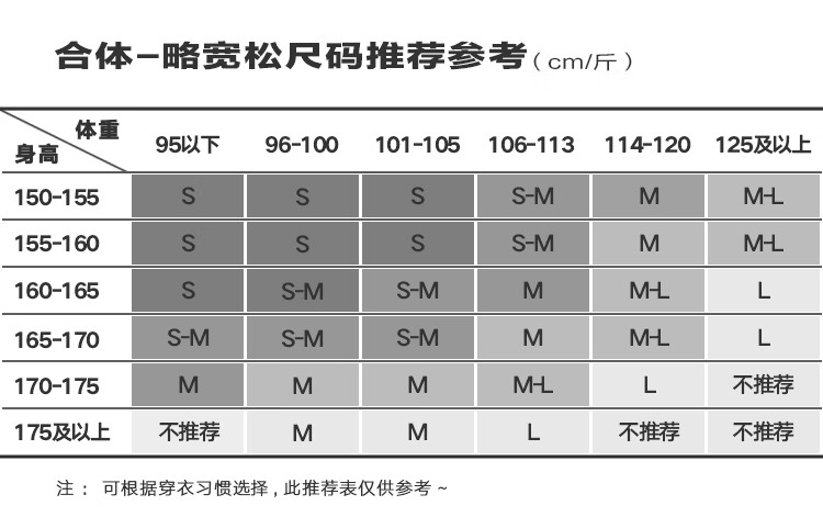 China (cm) 160-165/84-86 165-170 / 88-90 167-172 / 92-96 168-173 / 98-102 170-176 / 106-110