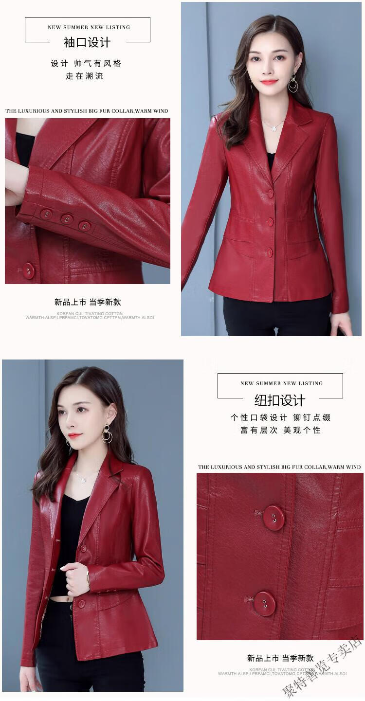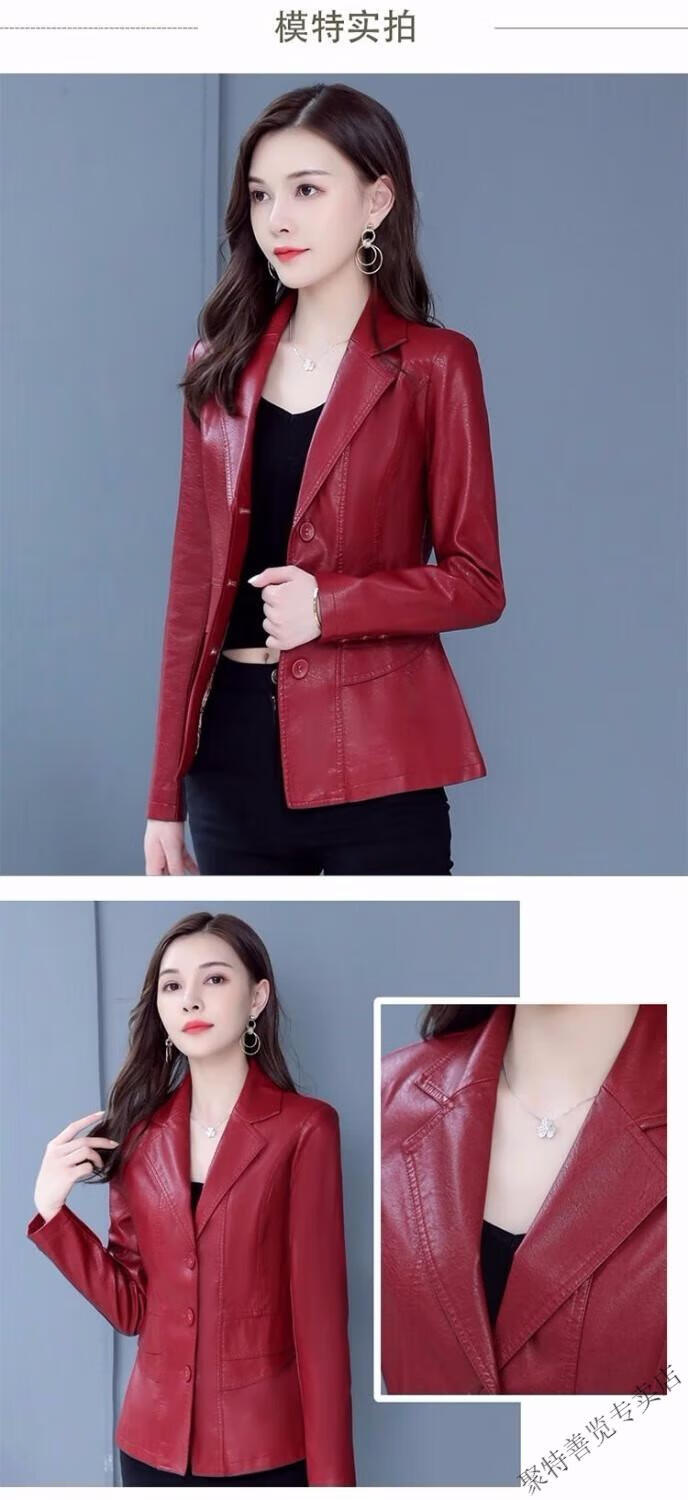 Woodpecker (TUCANO) 2025 new spring and autumn imitation leather jacket for women, short Korean version, slim fit, cotton, large size leather jacket, stylish small coat 2022910-black-thin section 2XL recommended 110-120Jin Jin equals 0.5 kg