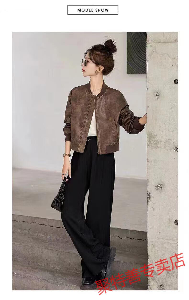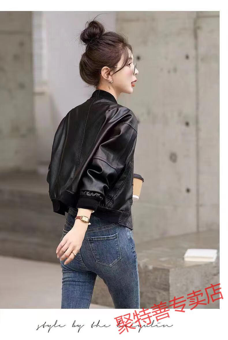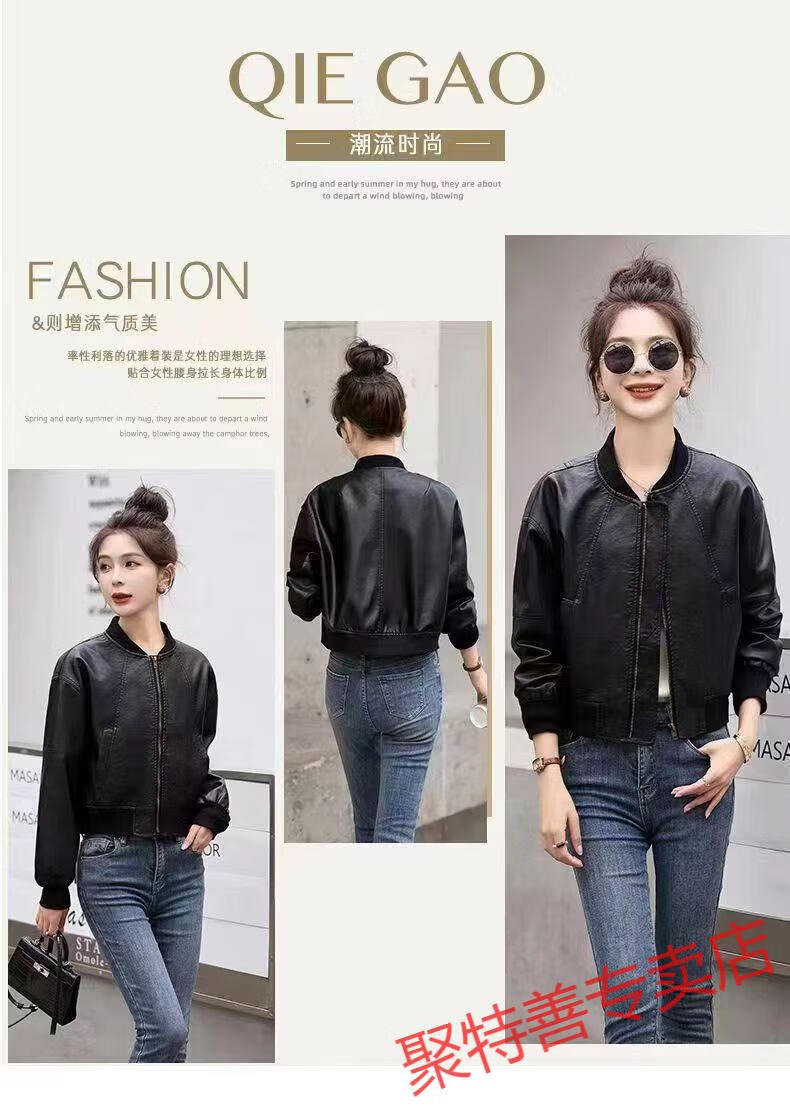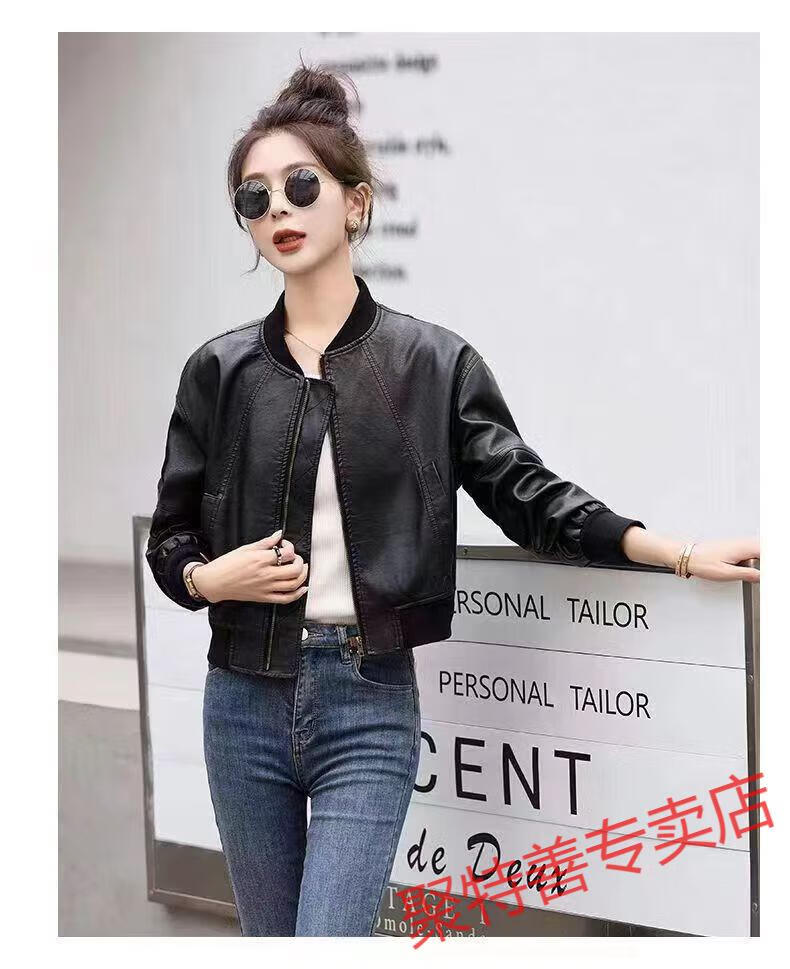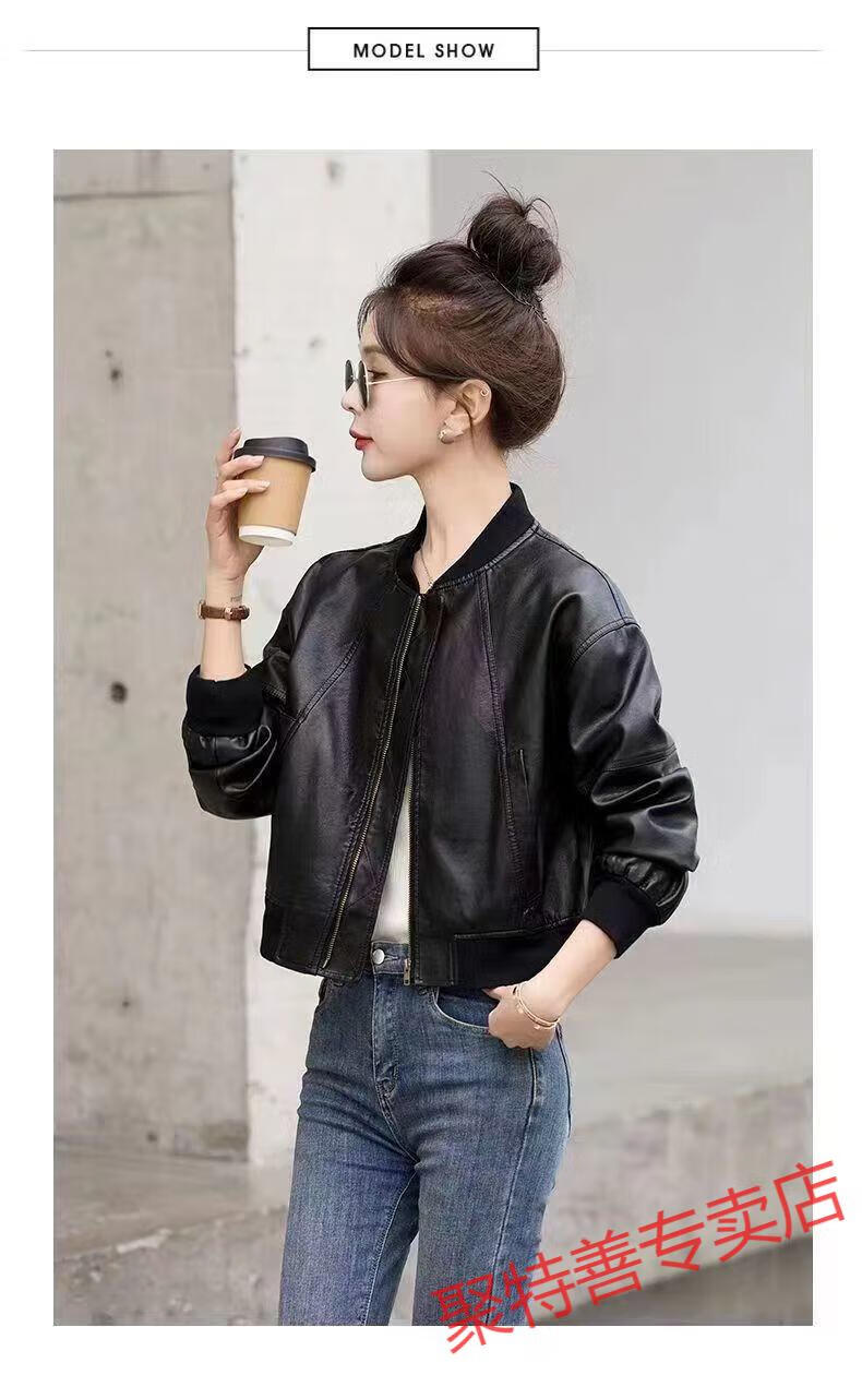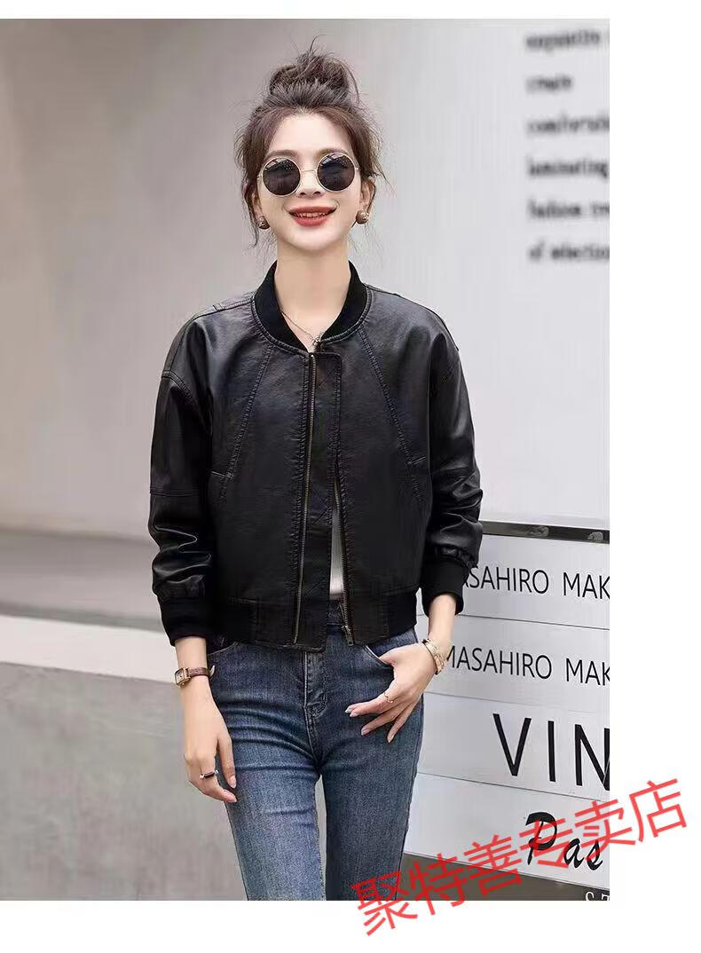 Pierre Cardin Baseball Collar Leather Jacket Women's Short Style Small Spring and Autumn Style Korean Style Motorcycle Leather Jacket Retro Slim Versatile Short Style Brown B (Recommended by the Store Manager) L 90-105Jin Jin equals 0.5 kg