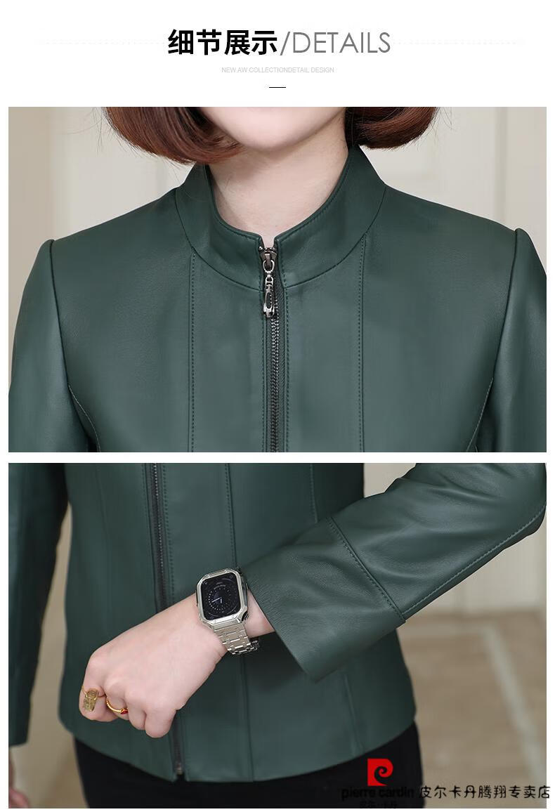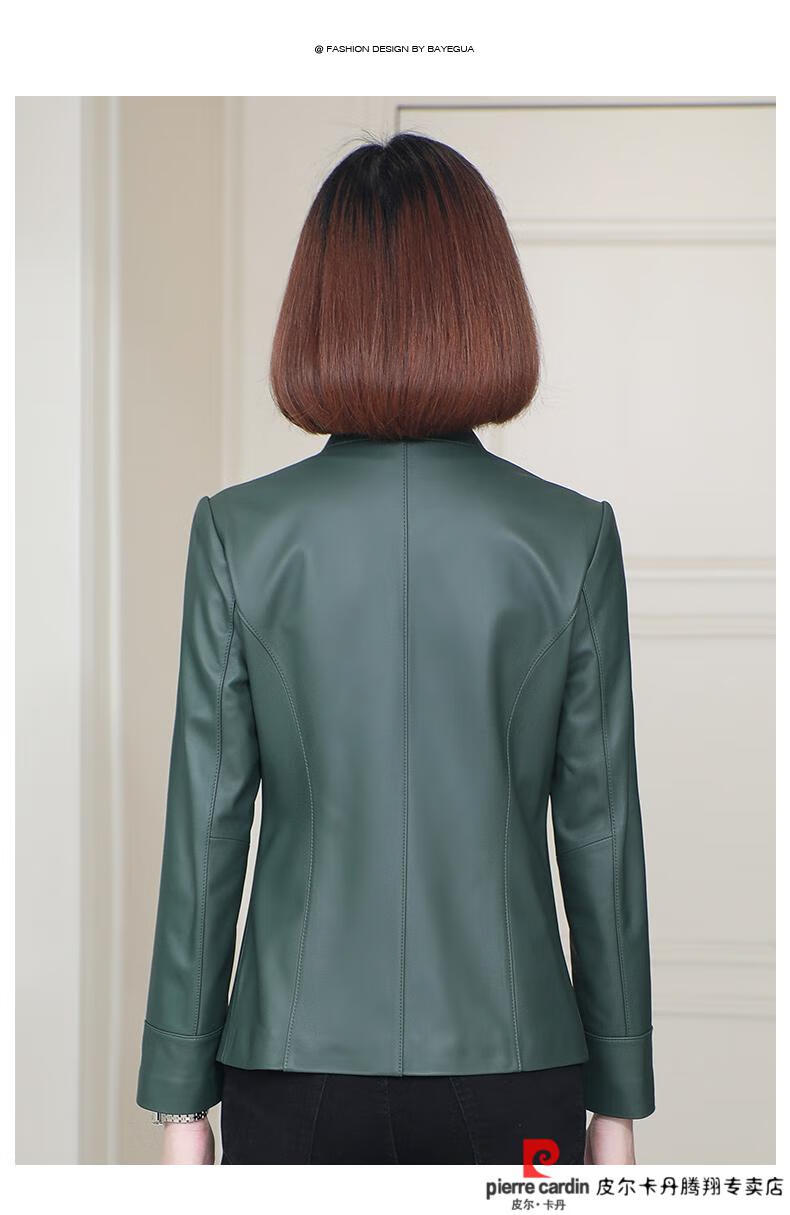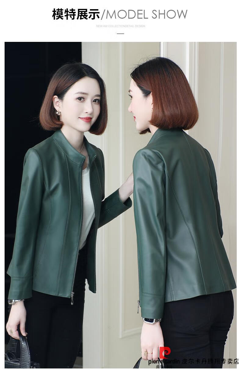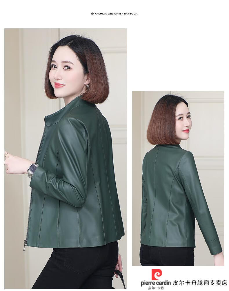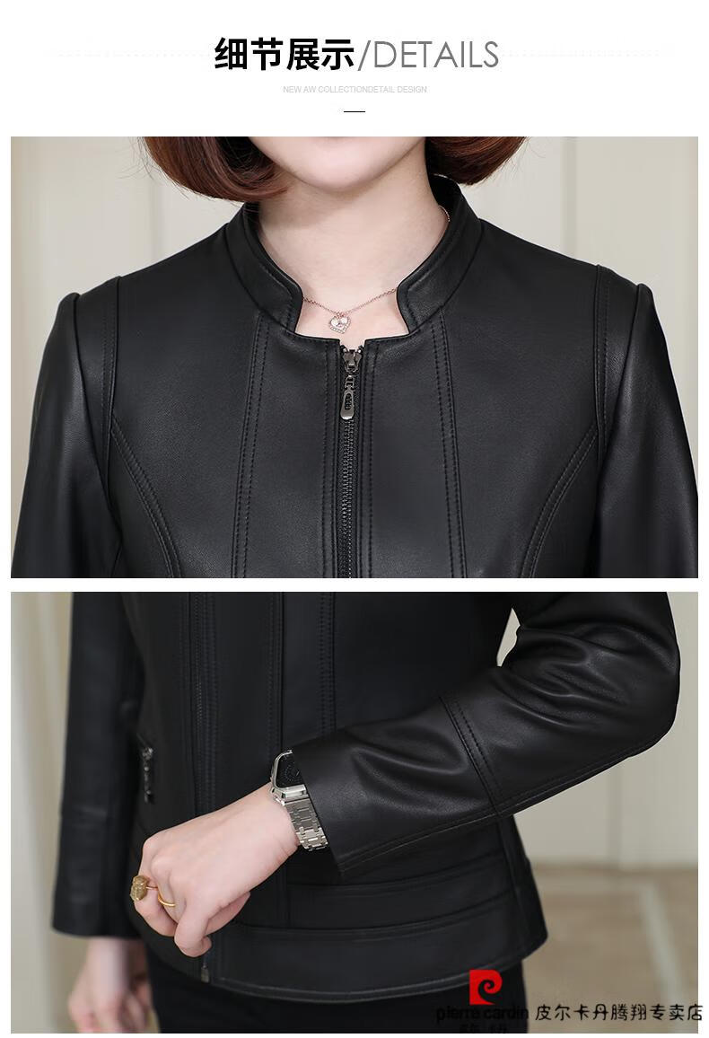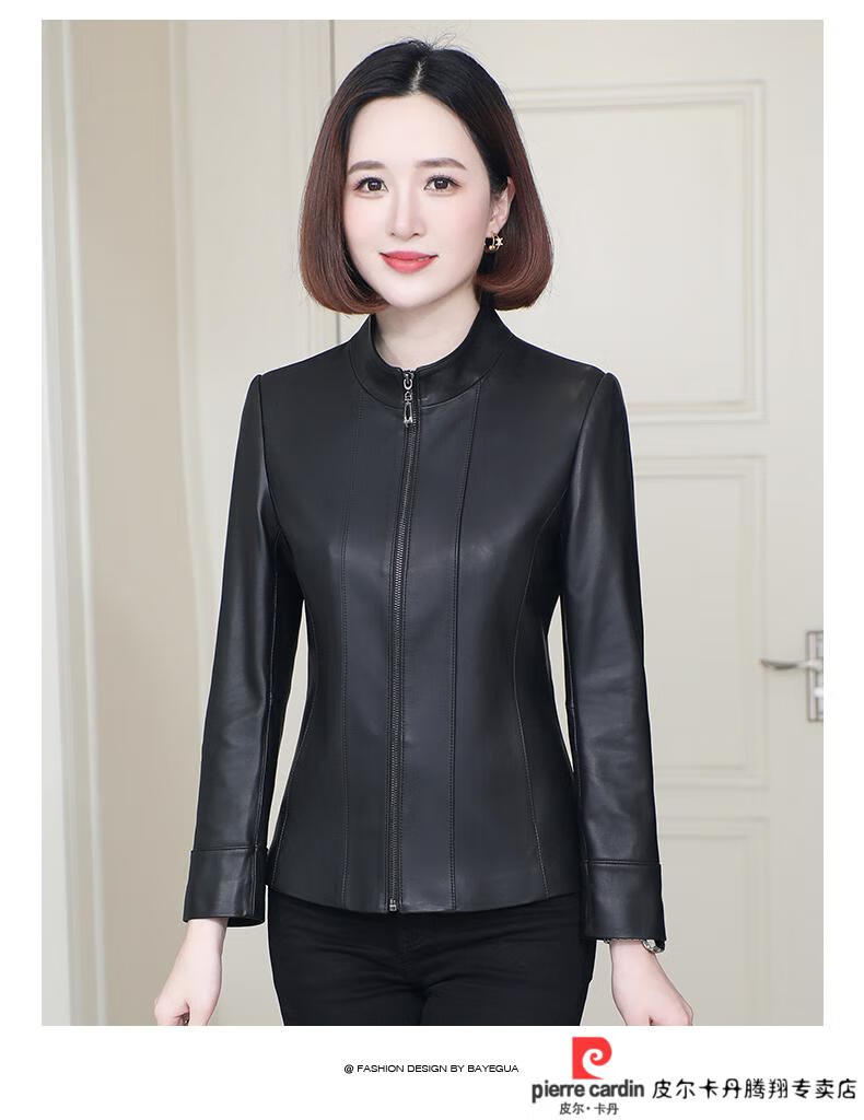 Pierre Cardin Genuine Leather Jacket Small Leather Jacket Women 2025 Spring and Autumn New Haining Leather City Sheepskin Short Jacket for Middle-aged Moms Black XL