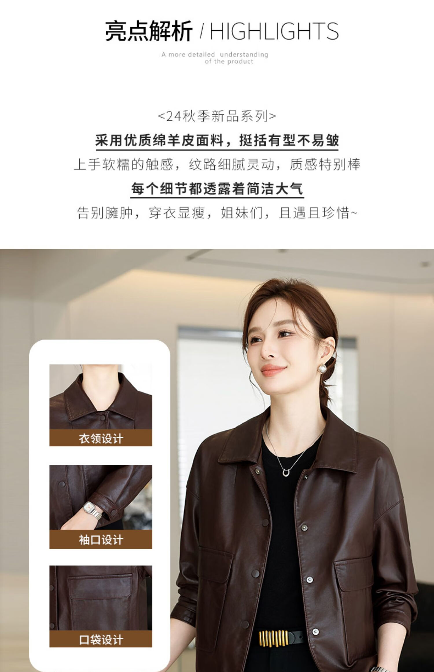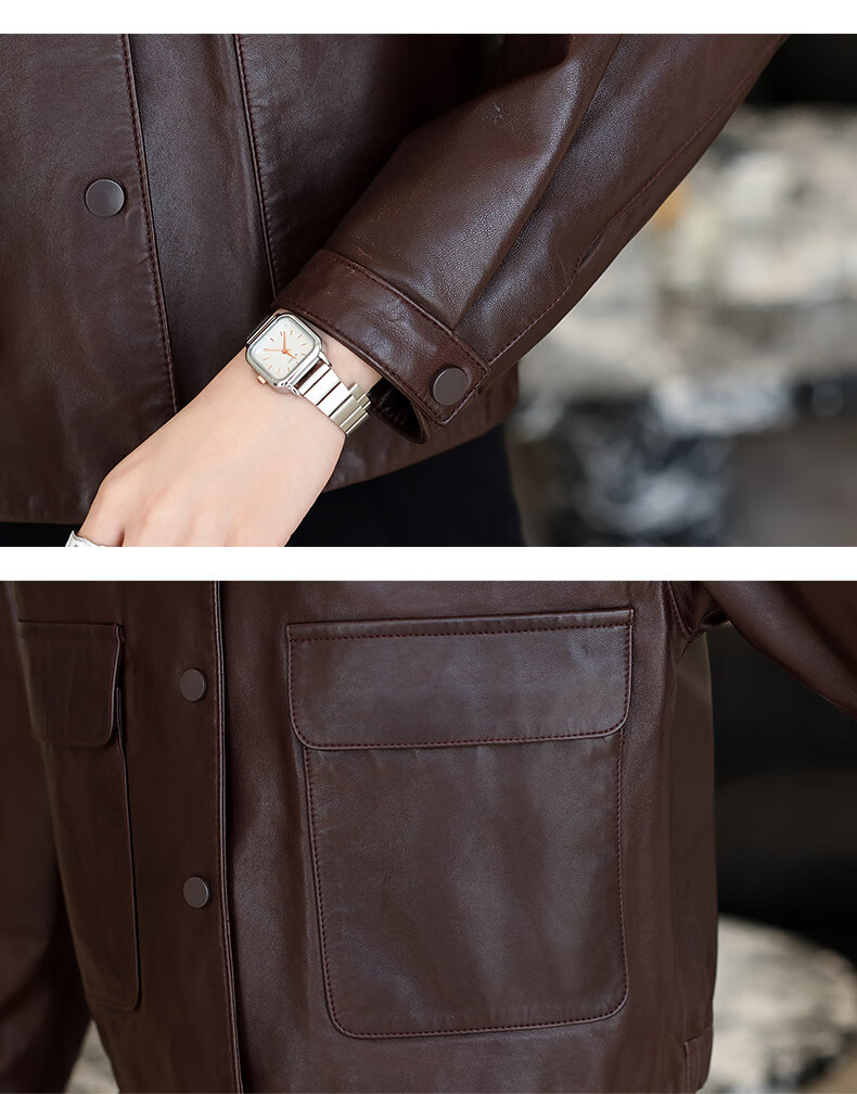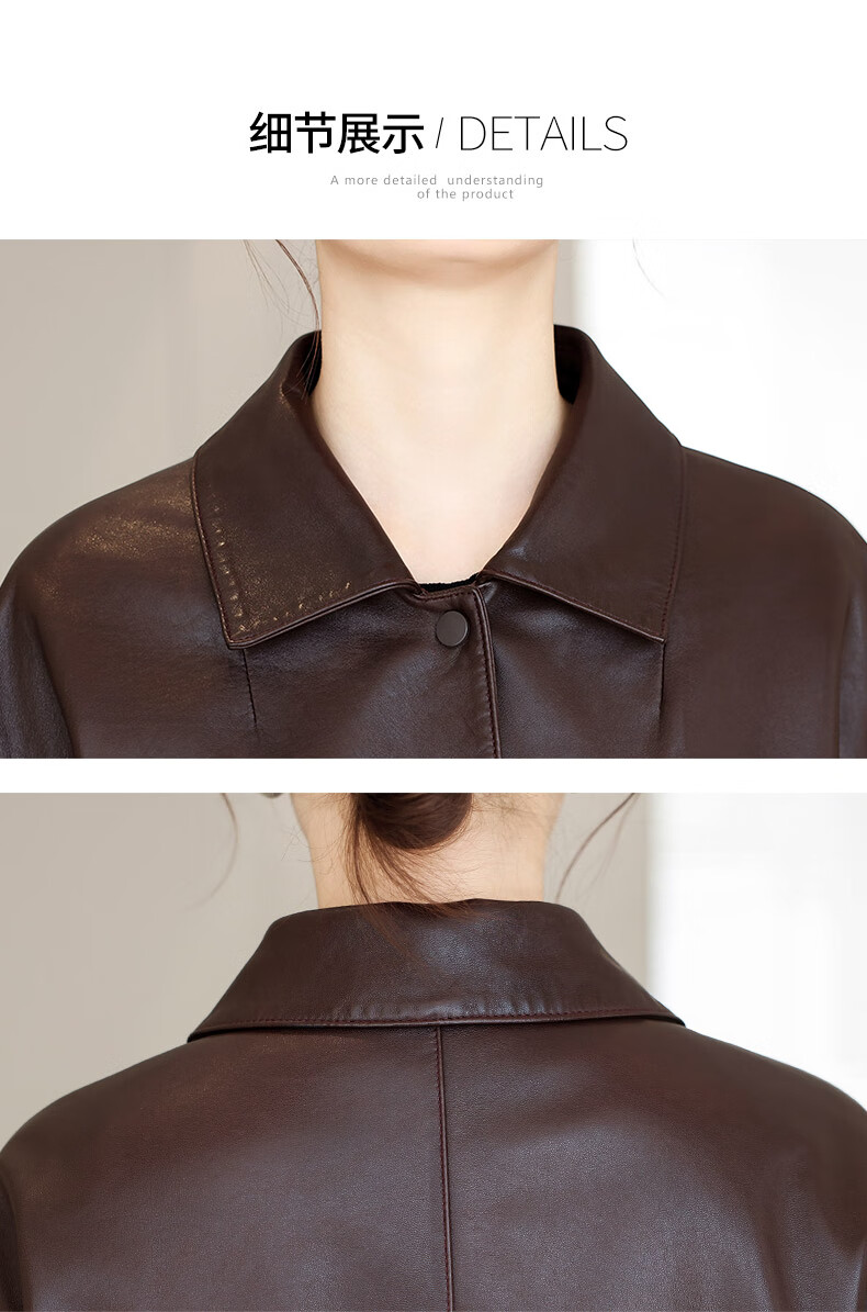 Lingfaner Haining genuine leather small leather jacket for women 2024 new spring and autumn casual first layer sheepskin jacket short style red coffee color 3XL