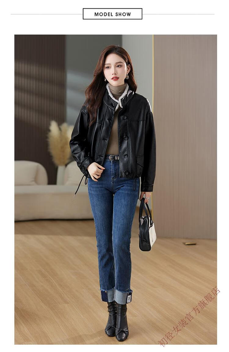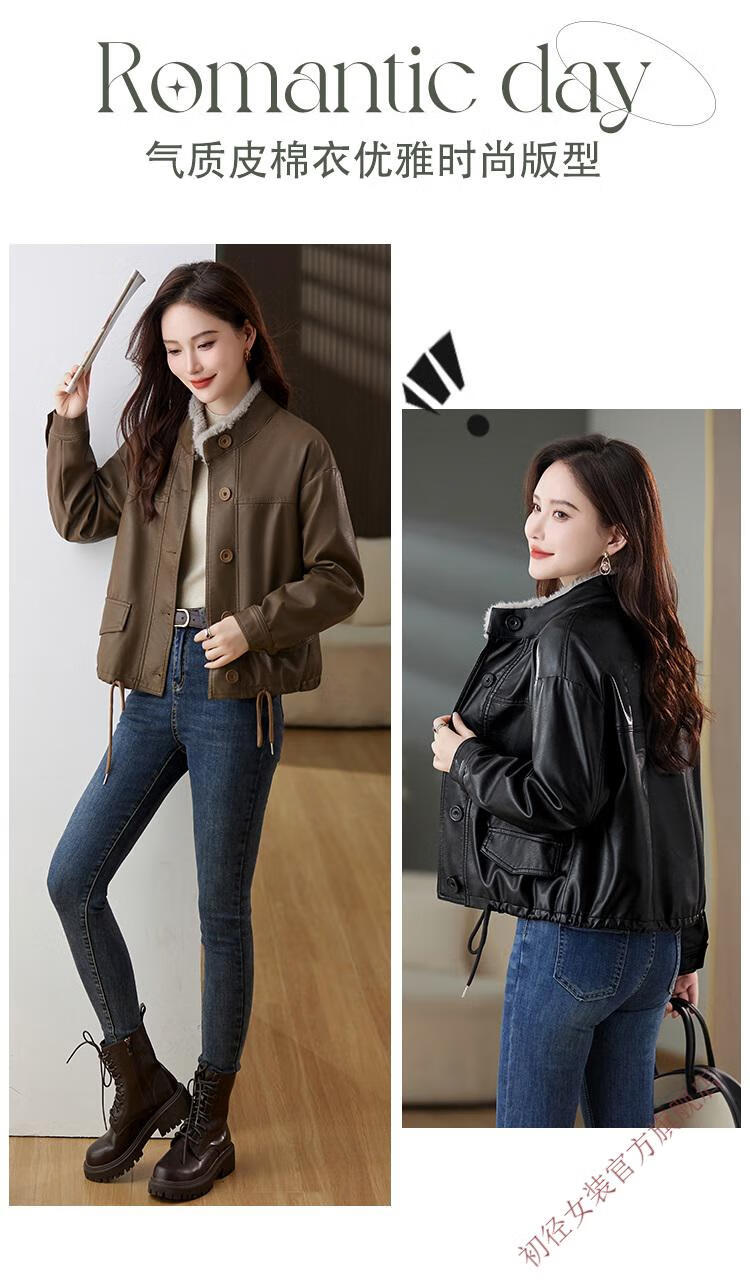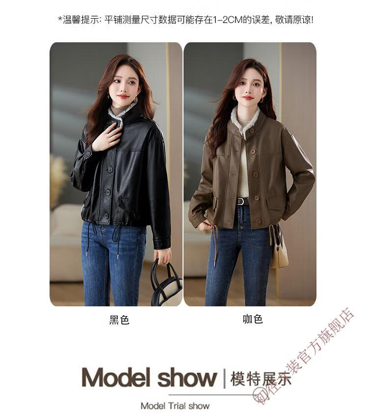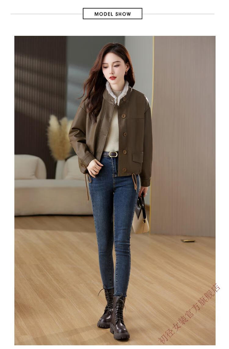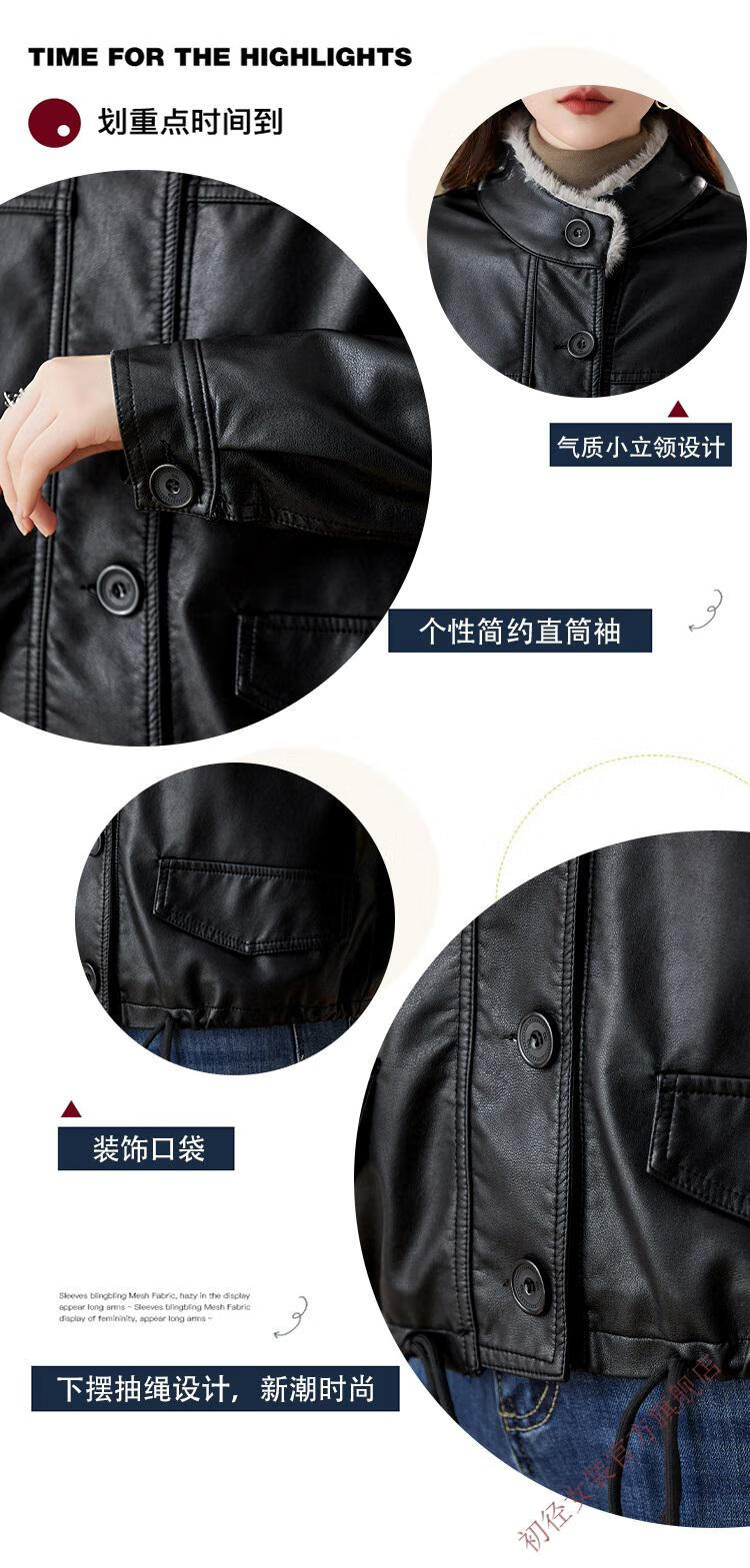 Chujing Leather Jacket Women's Autumn and Winter Short Style 2025 New European Style Fashionable Versatile Velvet Thickened Leather-Cotton Card Color M