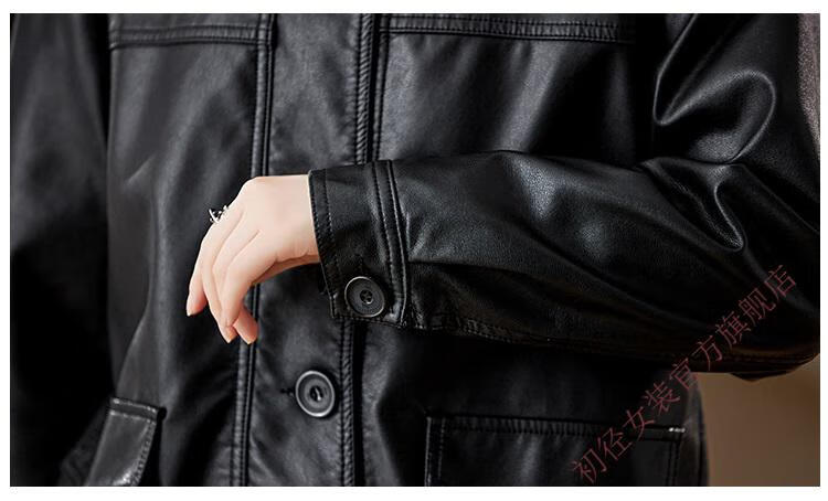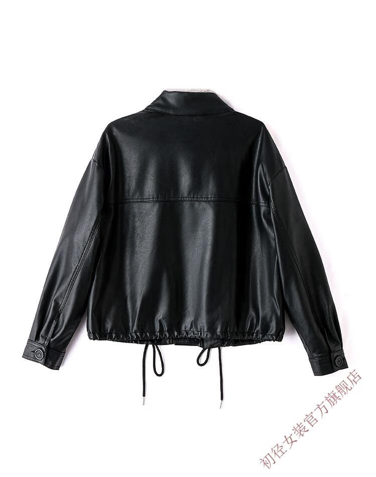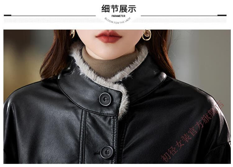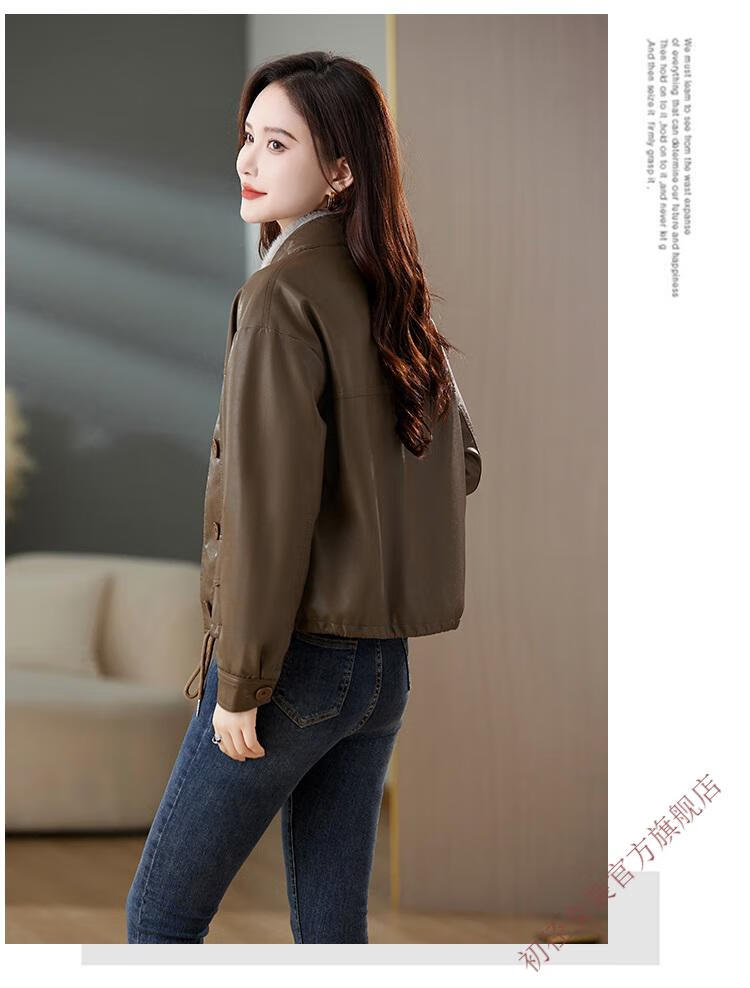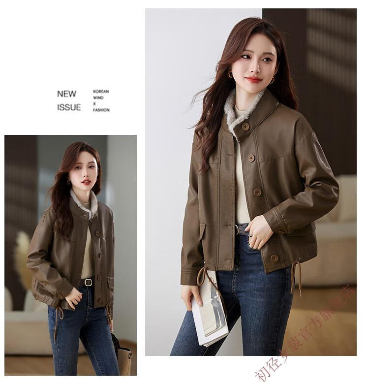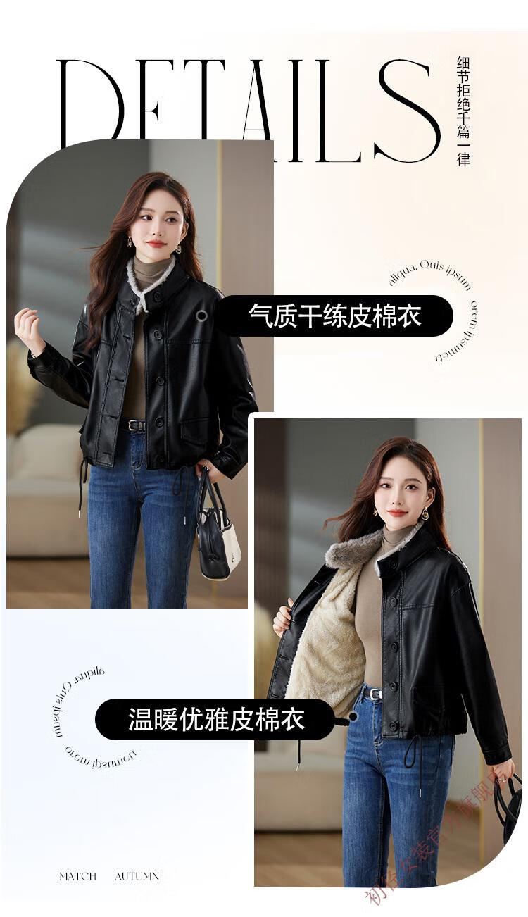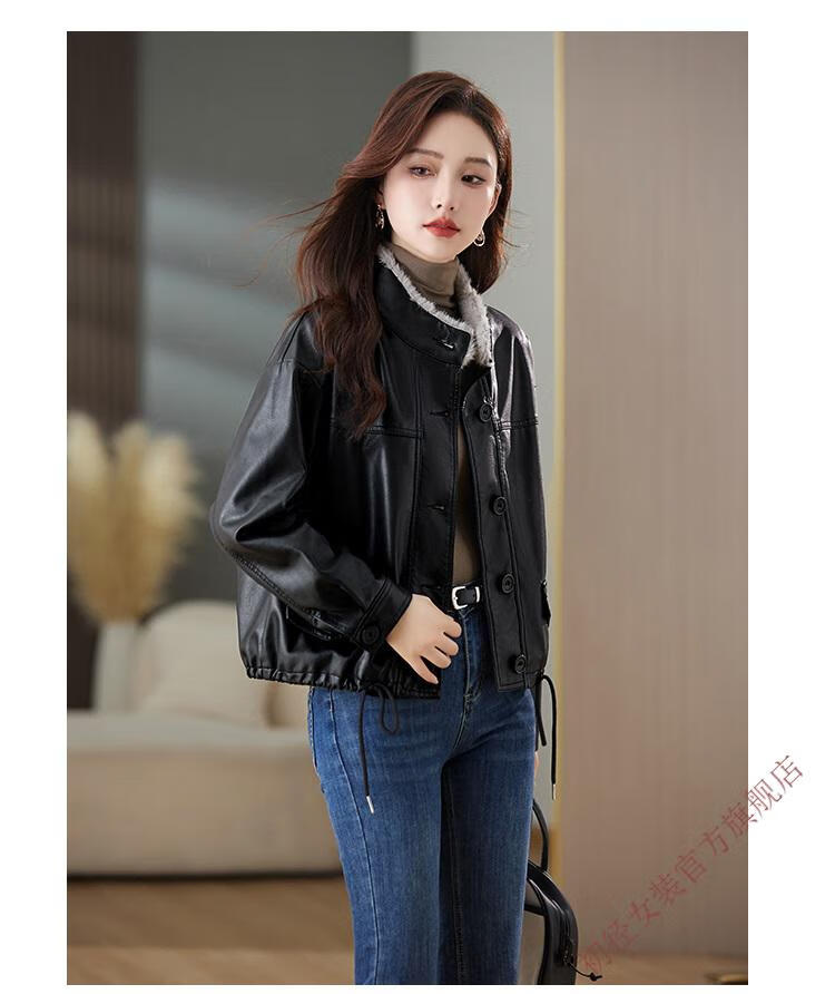 Chujing Leather Jacket Women's Autumn and Winter Short Style 2025 New European Style Fashionable Versatile Velvet Thickened Leather-Cotton Card Color M