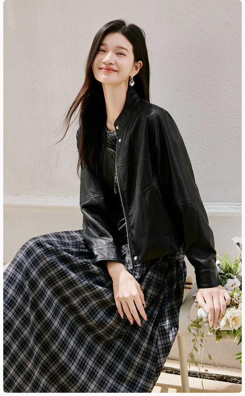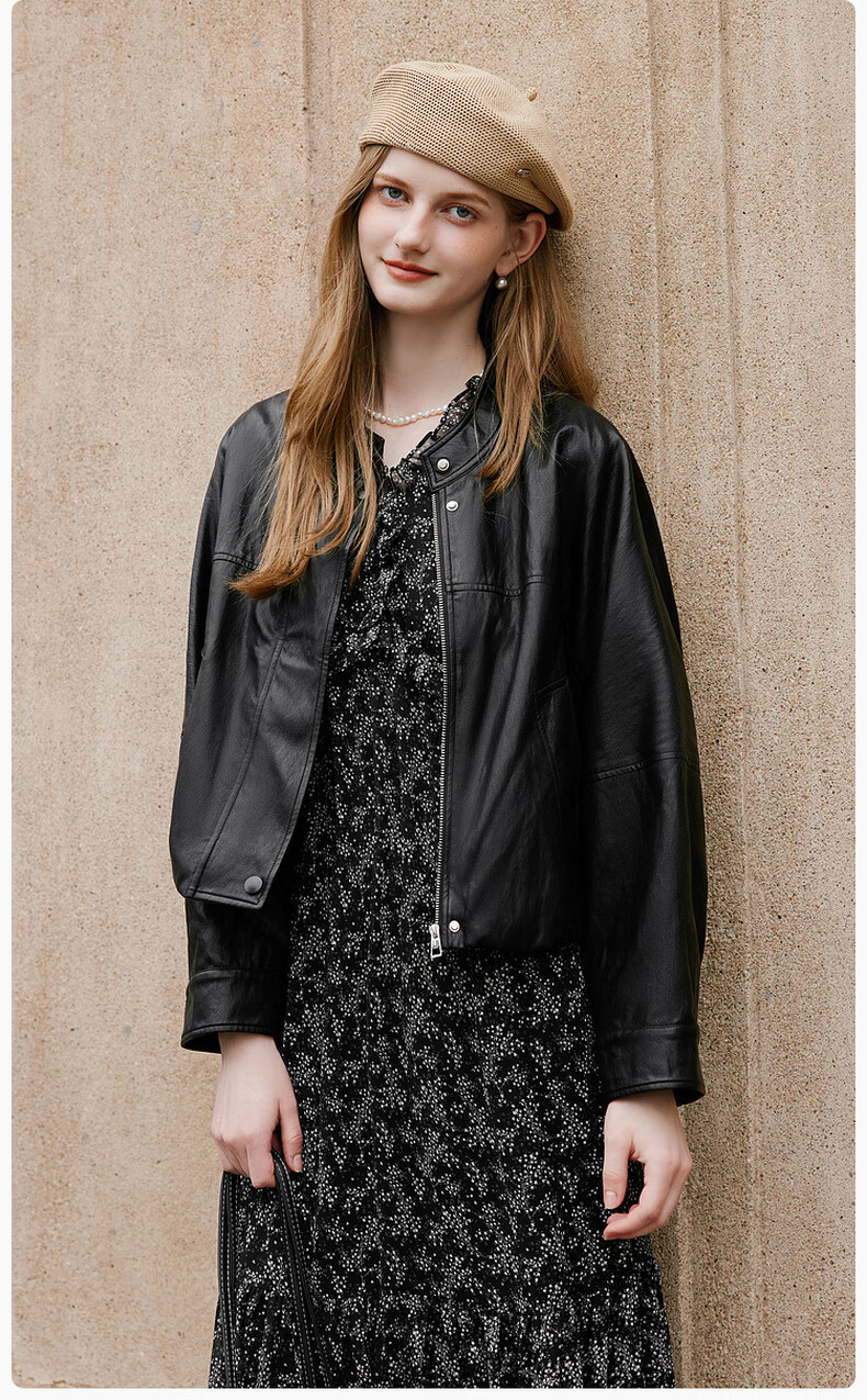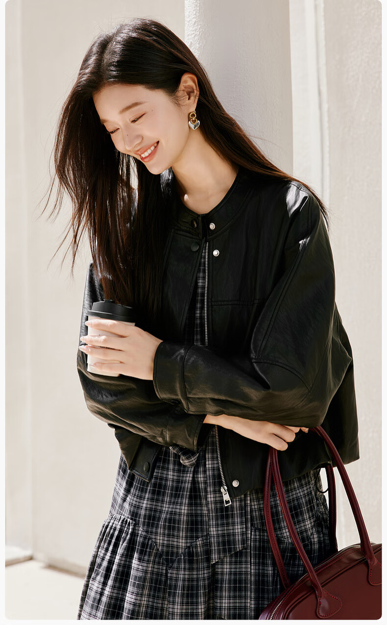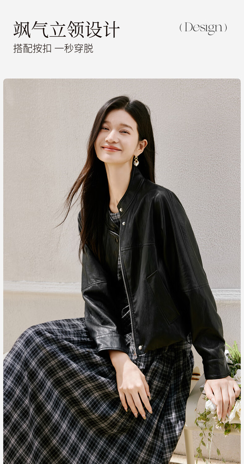 Xiangying cool style black leather jacket for women 2025 autumn new style high-end western style pu motorcycle short jacket black L 165/88A/110-125Jin Jin is equal to 0.5 kg