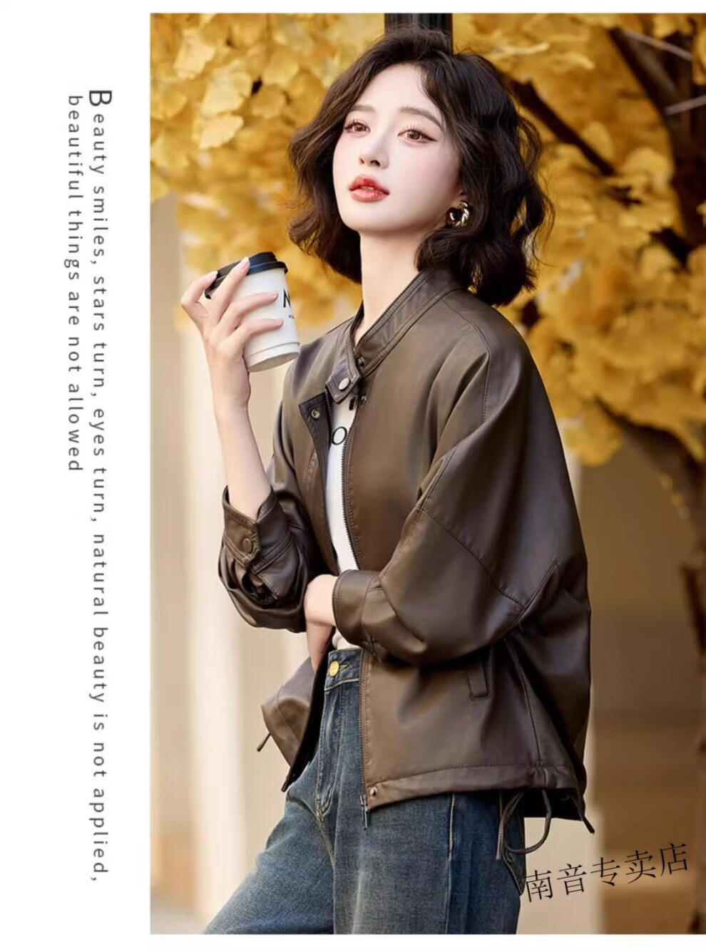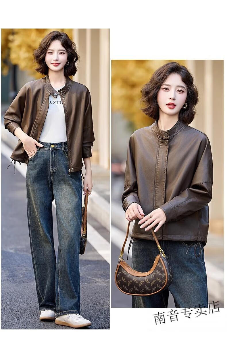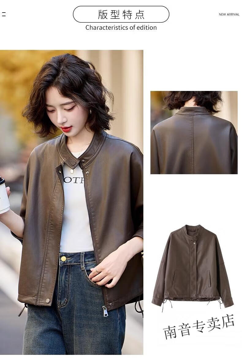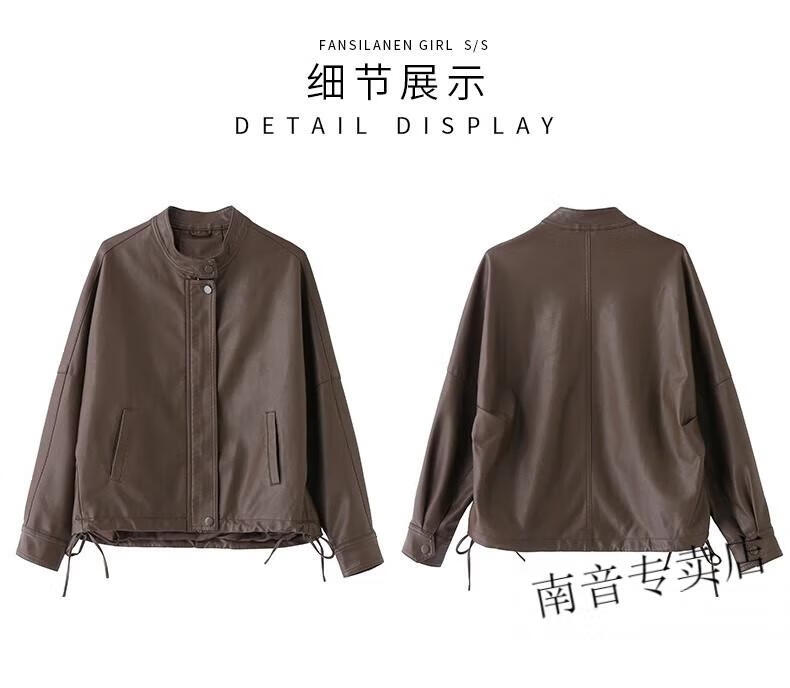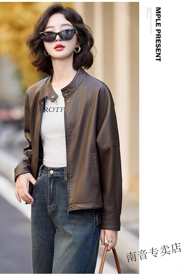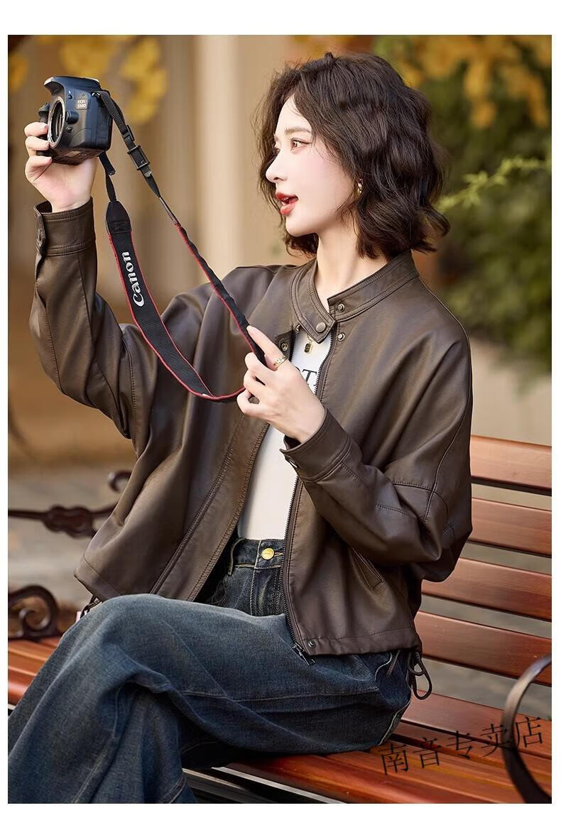 Romon Maillard Veste en cuir femme 2025 nouveau printemps et automne court ample décontracté rétro veste de moto en cuir PU haut marron S Recommandation 80-100Jin Jin est égal à 0,5 kg