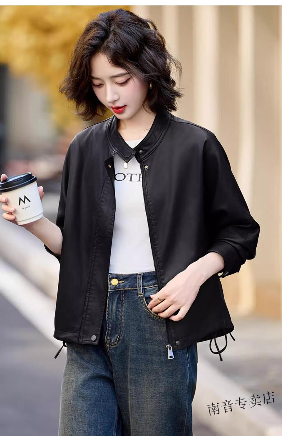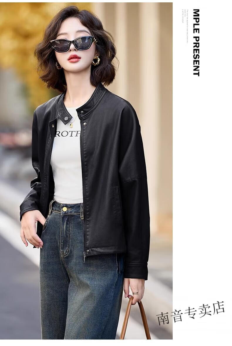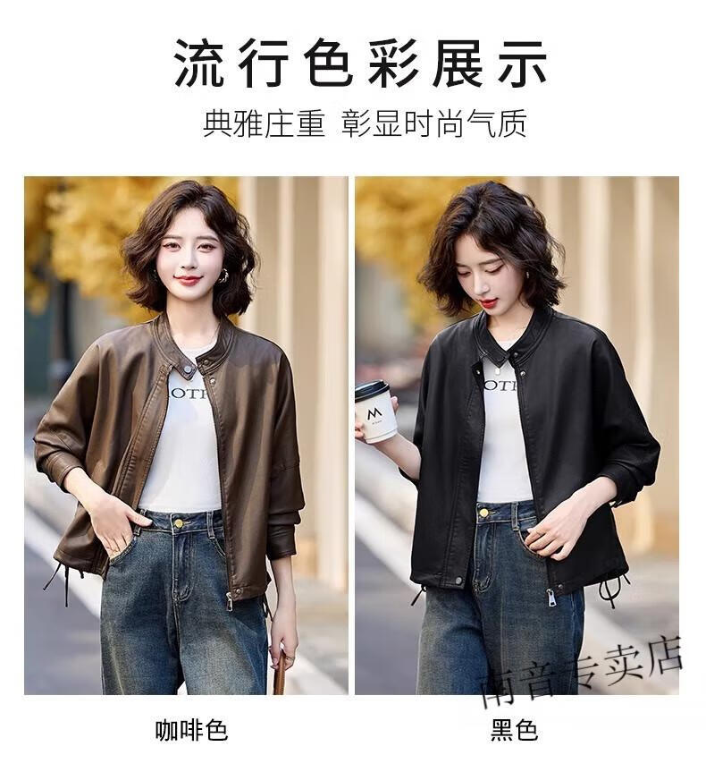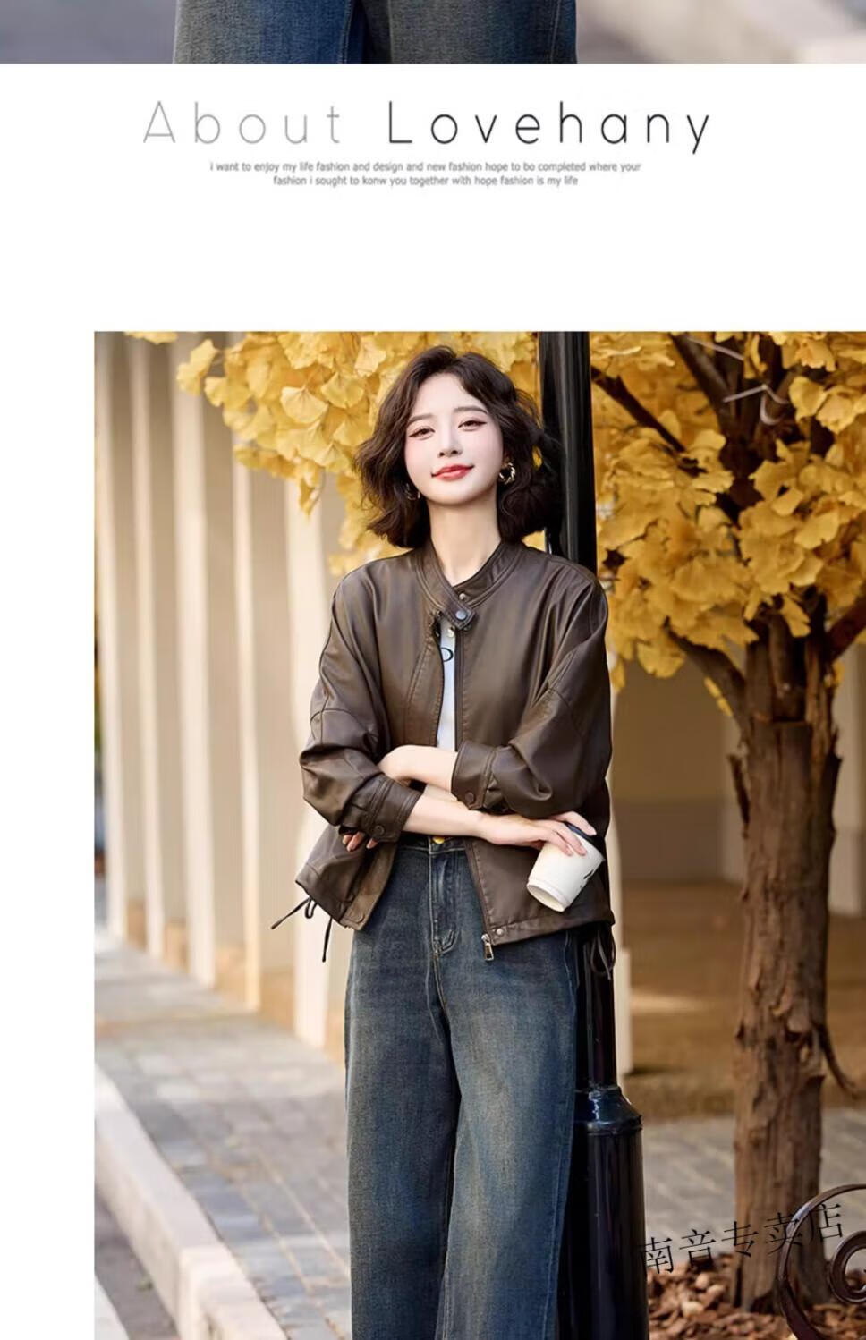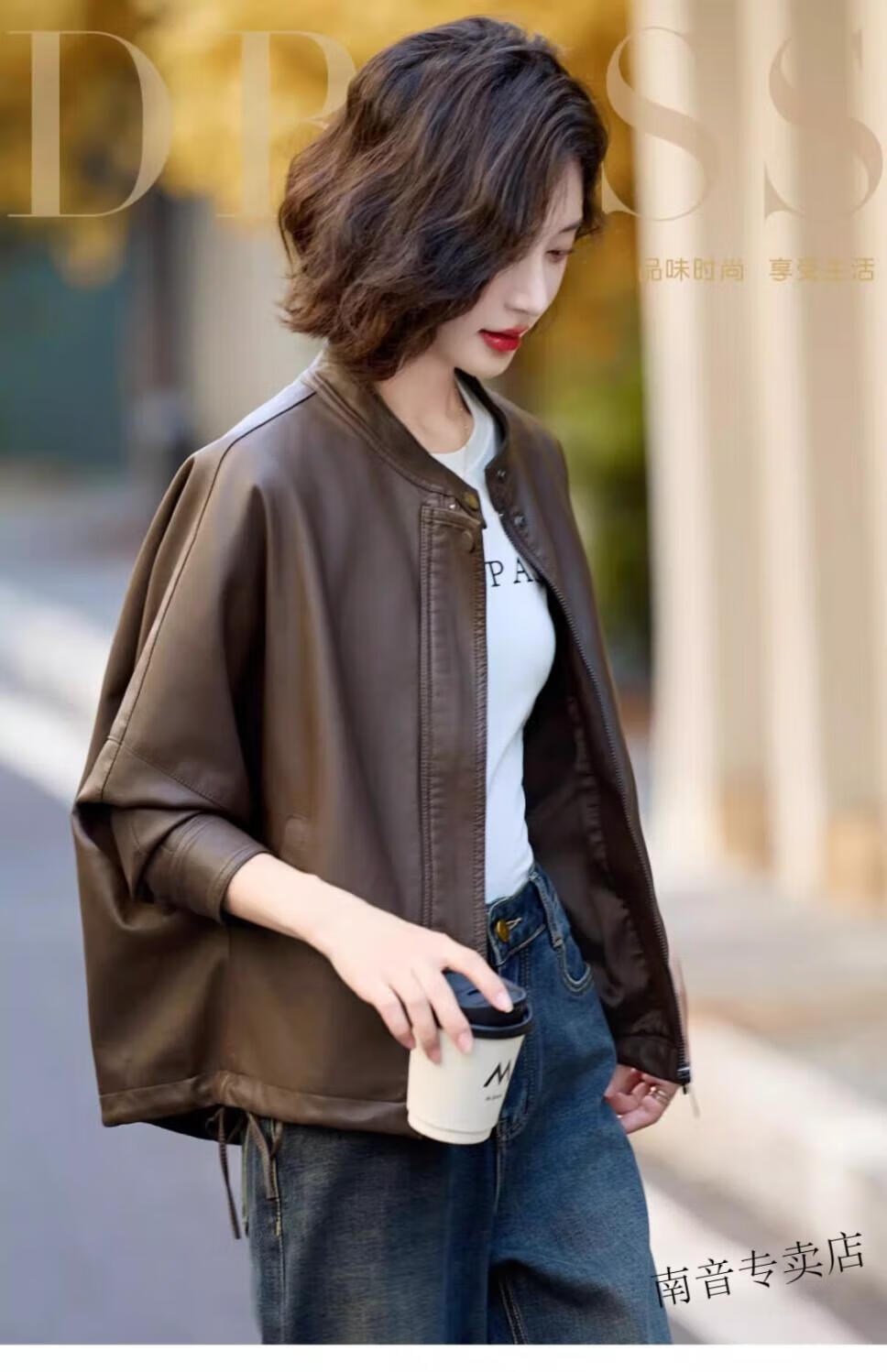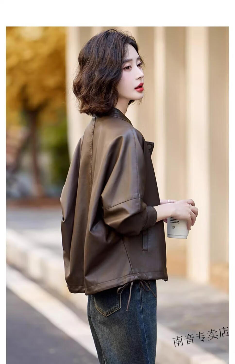 Romon Maillard Veste en cuir femme 2025 nouveau printemps et automne court ample décontracté rétro veste de moto en cuir PU haut marron S Recommandation 80-100Jin Jin est égal à 0,5 kg
