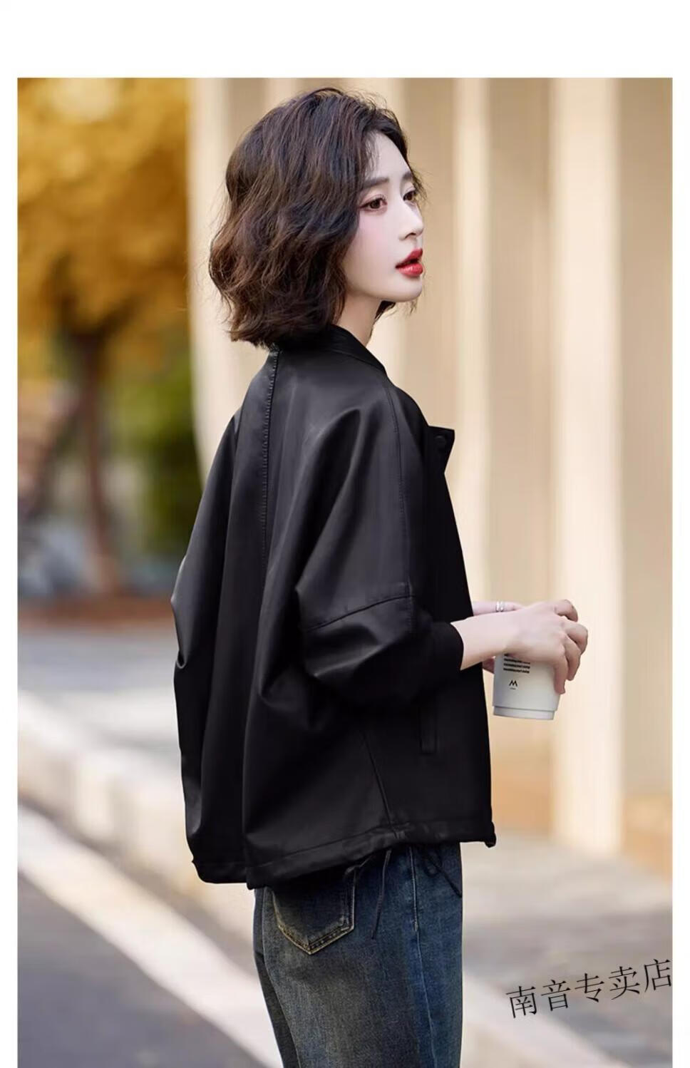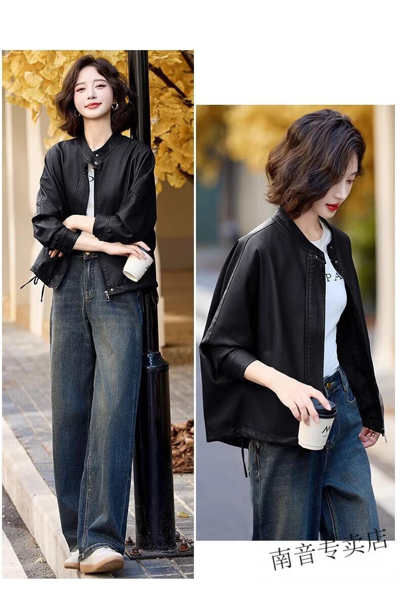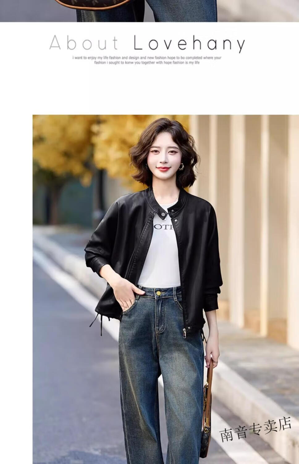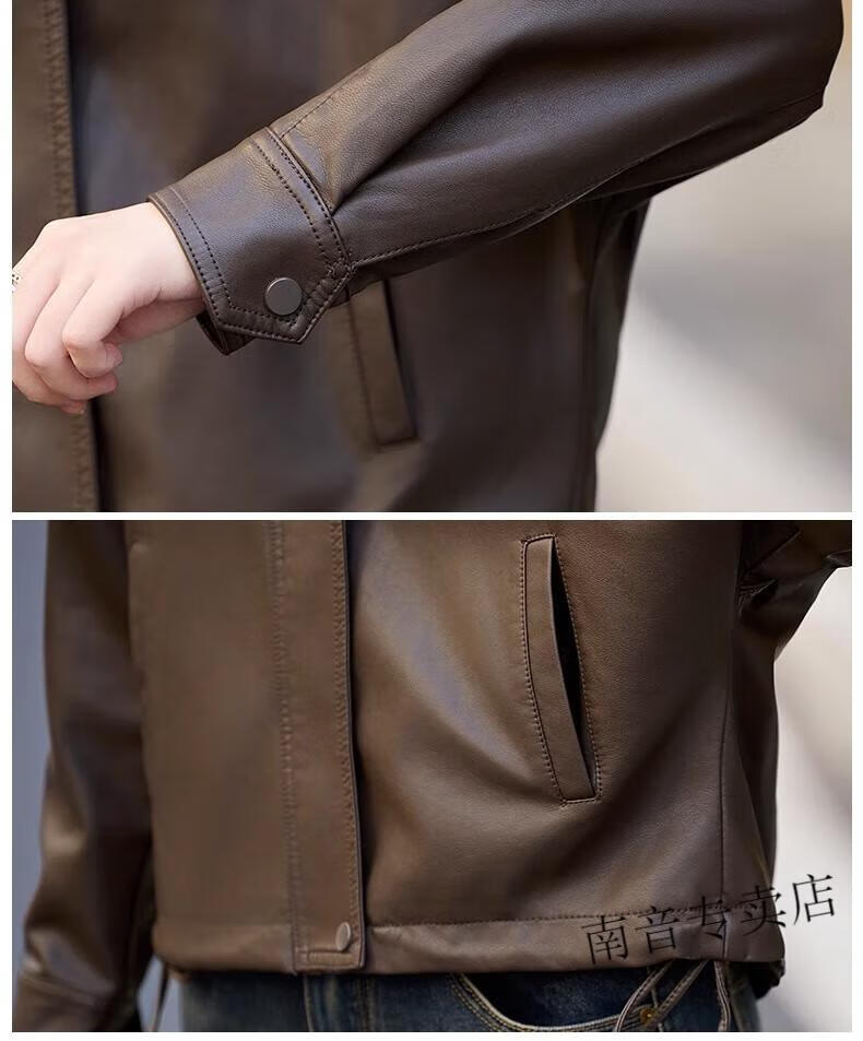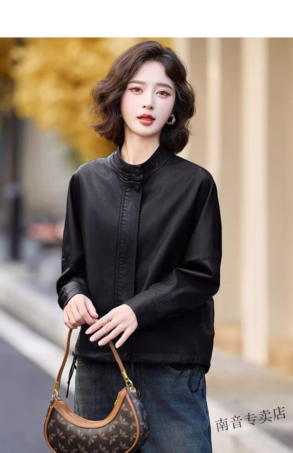 Romon Maillard Veste en cuir femme 2025 nouveau printemps et automne court ample décontracté rétro veste de moto en cuir PU haut marron S Recommandation 80-100Jin Jin est égal à 0,5 kg