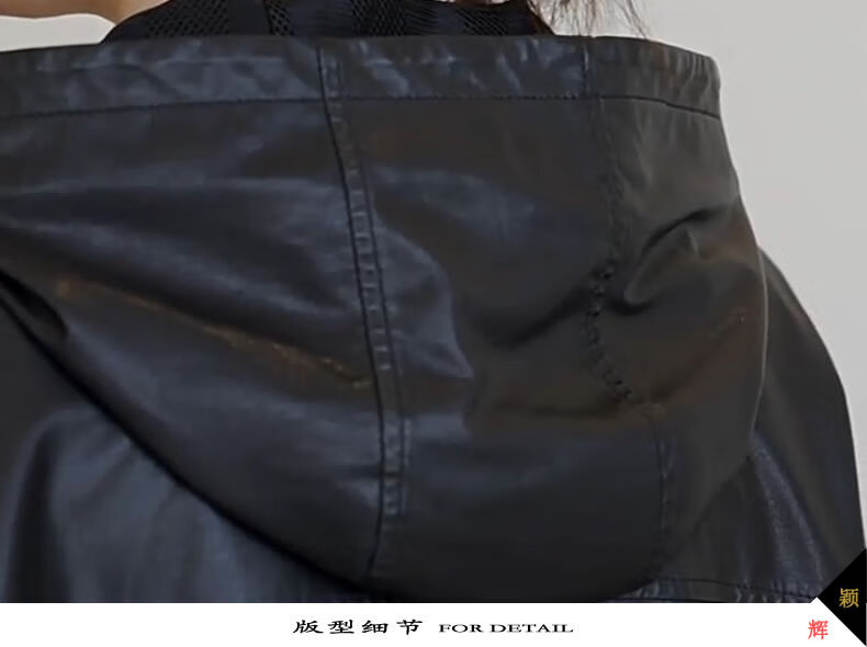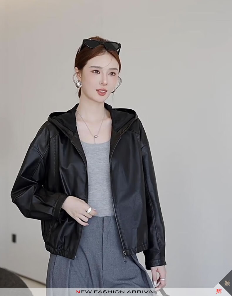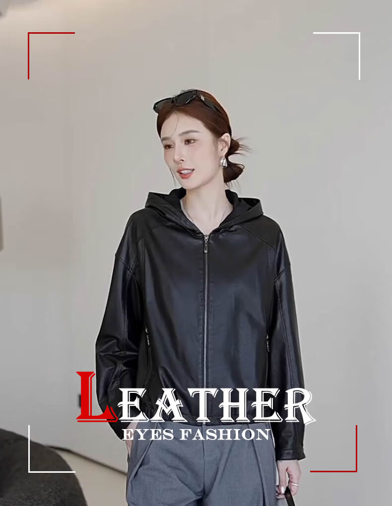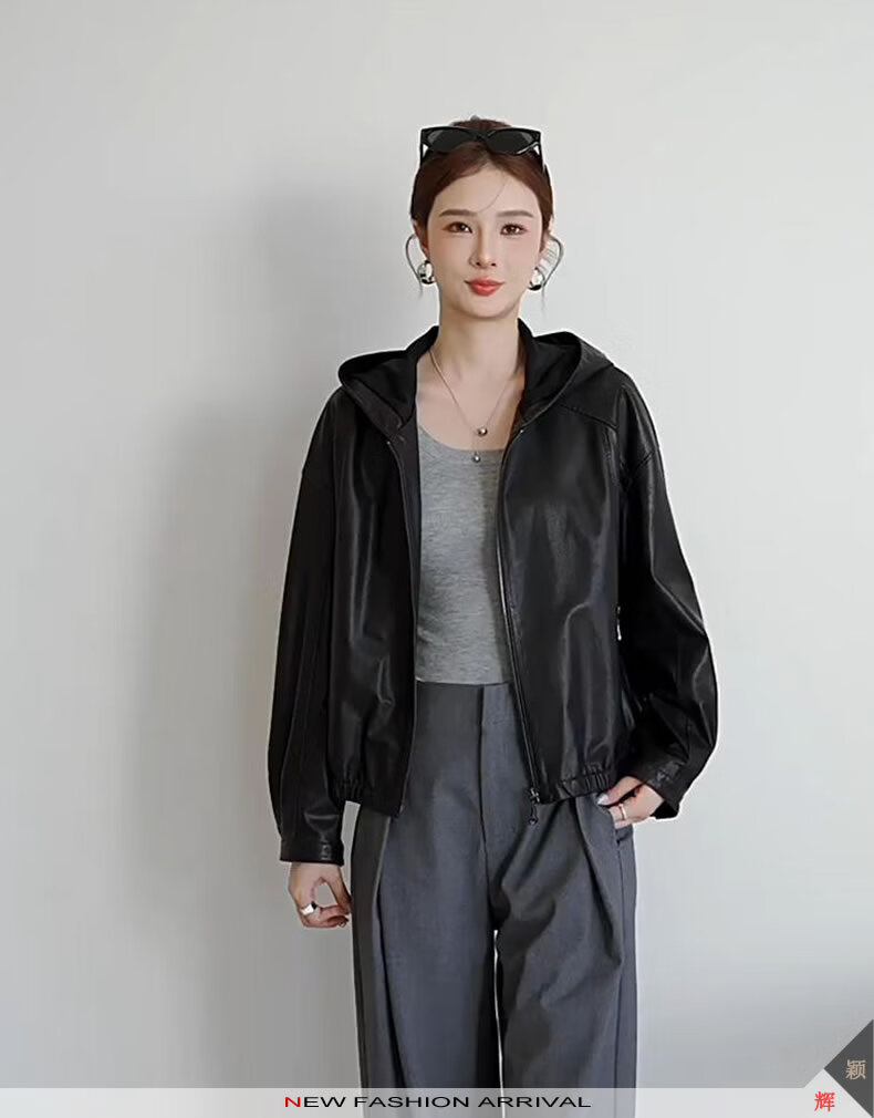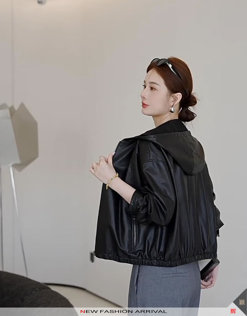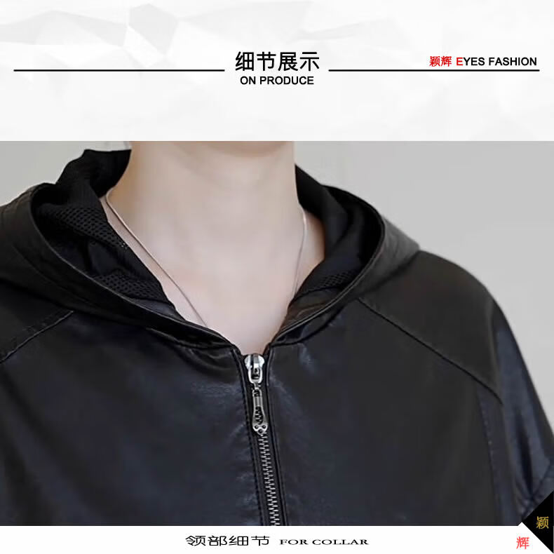 Yinghui Genuine Leather Jacket Women Haining Sheepskin Short Hooded Jacket Spring and Autumn New Vegetable Tanned Leather Casual Large Size Top Women Black XL