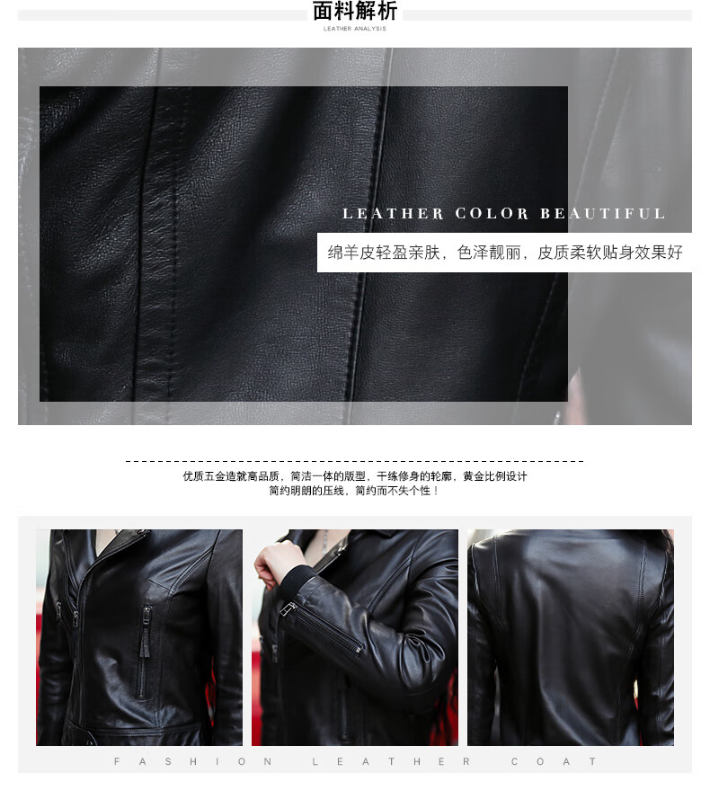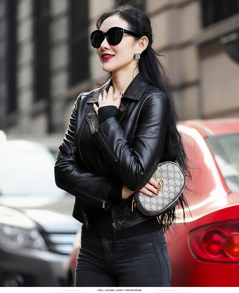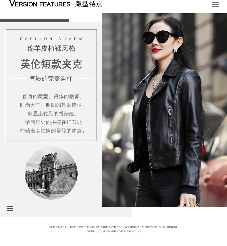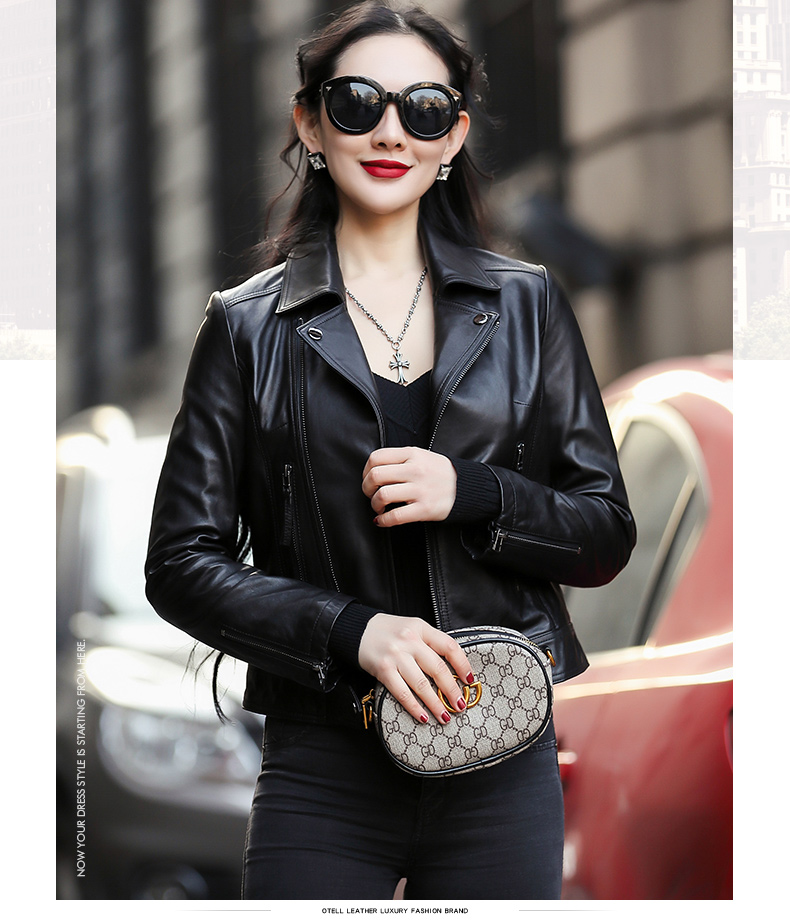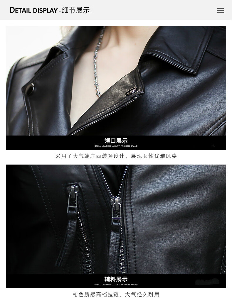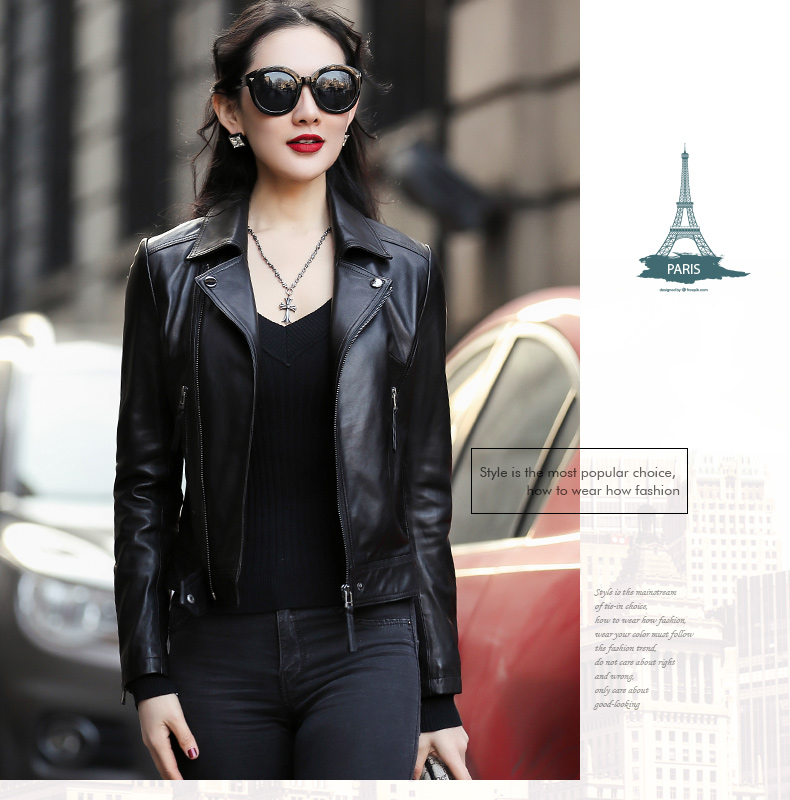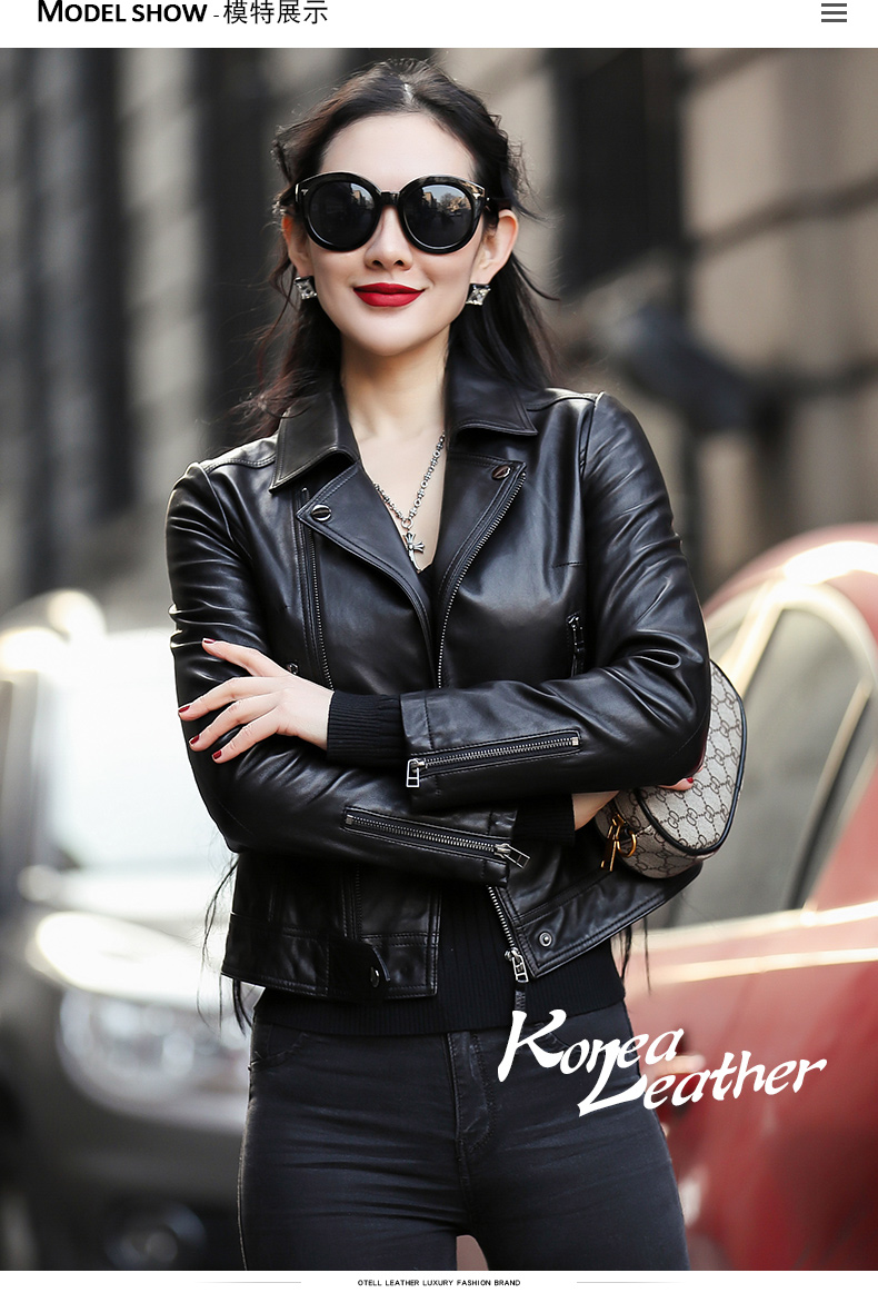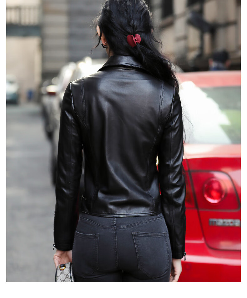 Bo Shilan Haining new spring and autumn genuine leather jacket for women motorcycle sheepskin slim short jacket large size P5197 black L 105-114Jin Jin is equal to 0.5 kg