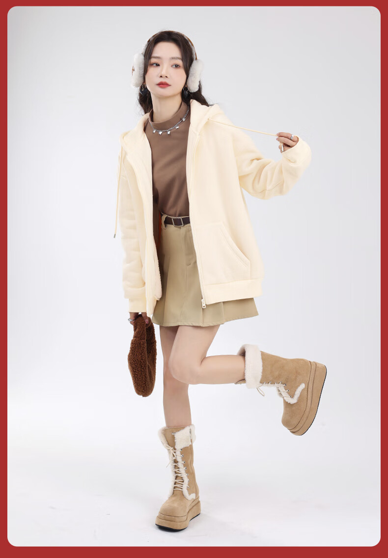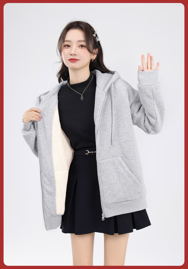 Warrior winter warm cardigan sweatshirt for women 2025 sherpa plus velvet thickened trendy fashion versatile hooded jacket