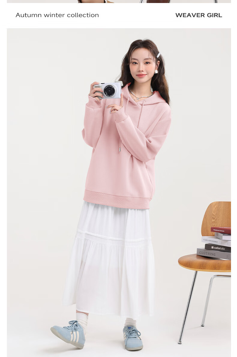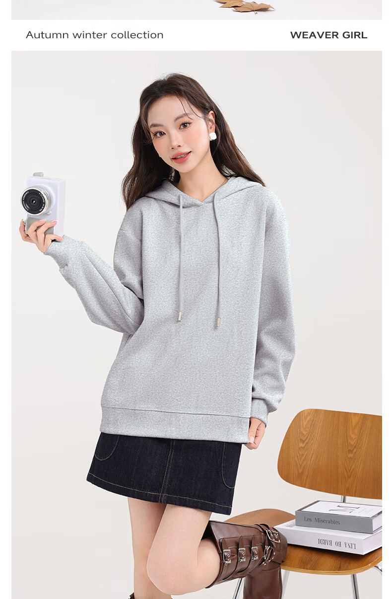 MJ STYLE trendy simple casual hooded long-sleeved sweatshirt for women 2025 autumn new loose, comfortable, slim and versatile sweatshirt