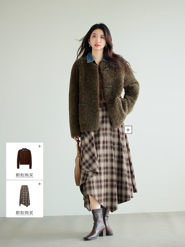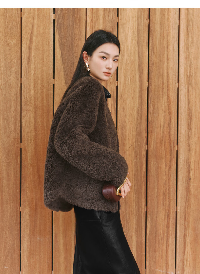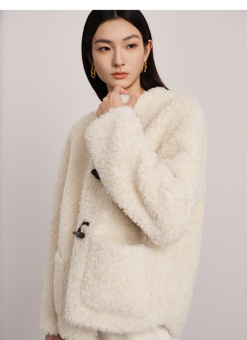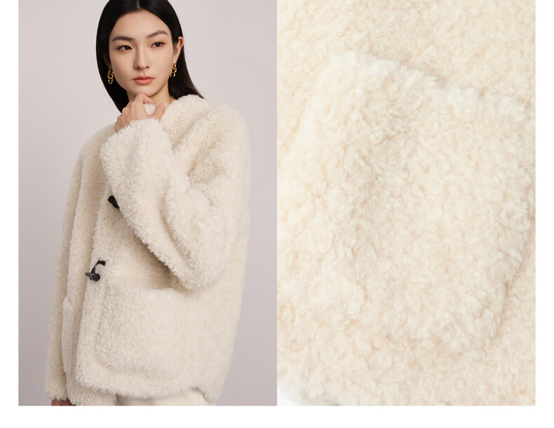 Eifini 100% sheep wool fur all-in-one college style horn button jacket 2025 autumn new style pumice gray S 85-110Jin Jin is equal to 0.5 kg