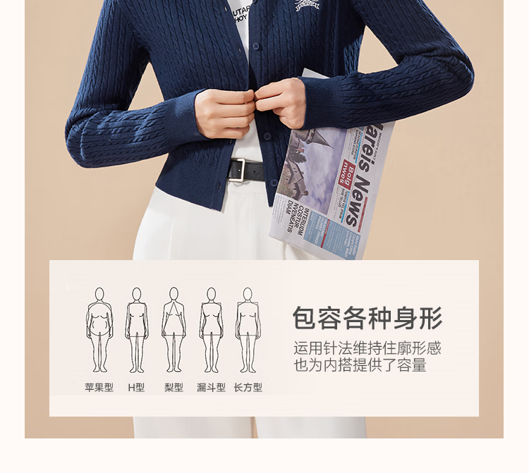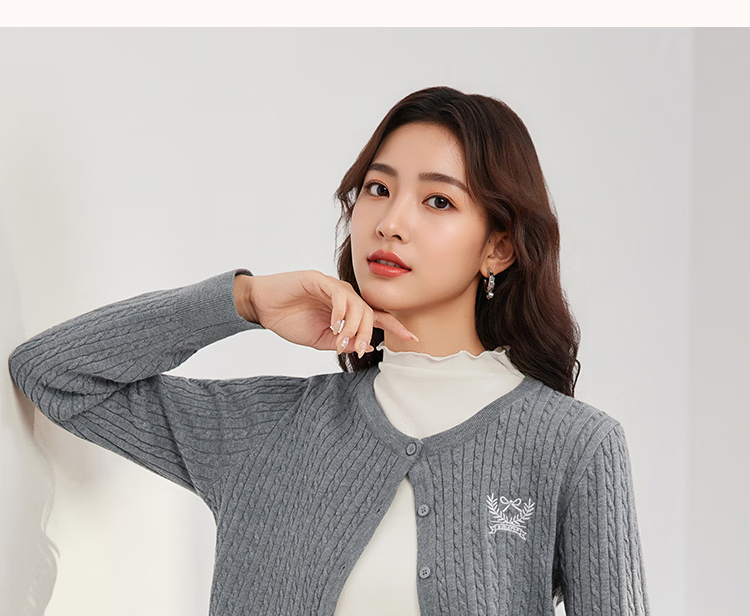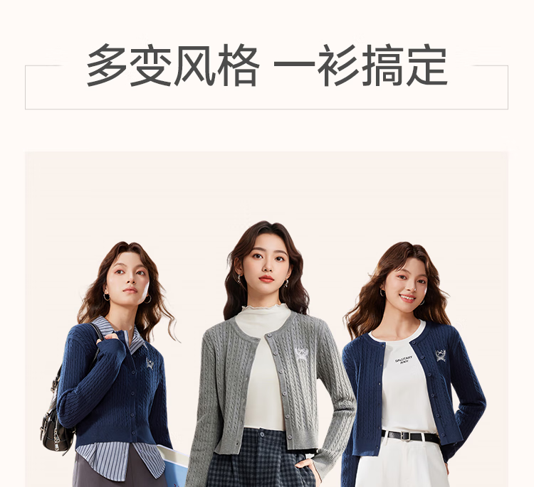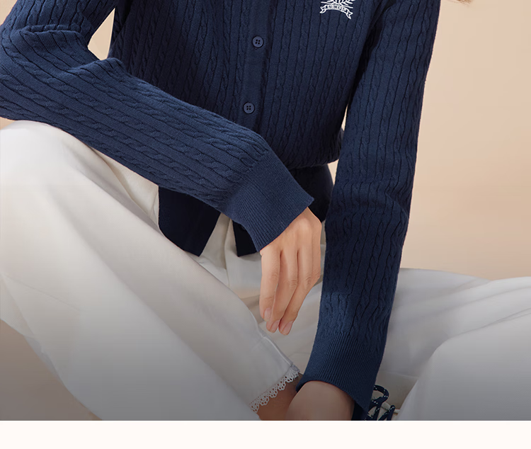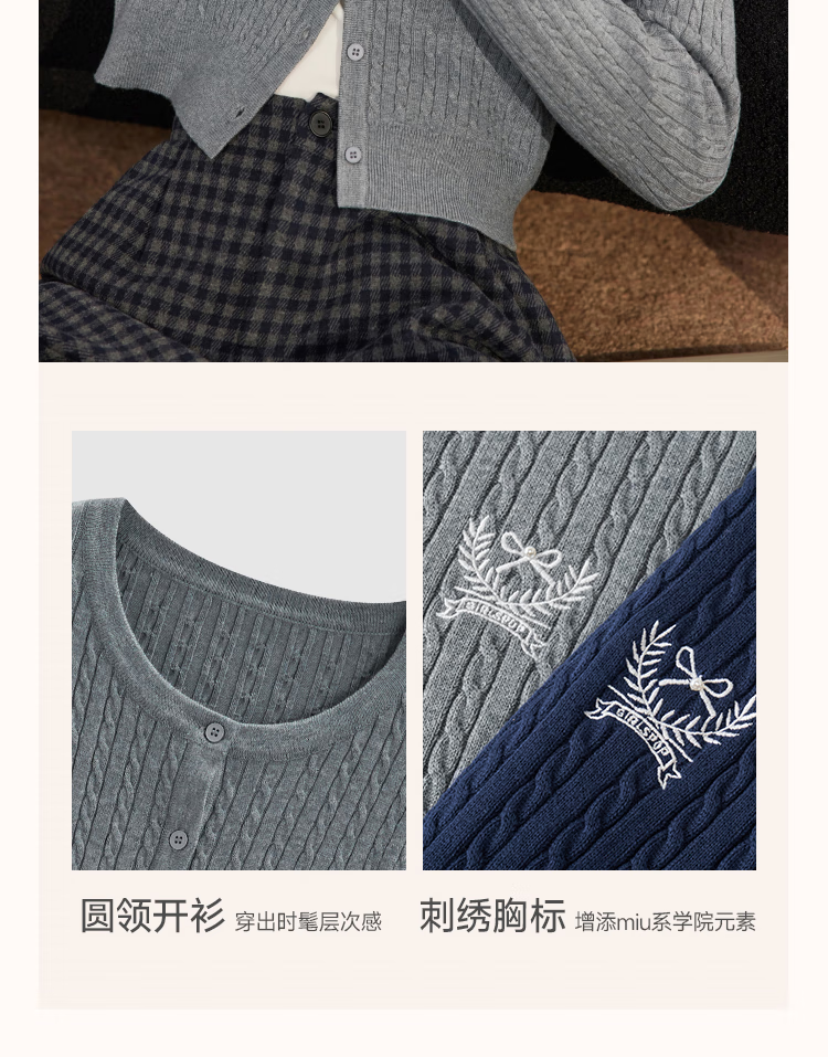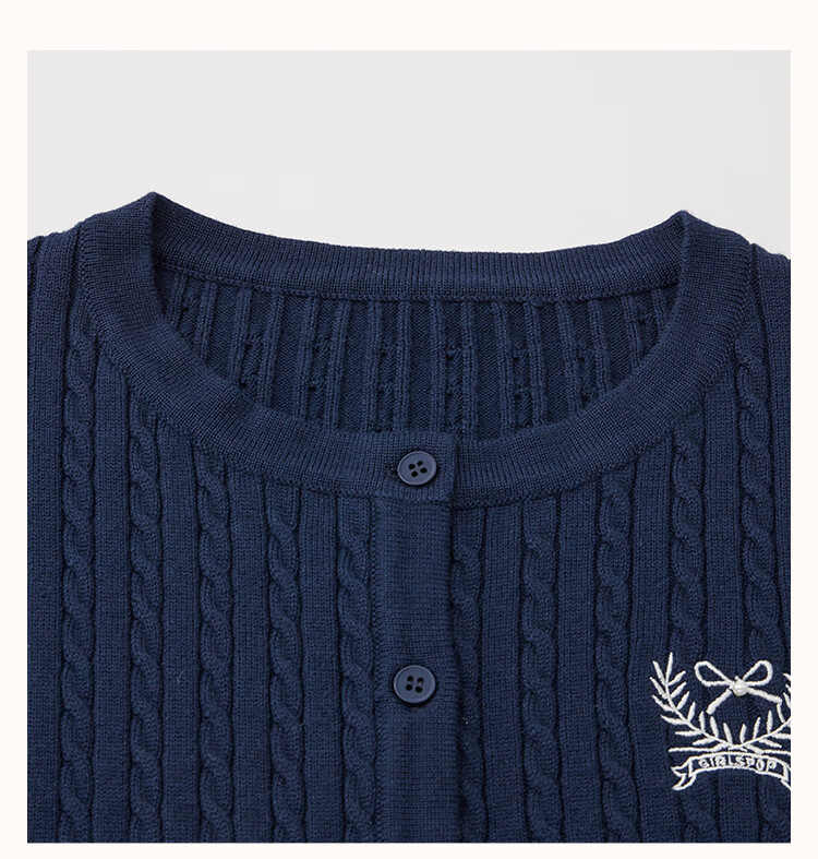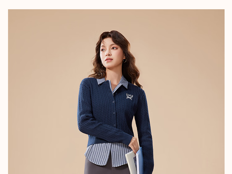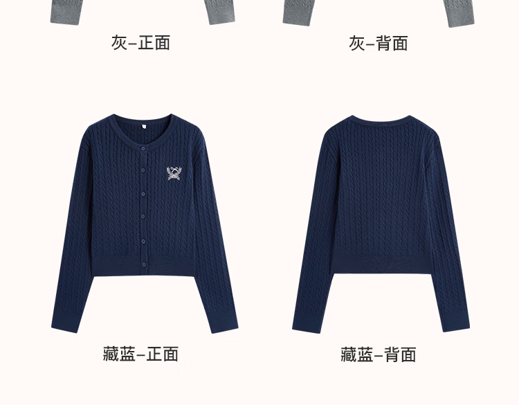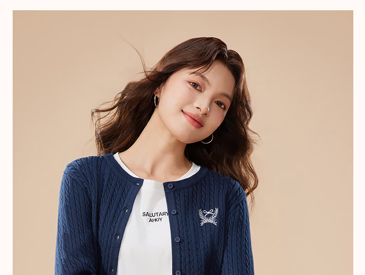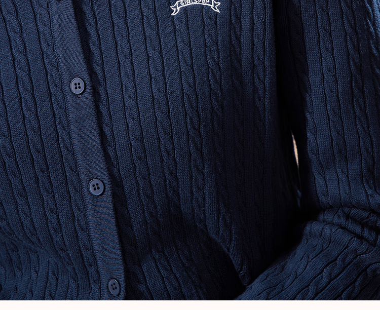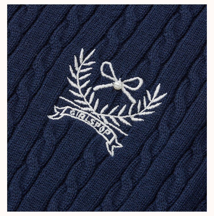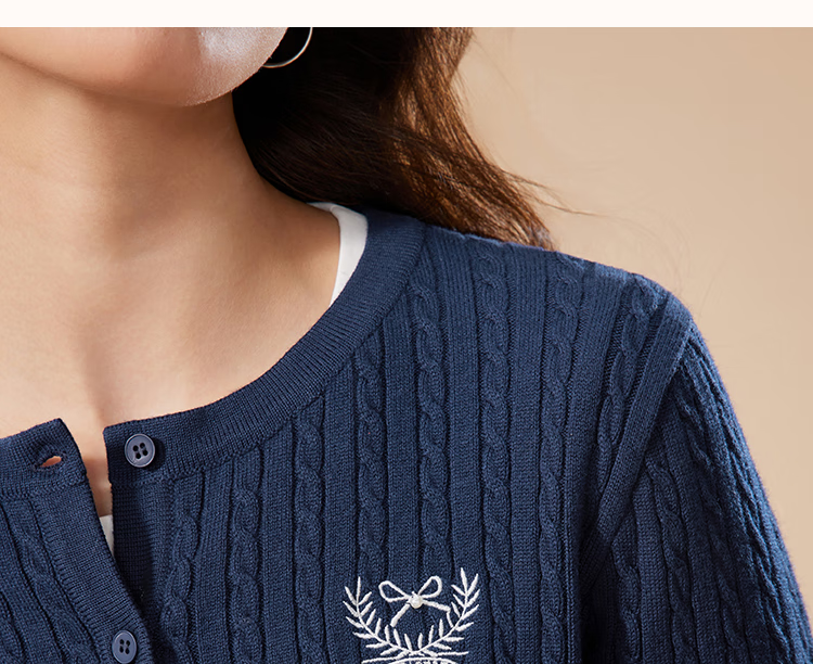 IEF/Aiyifu 2025 New Autumn Woolen Jacket Women's Korean College Style Fashion Embroidered Knitted Cardigan Navy Blue One Size