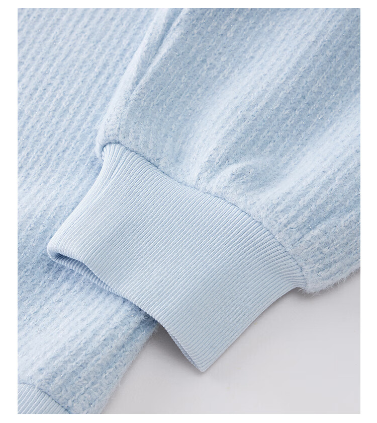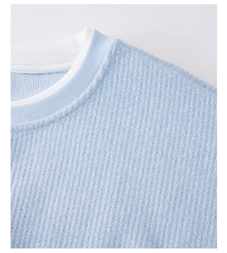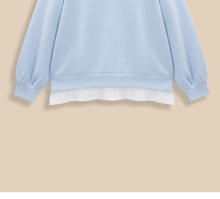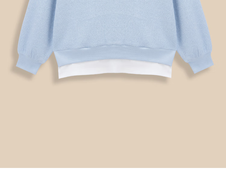IEF/Aiyifu 2025 Autumn and Winter New Korean Style Fashion Simple Casual Style Loose Versatile Splicing Design Sweater Light Blue One Size