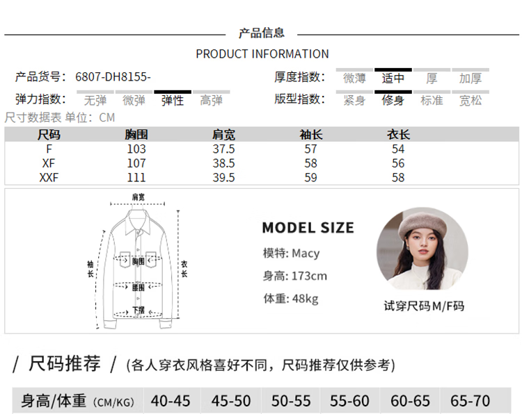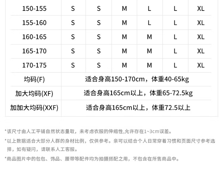 China (cm) 160-165/84-86 165-170 / 88-90 167-172 / 92-96 168-173 / 98-102 170-176 / 106-110