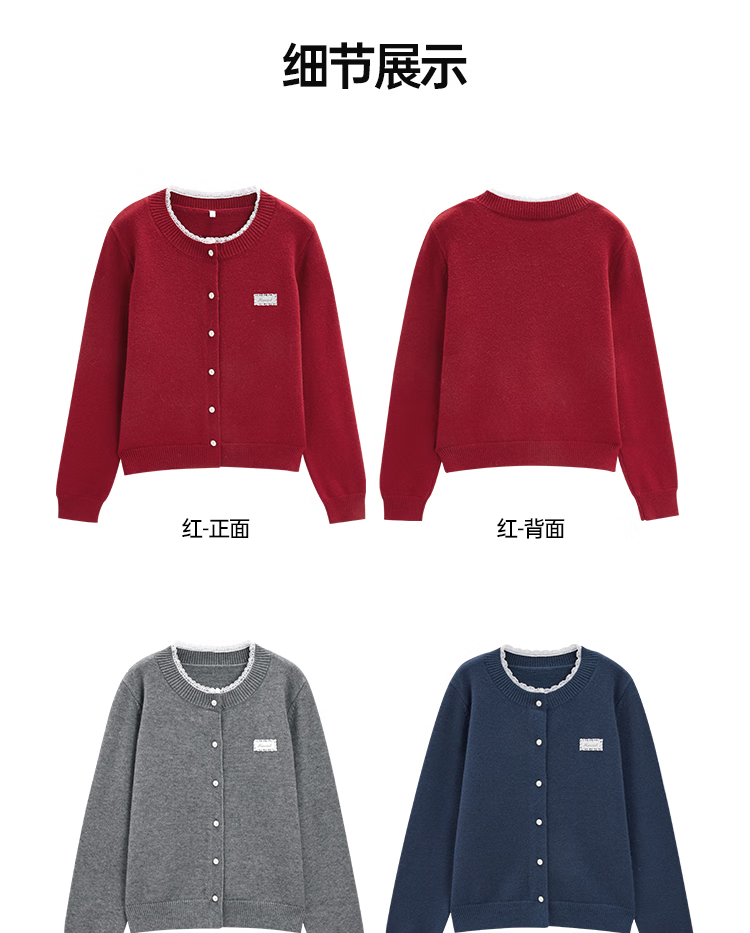 IEF/Aiyifu 2025 New Autumn and Winter Casual Wool Sweater Cardigan Women's Fashion Versatile Short Woolen Jacket Red One Size