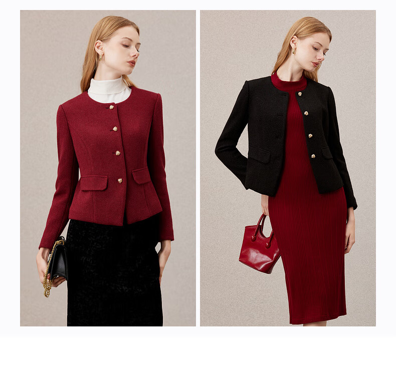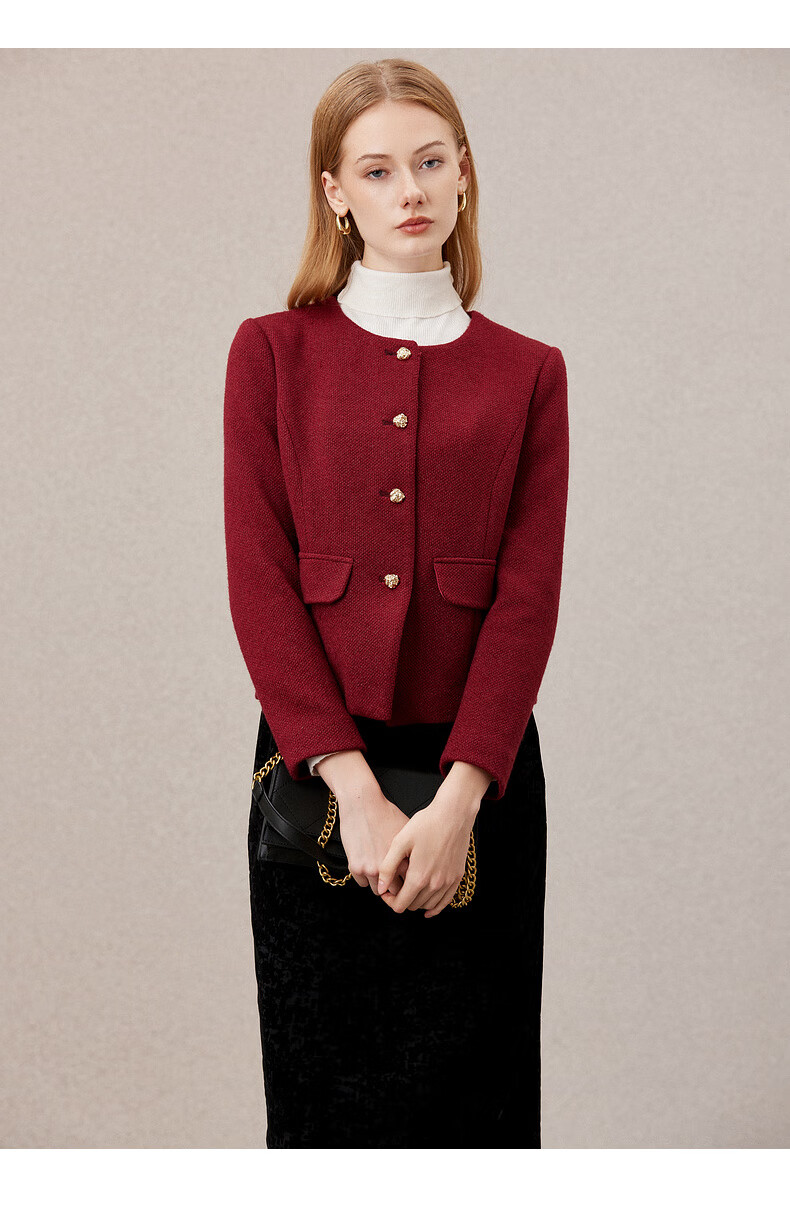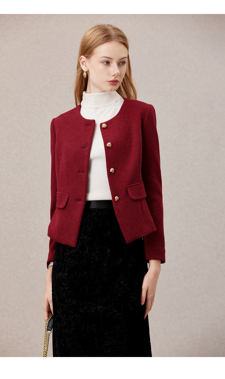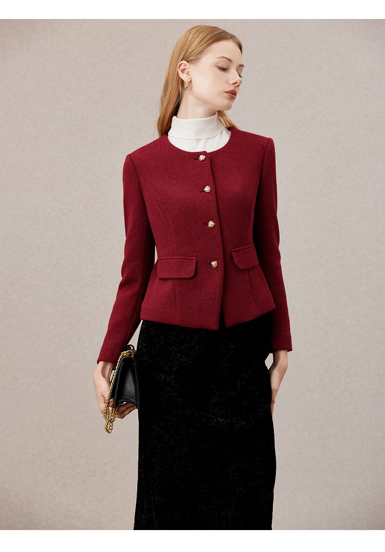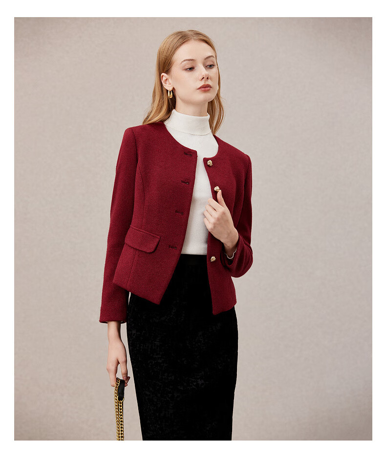 Classic Story (JANE STORY) Classic Story Western style age-reducing small fragrance jacket for women 2025 new autumn fashion short red suit top burgundy XL