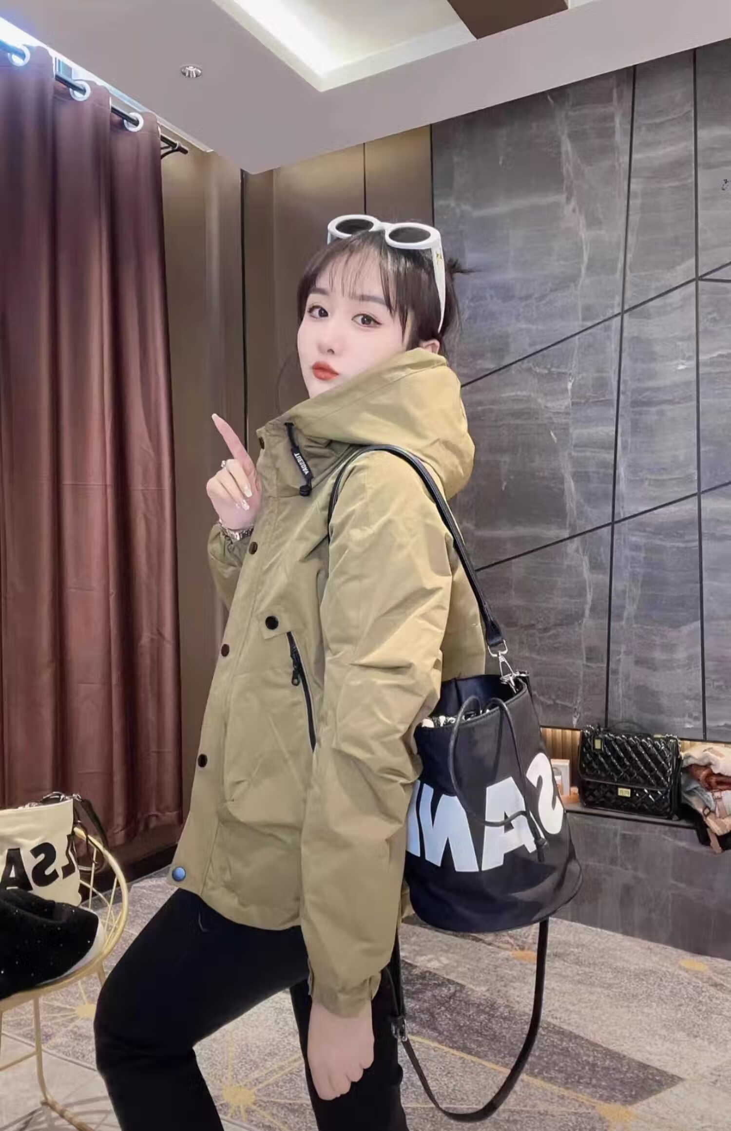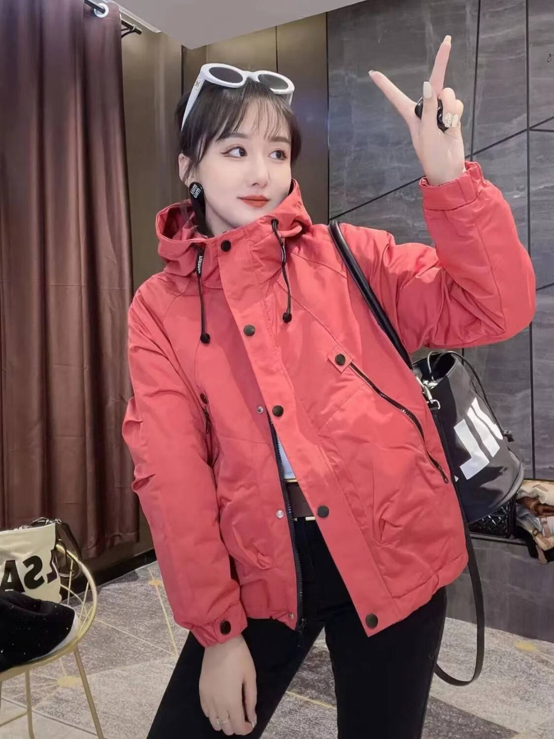 Semir Semir short coat for women in autumn and winter new popular quilted thickened fashionable jacket sports style jacket top Semir Khaki Green (Padding Style) Thickened