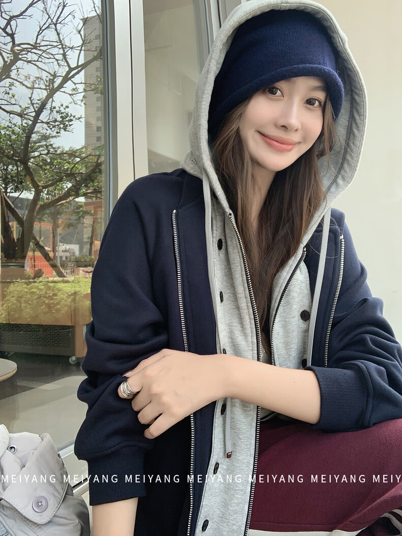 MEIYANG No Call No. 3 Jacket Thick Velvet Warm Far Infrared Antistatic Hooded Slimming Versatile Fashion Winter New Style Navy Blue M