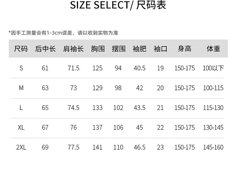 China (cm) 165 / 88-90 170 / 96-98 175 / 108-110 180 / 118-122 185 / 126-130