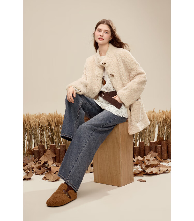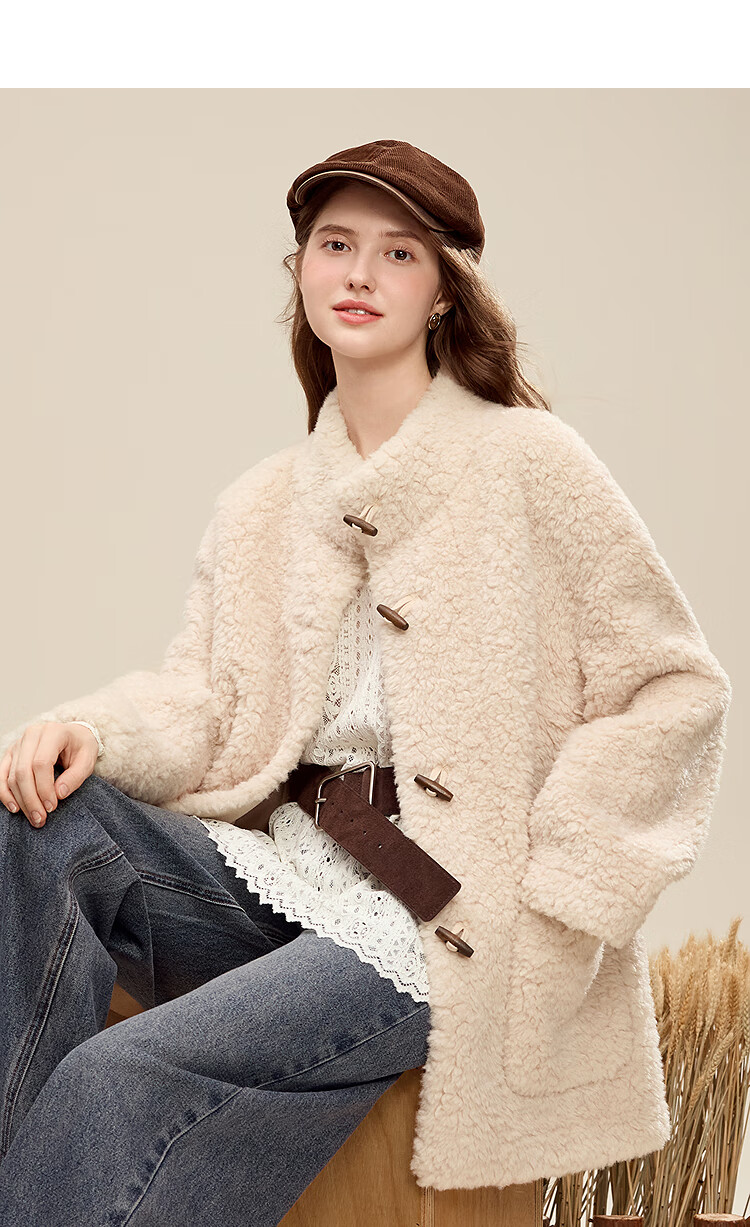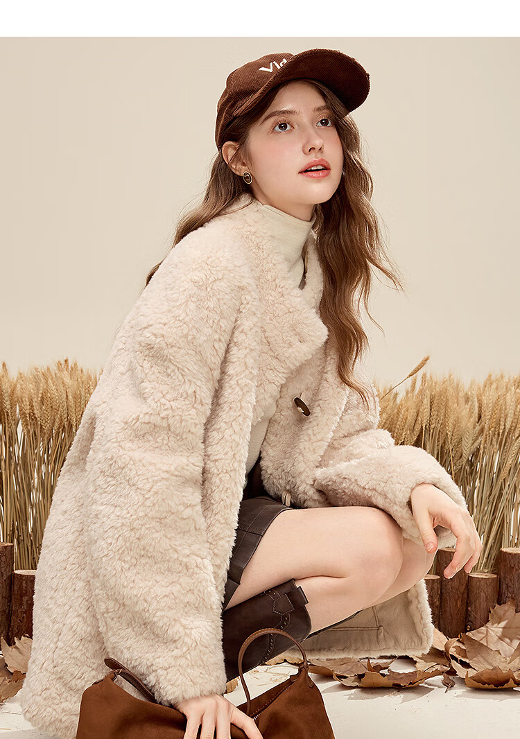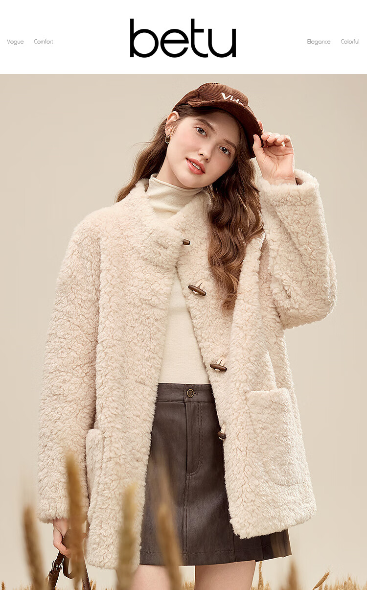 Betu women's 2025 new winter short coat trendy environmentally friendly imitation fur particle coat for women 2511T31 apricot S (apricot pre-sale shipped on 11/24)