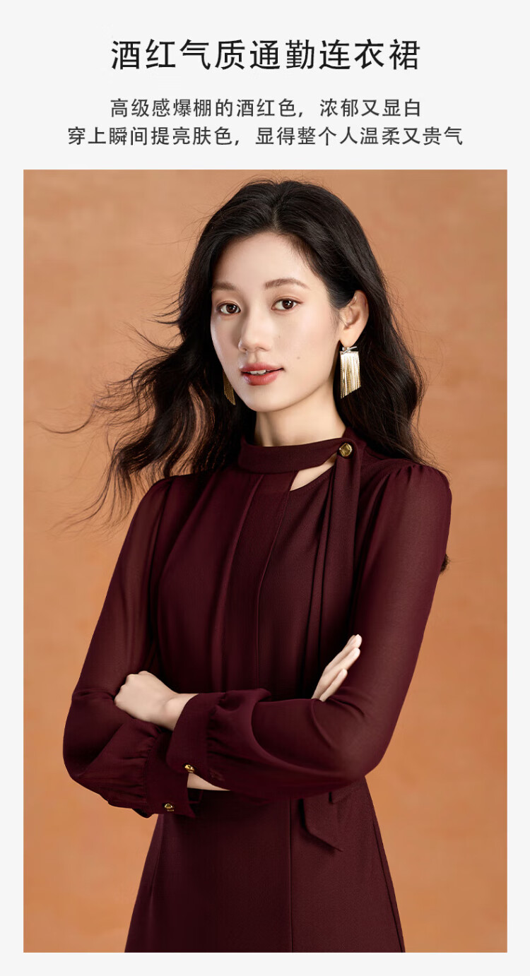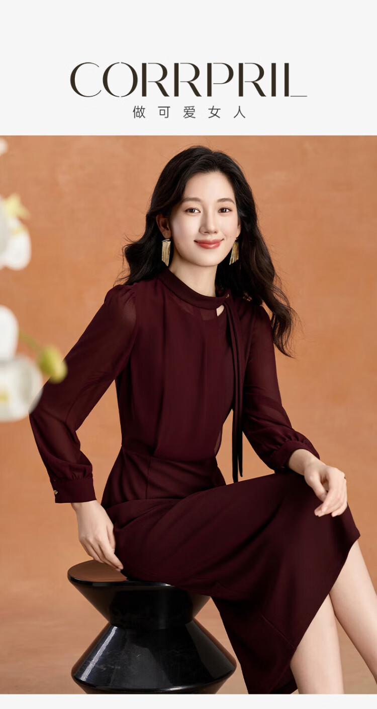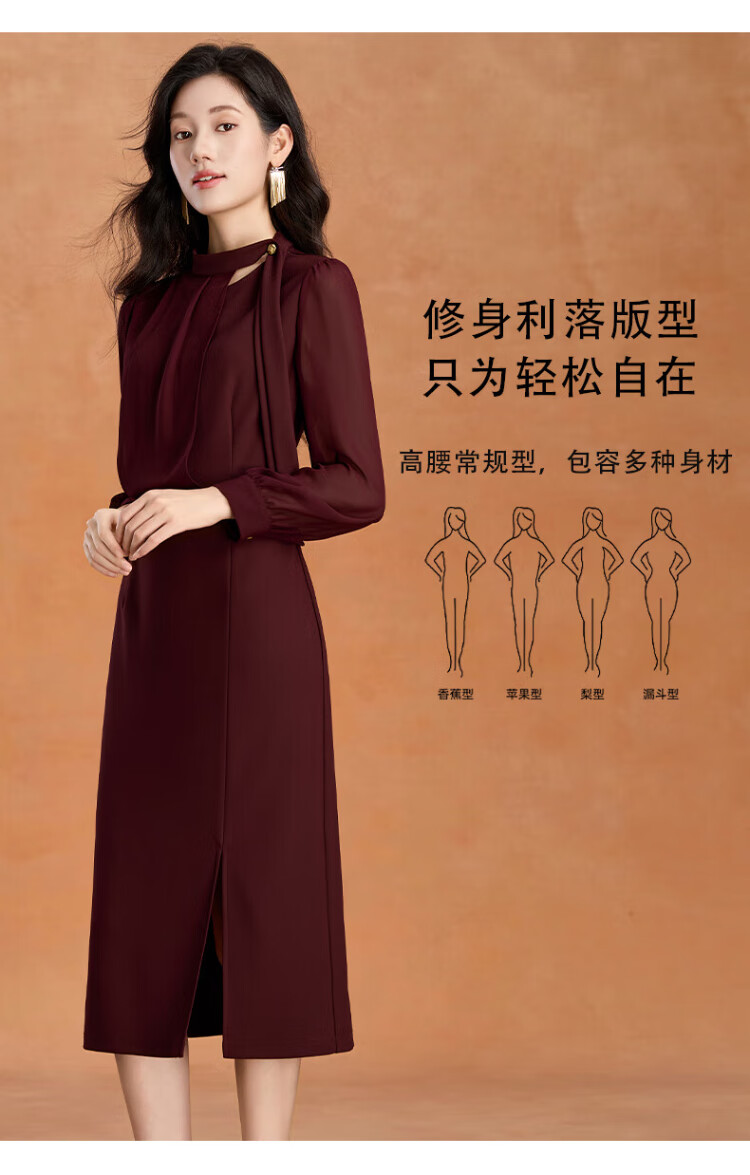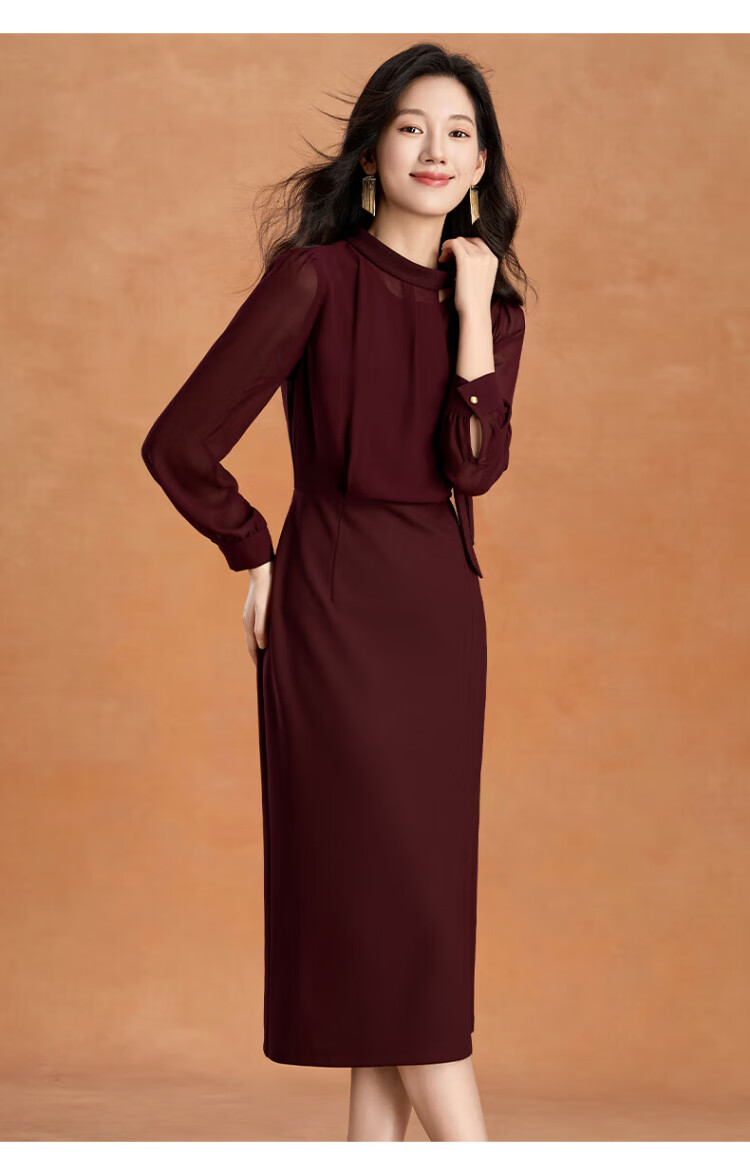 Kebel light luxury high-end dress women's 2025 new autumn and winter temperament waist slimming long-sleeved slit mid-length skirt XL