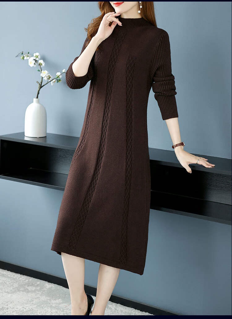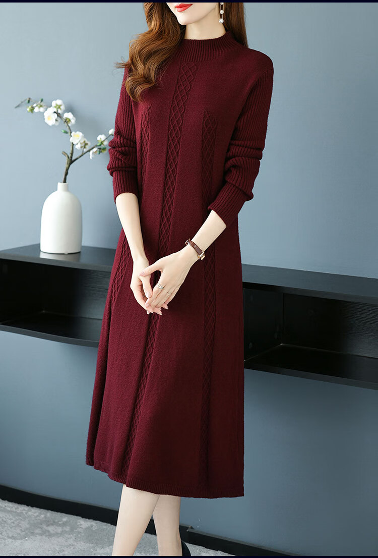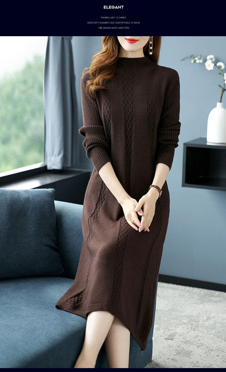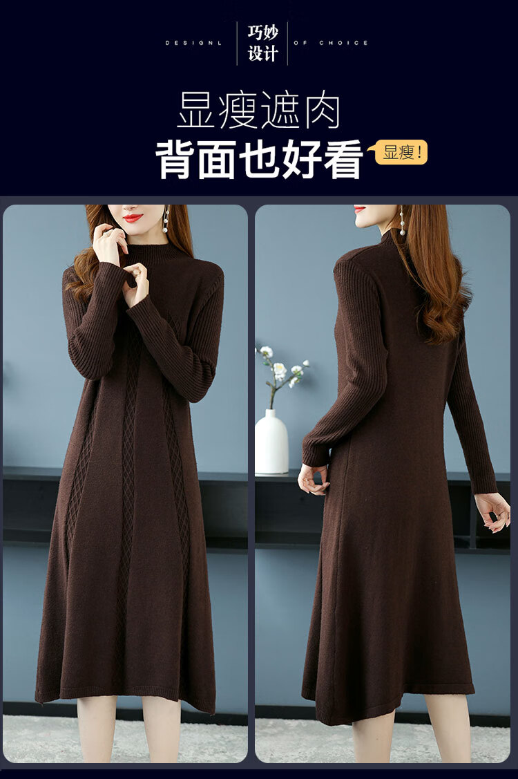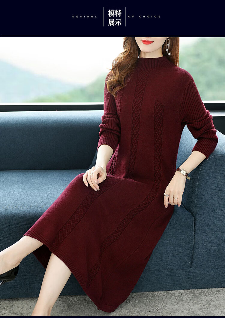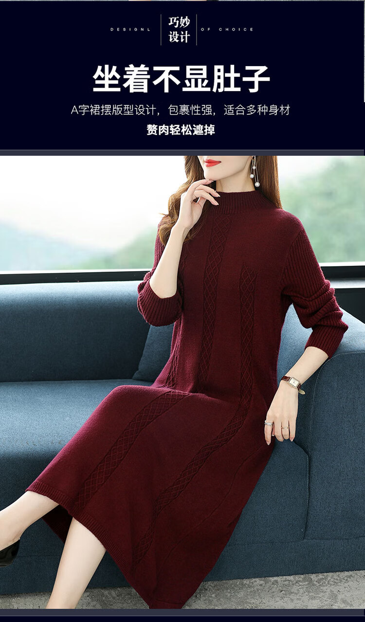 Hengyuanxiang brand goat wool women's long over-the-knee sweater 2025 autumn and winter new bottoming wool temperament knitted dress 1562 burgundy 2XL suitable for 125-134Jin Jin equals 0.5 kg