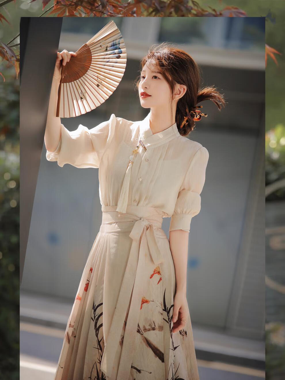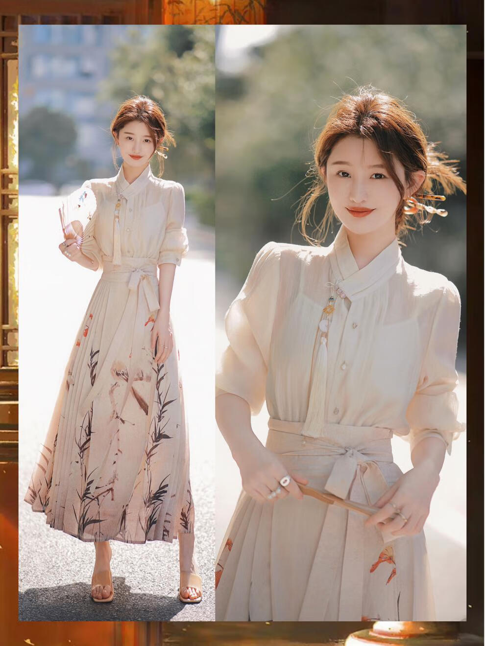 Keyin Horse Face Skirt Full Set New Chinese Style Dress 2025 New Autumn Suit Women's National Style Improved Cheongsam Long Skirt 5315 Top + Skirt XL