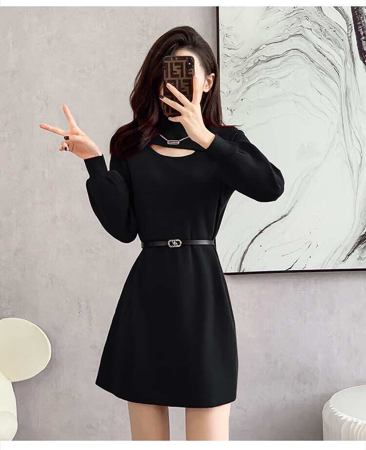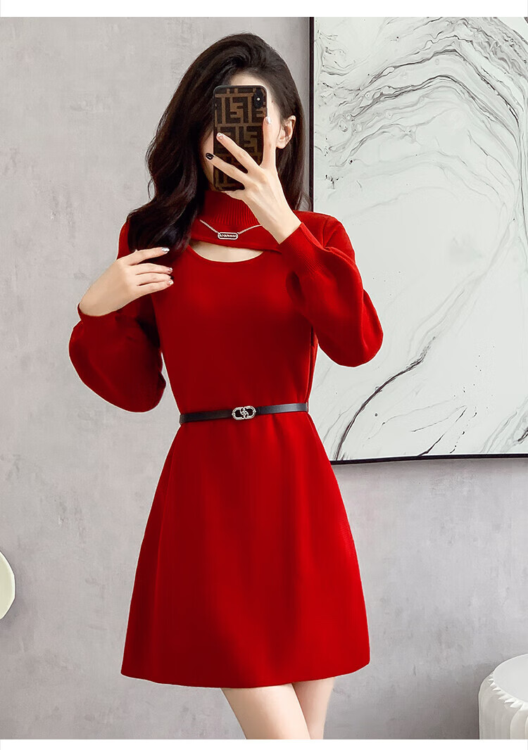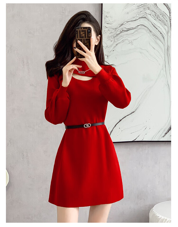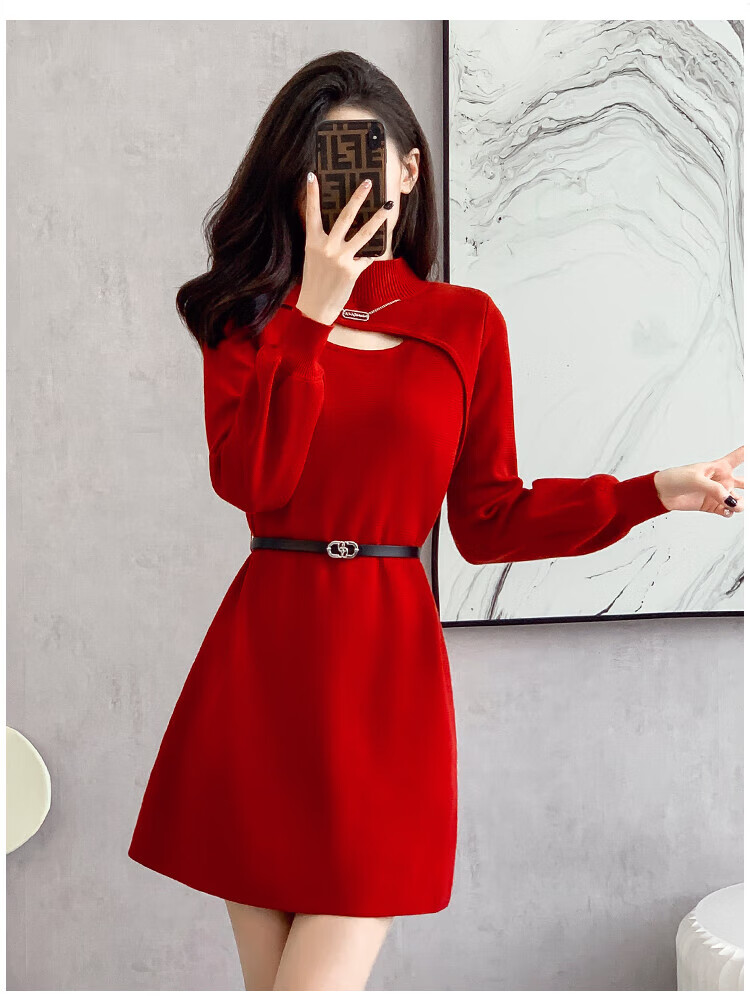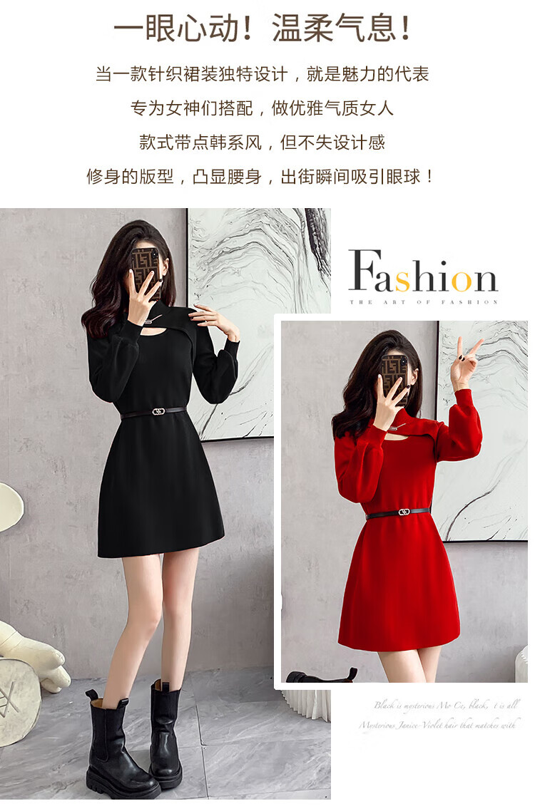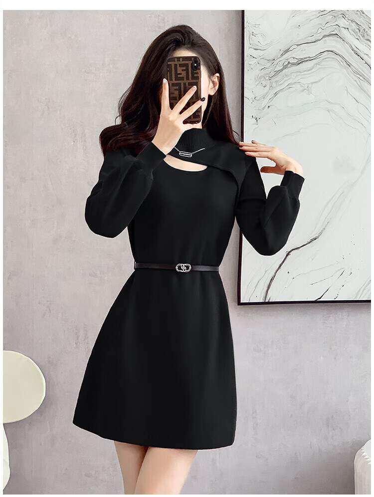 Xiao Yu (XIAOYU) 2025 Spring and Autumn New Women's Dress Small Bottoming Knitted Red Temperament Clothes Black One Size (Recommended 85-135Jin Jin is equal to 0.5 kg)
